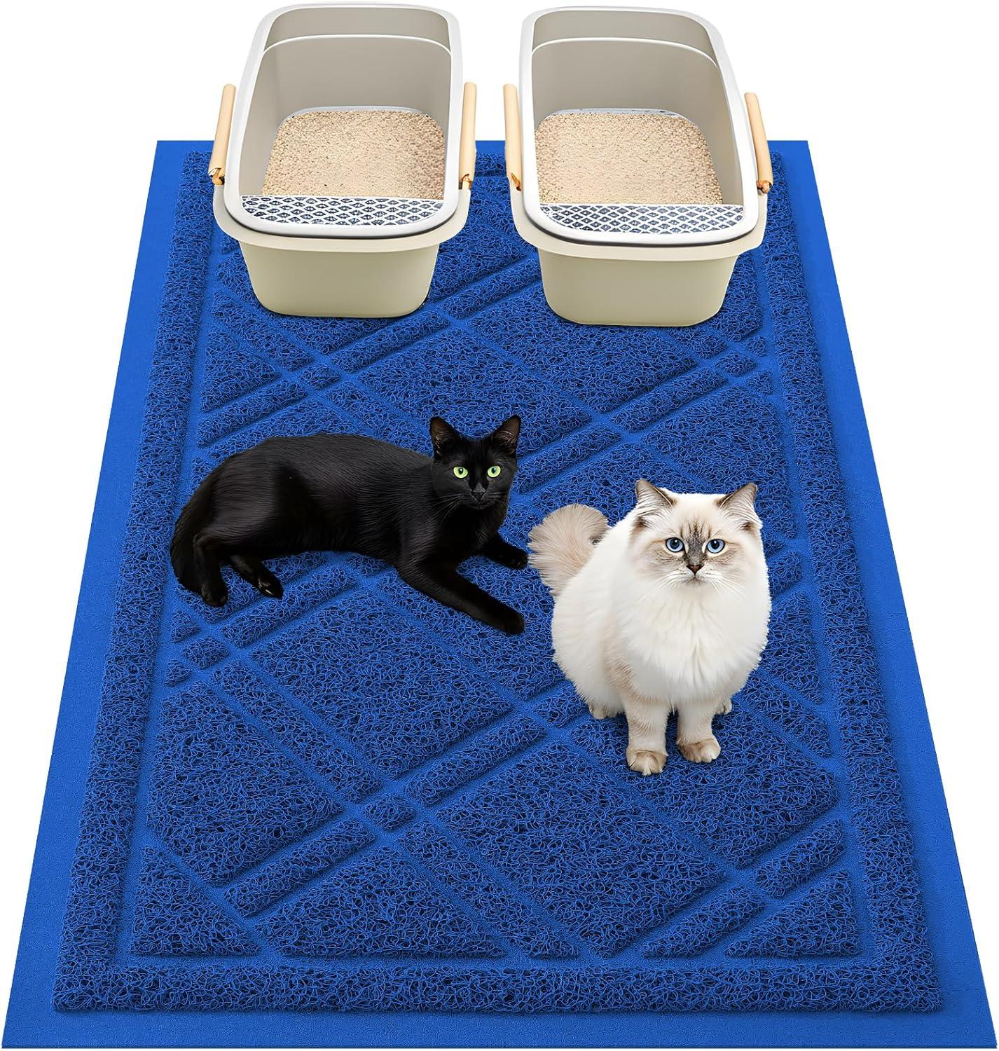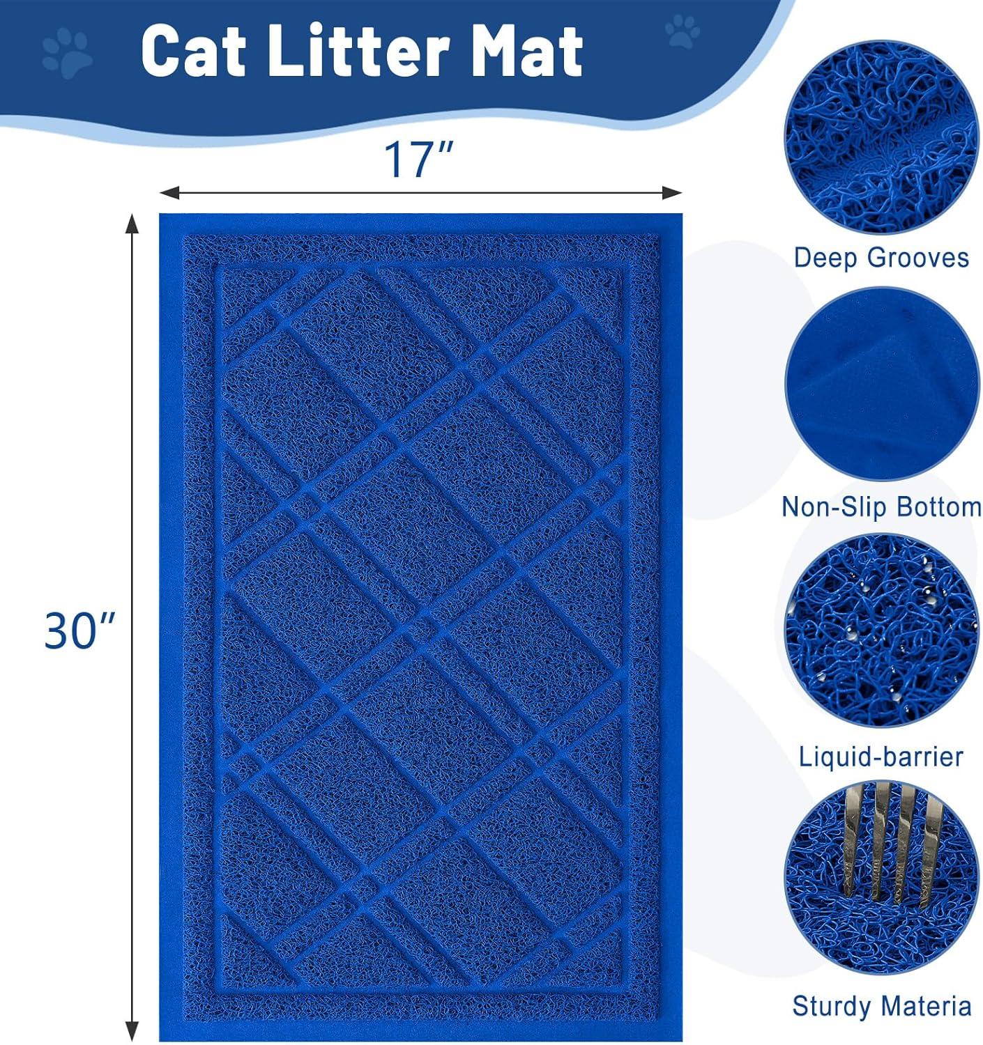 Smiry Cat Litter Box Mat 30x17, Non-Slip Water Resistant Litter Trapping Mat, Easy Clean Less Waste and Urine-Locking Cat Carpet for Indoor, Green(Blue)