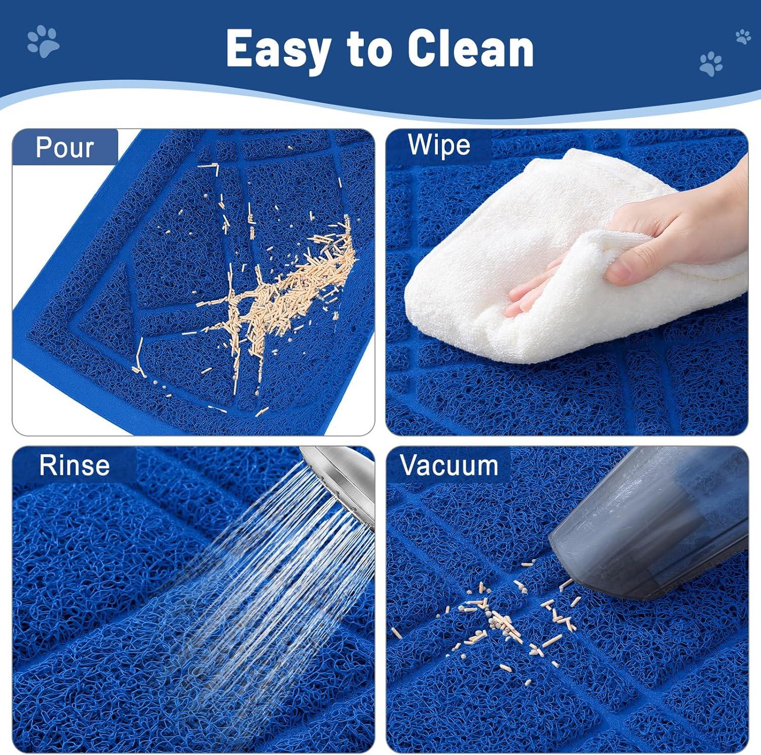 [Easy Clean and Care] The litter box mat is easy to clean and maintain. Simply shake off the dust or vacuum; you can also wipe with wet wipes or rinse with soapy water. Please wash with cold water and dry naturally or at low temperature.