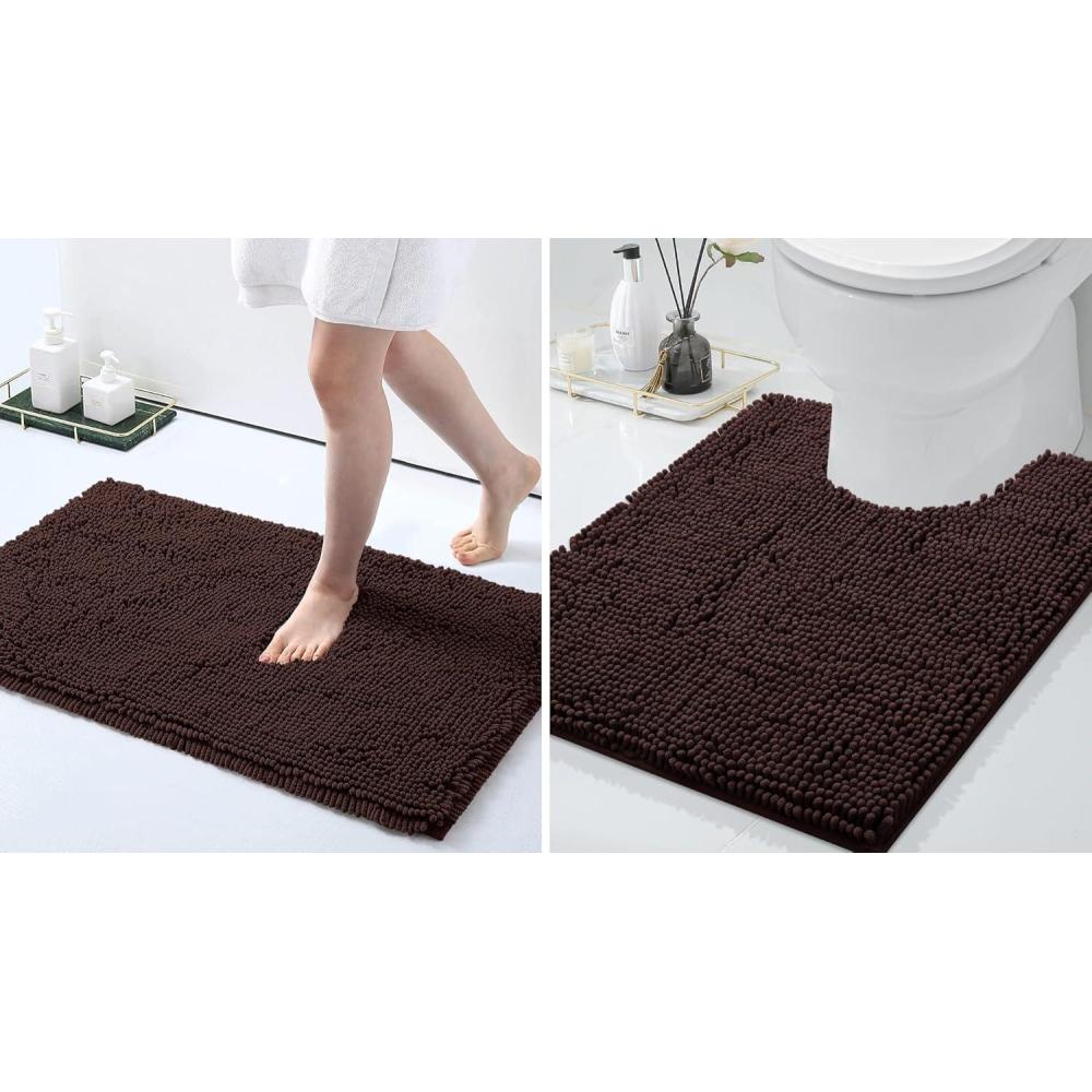 | Style | smiry Bathroom Mats and U-Shaped Toilet Rug Set Brown |