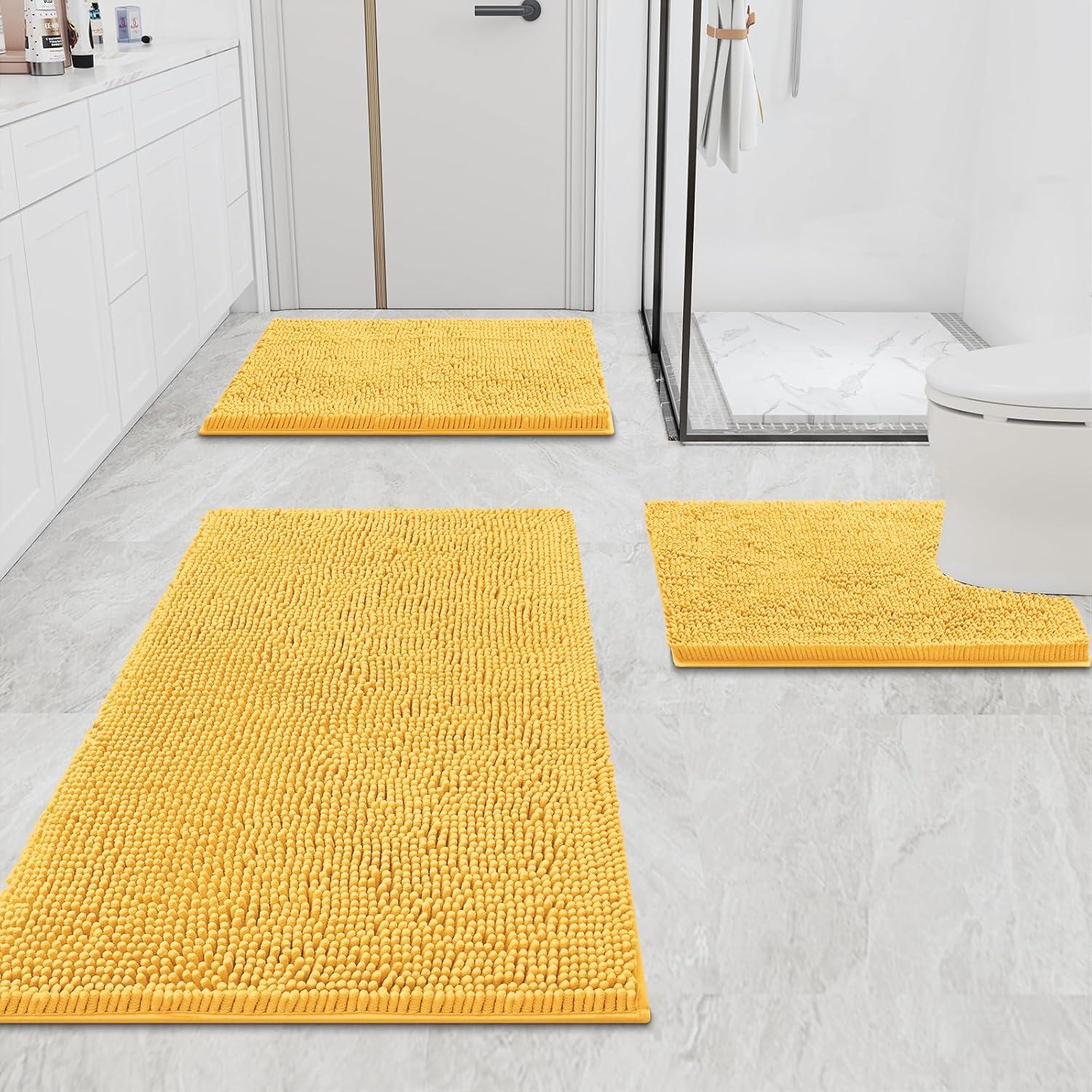 [Non-Slip Backing] Our bath rugs feature a non-slip backing made from high-quality mesh PVC, providing a secure grip that prevents shifting and skidding. Important: Place on CLEAN DRY FLAT FLOOR ONLY to avoid slipping. Keep the rug's bottom dry at all times.