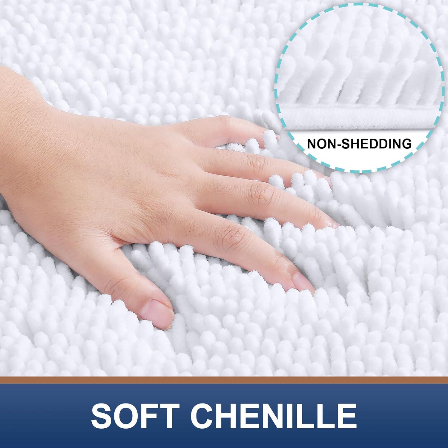 imageSmiry Chenille Bathroom Rugs and Mats Set of 3 Non Slip Absorbent Shaggy Bath Rug for Tub Shower and Bath Room 36quotx 24quot24quotx 16quotUShaped 24quot x20quot White