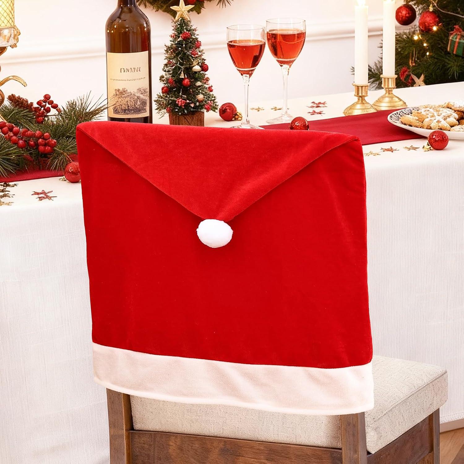 [Soft & Comfortable] Smiry Christmas chair covers are made of high-quality fabric, soft and comfortable, sturdy and long lasting. The plush white balls are larger and fluffier than those of others. It's perfect for Christmas-themed parties, restaurant decorations, etc., which can make your kitchen and dining room full of Christmas atmosphere sense