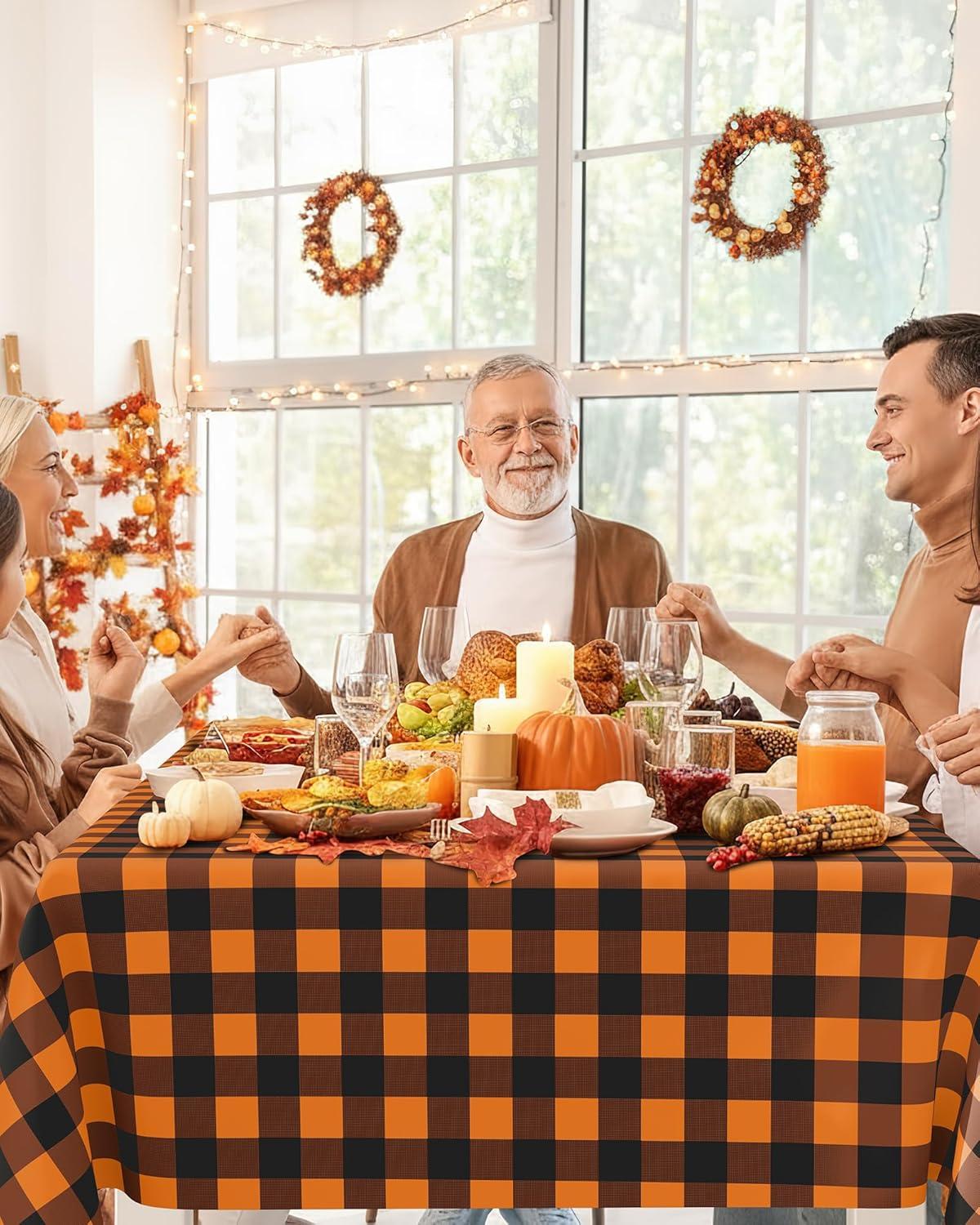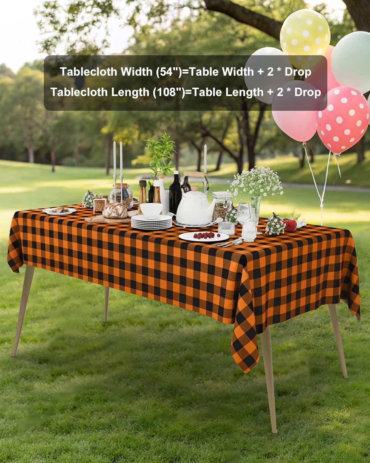 Smiry Disposable Table Cloth 12 Pack, 84 Inch Round Waterproof Plastic Tablecloth, Decorative Rectangle Table Covers for Party, Birthday, Picnic, White(Black and Orange)