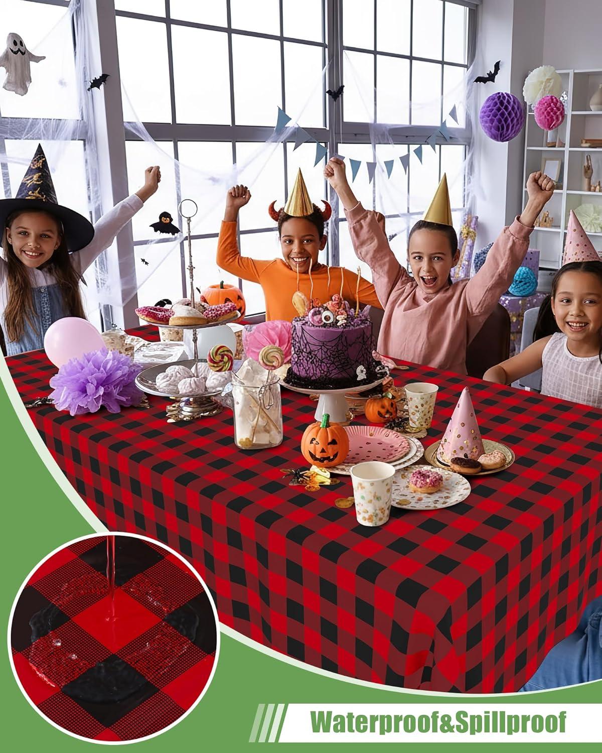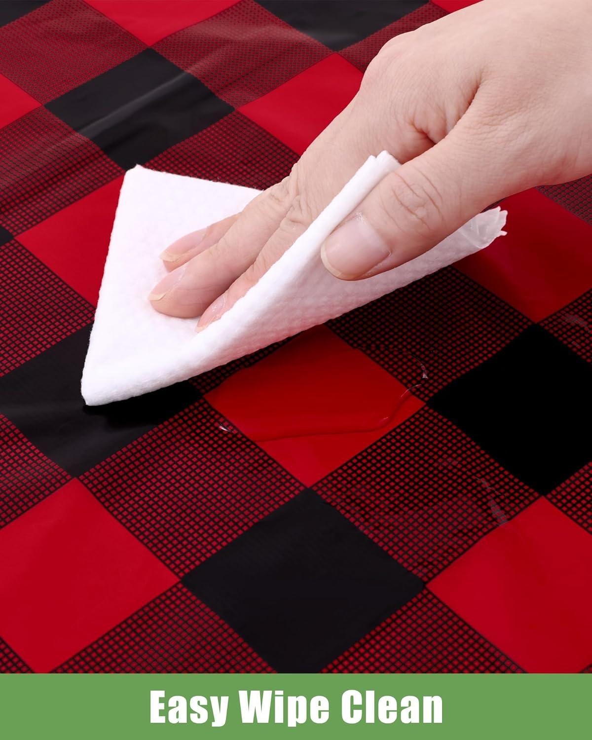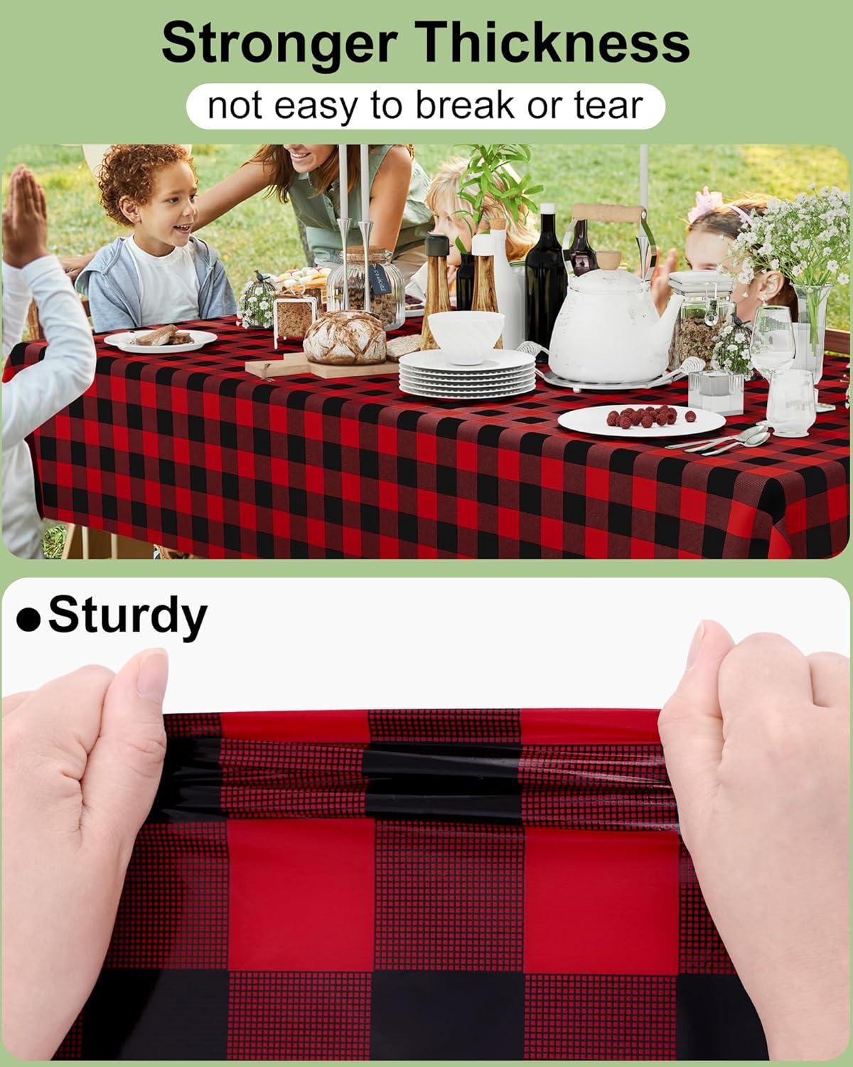 [Waterproof & Easy Clean] The surface of our plastic table cloth is waterproof, providing protection for your table from spills and stains. Simply wipe the tablecloth with a damp cloth to easily clean. After use, just dispose of it, and you're done!