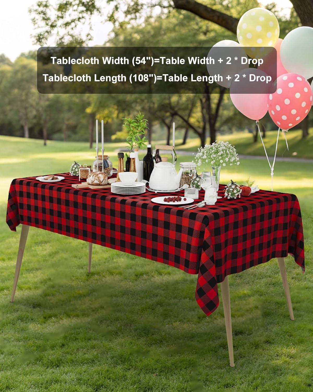 imageSmiry Disposable Table Cloth 12 Pack 84 Inch Round Waterproof Plastic Tablecloth Decorative Rectangle Table Covers for Party Birthday Picnic WhiteBlack and Red
