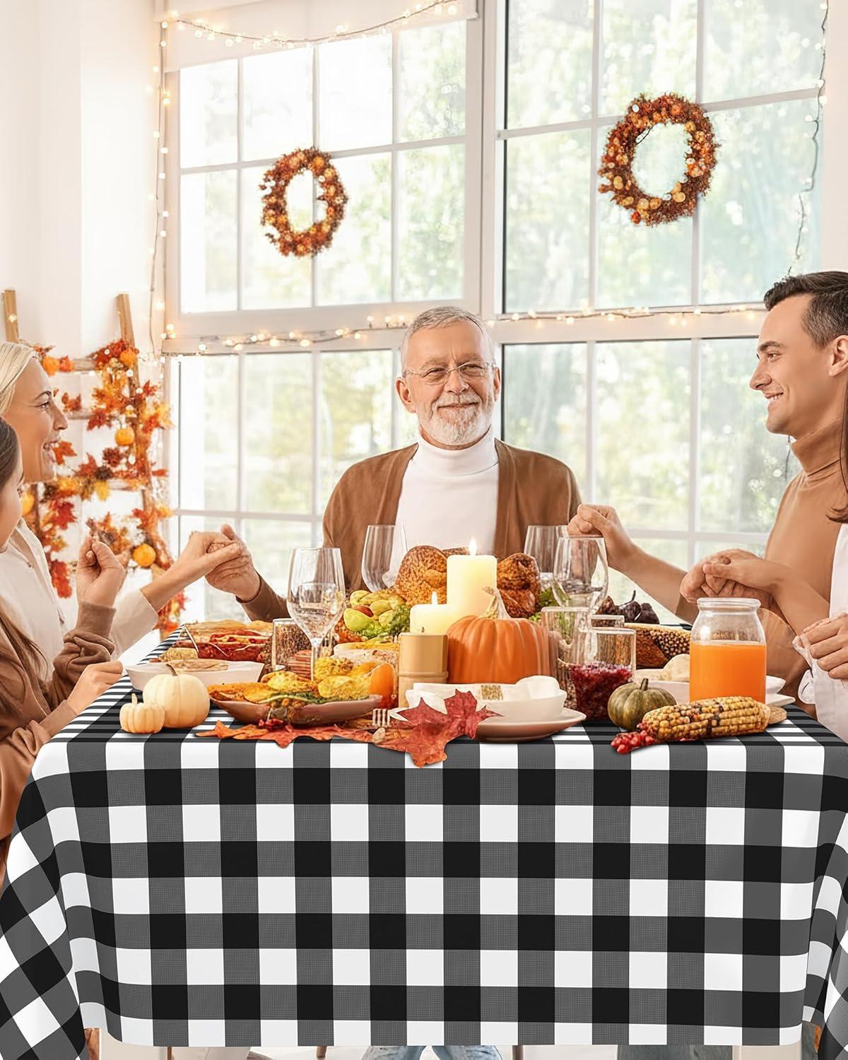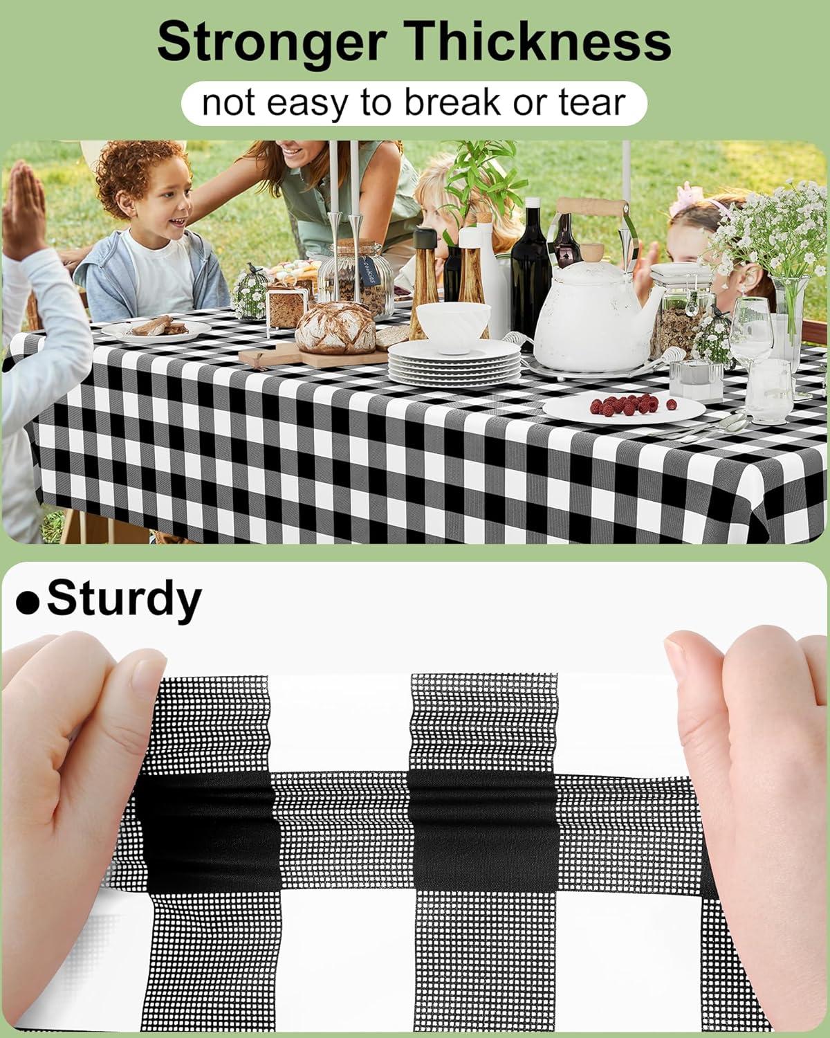 Smiry Disposable Table Cloth 12 Pack, 84 Inch Round Waterproof Plastic Tablecloth, Decorative Rectangle Table Covers for Party, Birthday, Picnic, White(Black and White)