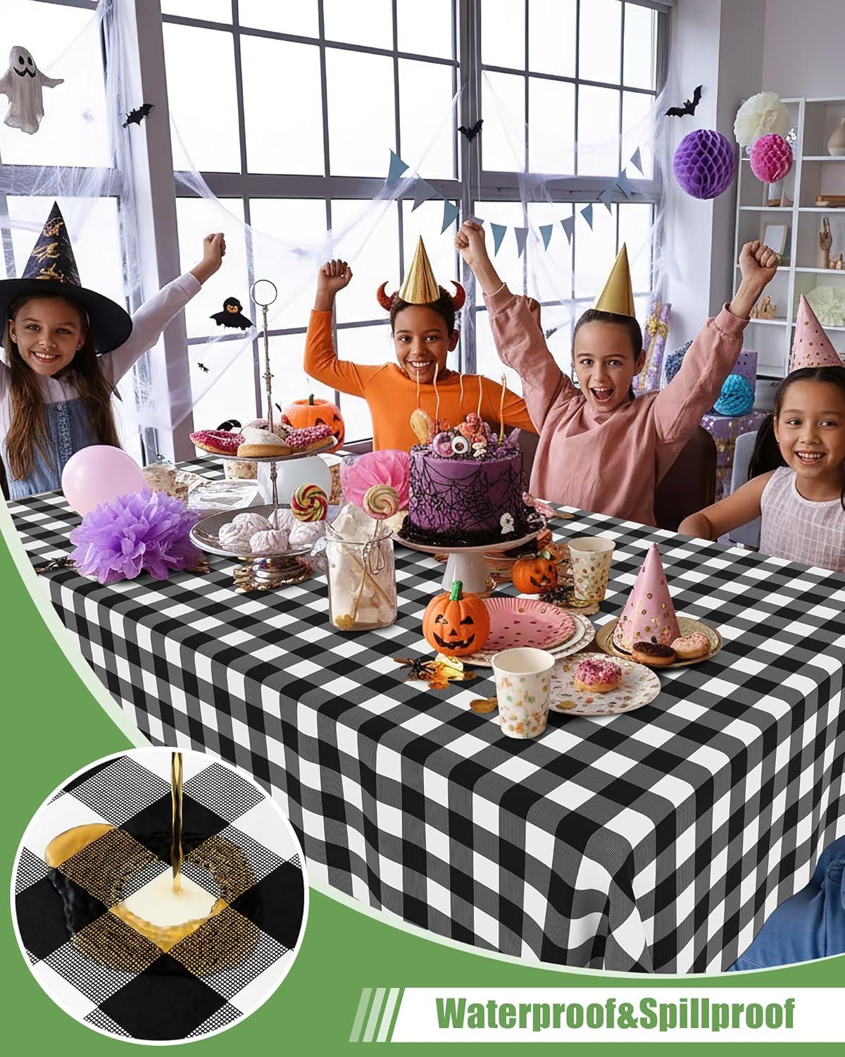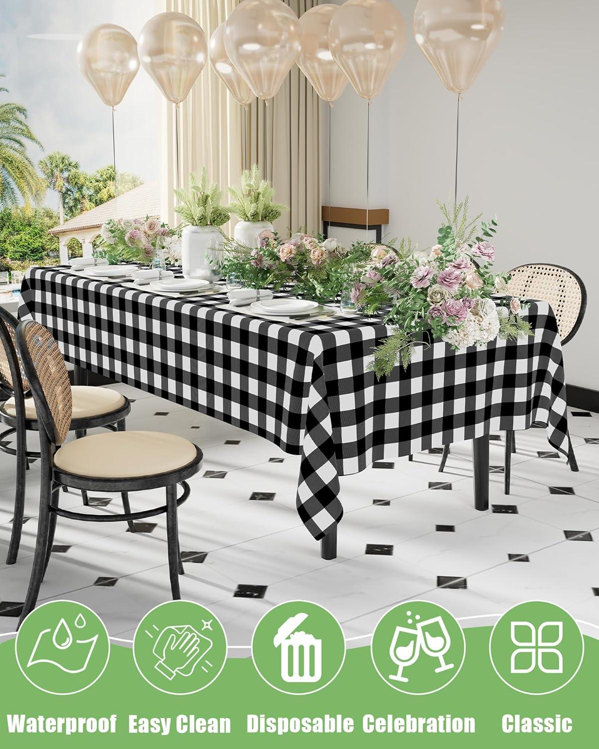 [Waterproof & Easy Clean] The surface of our plastic table cloth is waterproof, providing protection for your table from spills and stains. Simply wipe the tablecloth with a damp cloth to easily clean. After use, just dispose of it, and you're done!