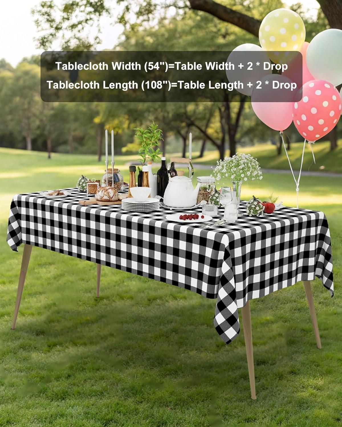 imageSmiry Disposable Table Cloth 12 Pack 84 Inch Round Waterproof Plastic Tablecloth Decorative Rectangle Table Covers for Party Birthday Picnic WhiteBlack and Red