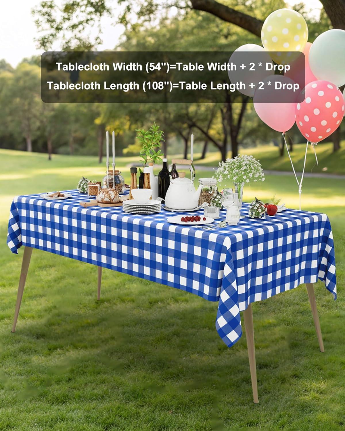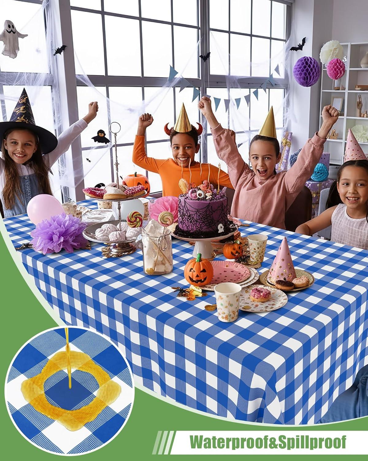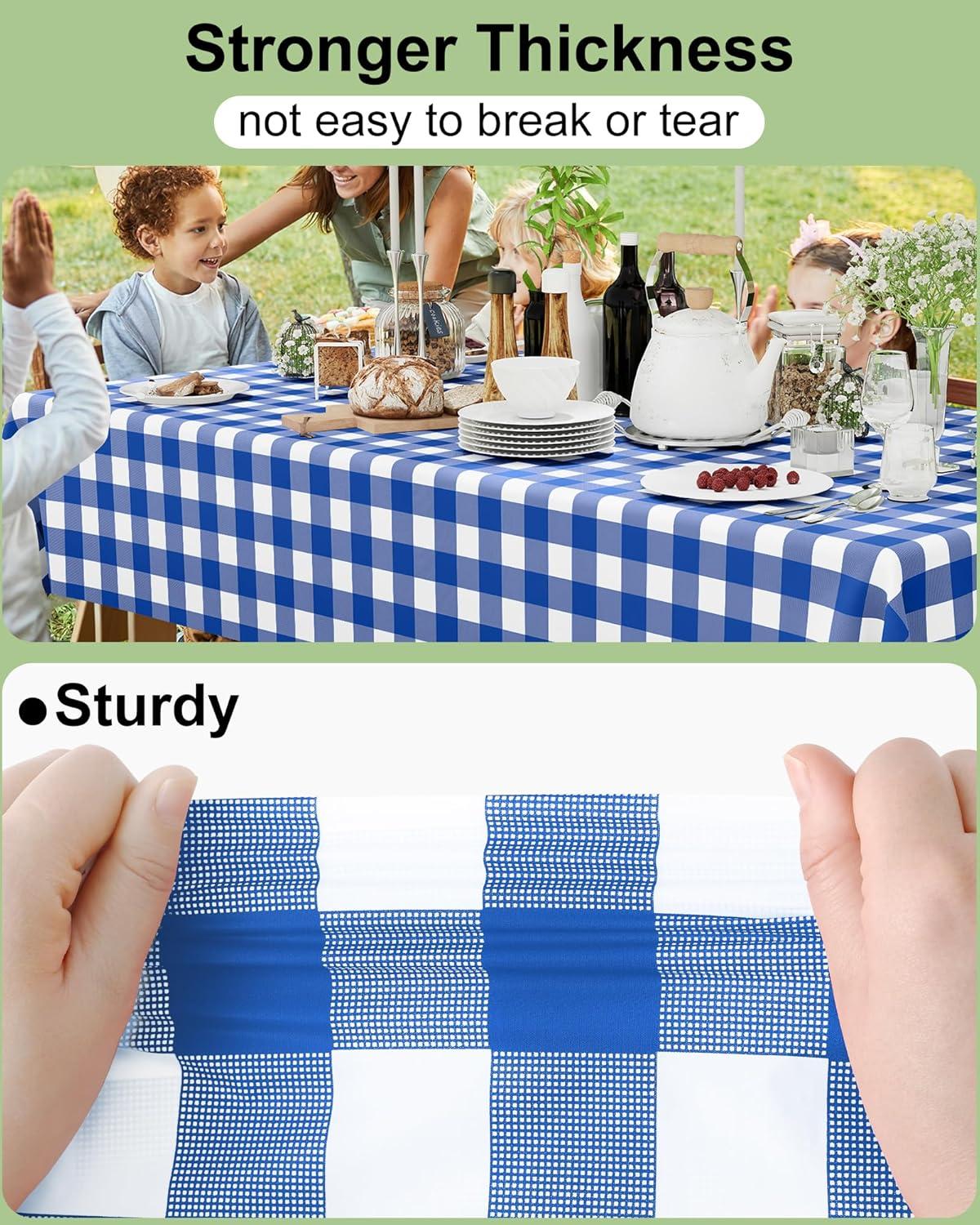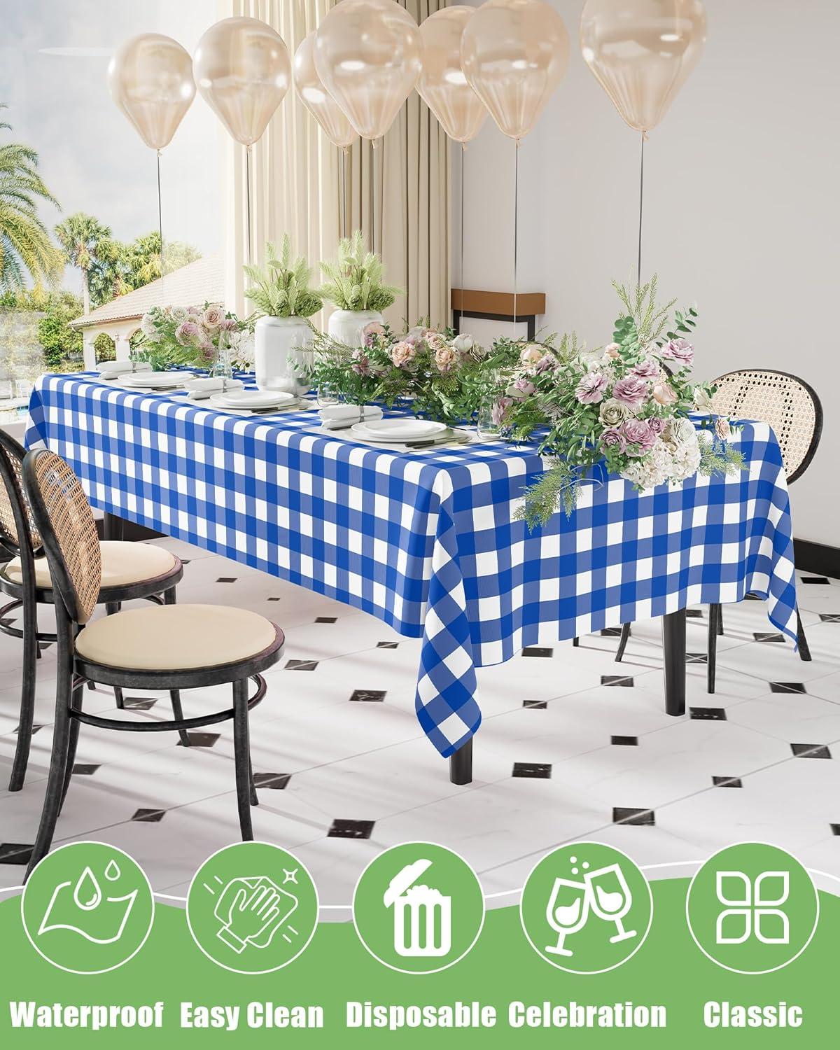 [Waterproof & Easy Clean] The surface of our plastic table cloth is waterproof, providing protection for your table from spills and stains. Simply wipe the tablecloth with a damp cloth to easily clean. After use, just dispose of it, and you're done!