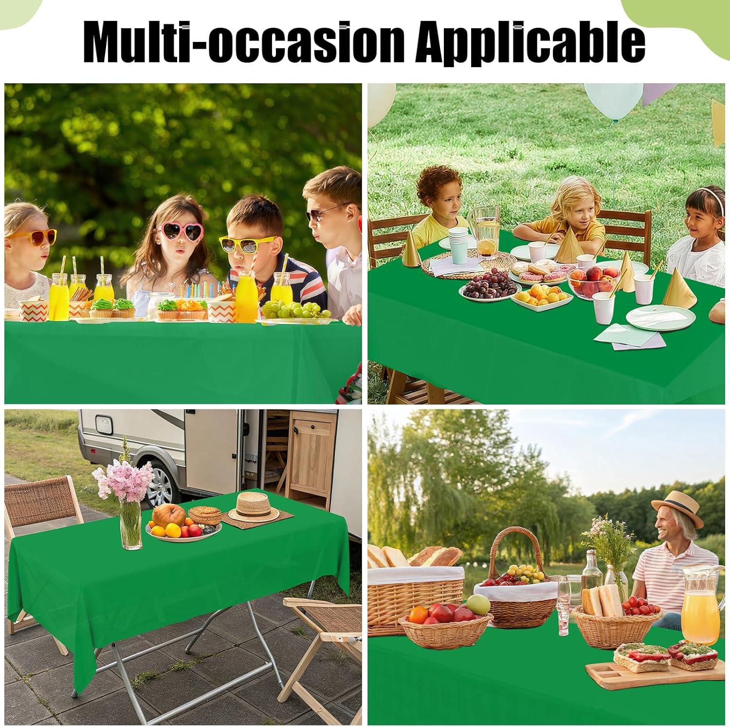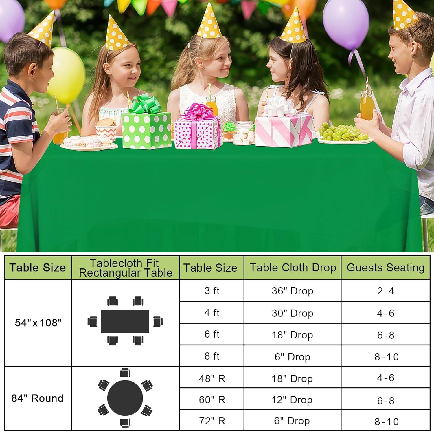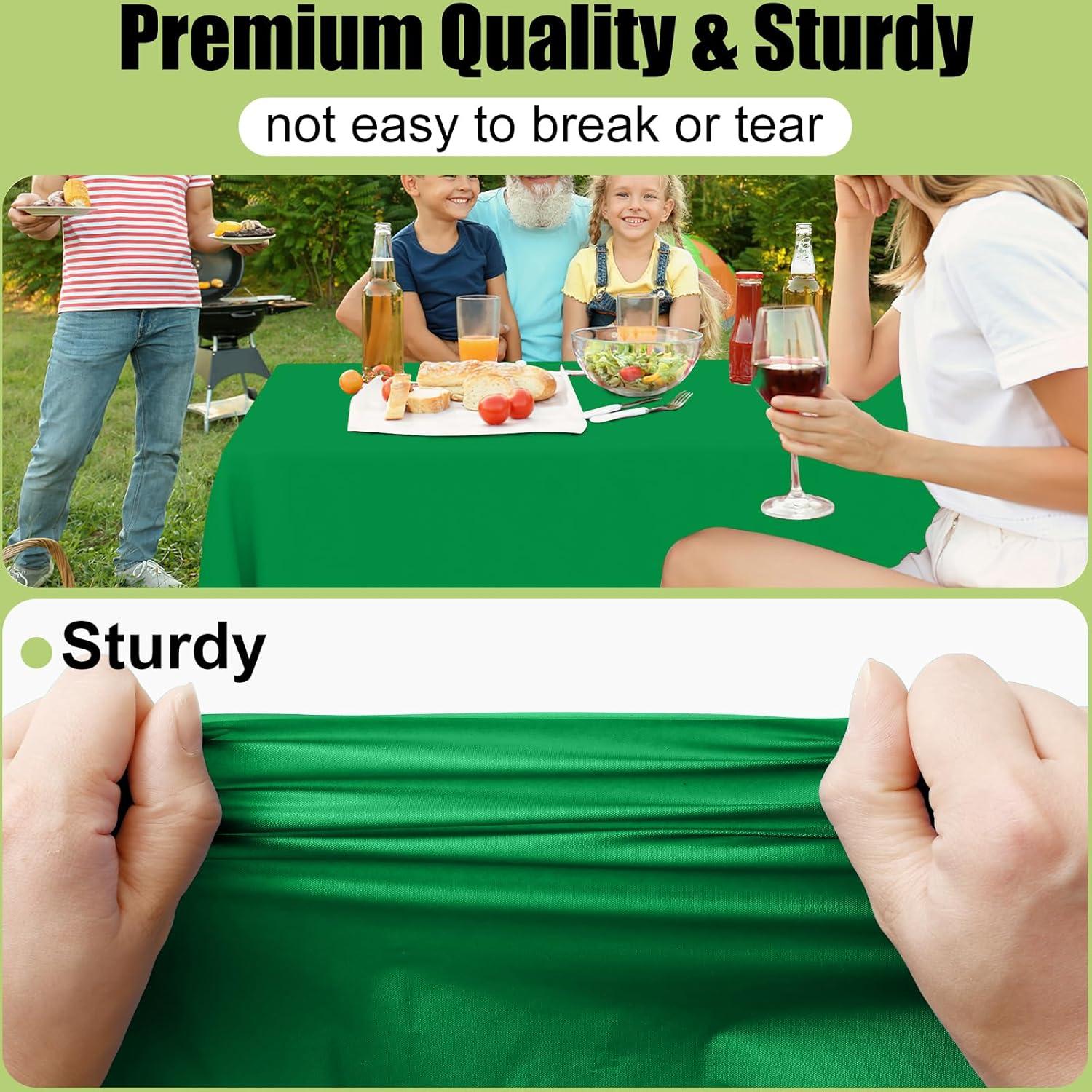 Smiry Disposable Table Cloth 12 Pack, 84 Inch Round Waterproof Plastic Tablecloth, Decorative Rectangle Table Covers for Party, Birthday, Picnic, White(Green)