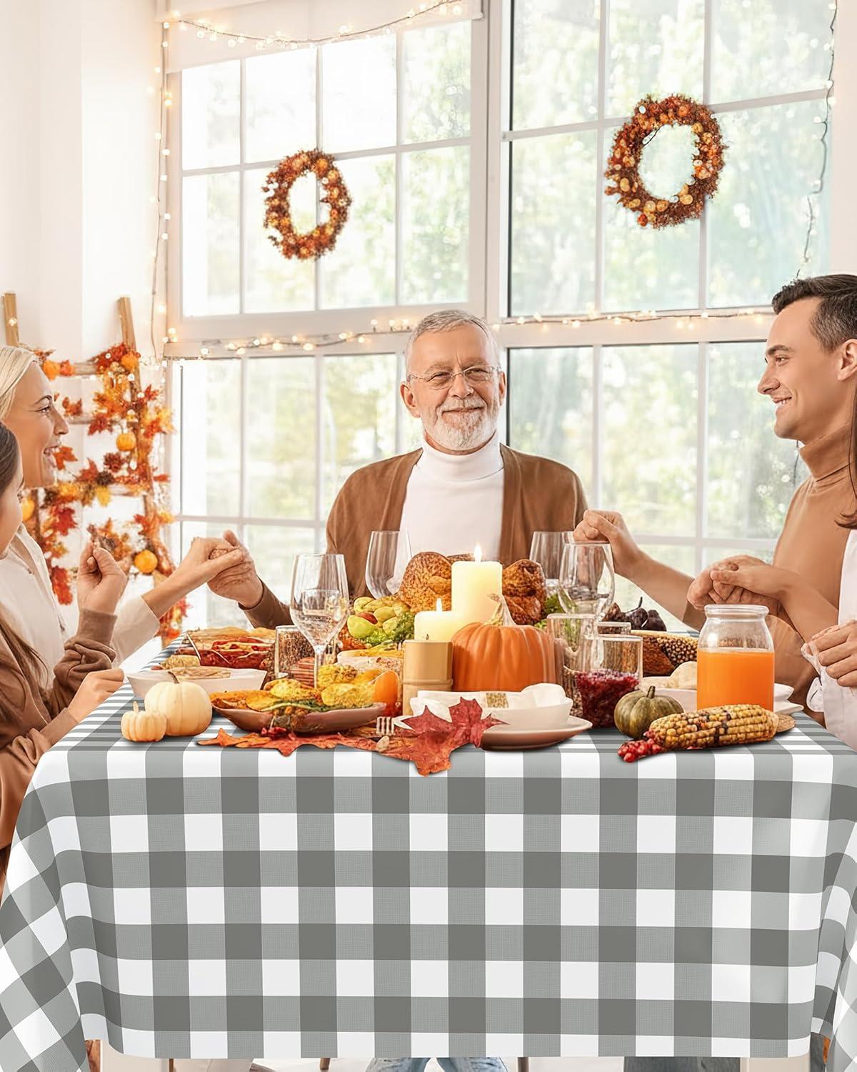 Smiry Disposable Table Cloth 12 Pack, 84 Inch Round Waterproof Plastic Tablecloth, Decorative Rectangle Table Covers for Party, Birthday, Picnic, White(Grey and White)