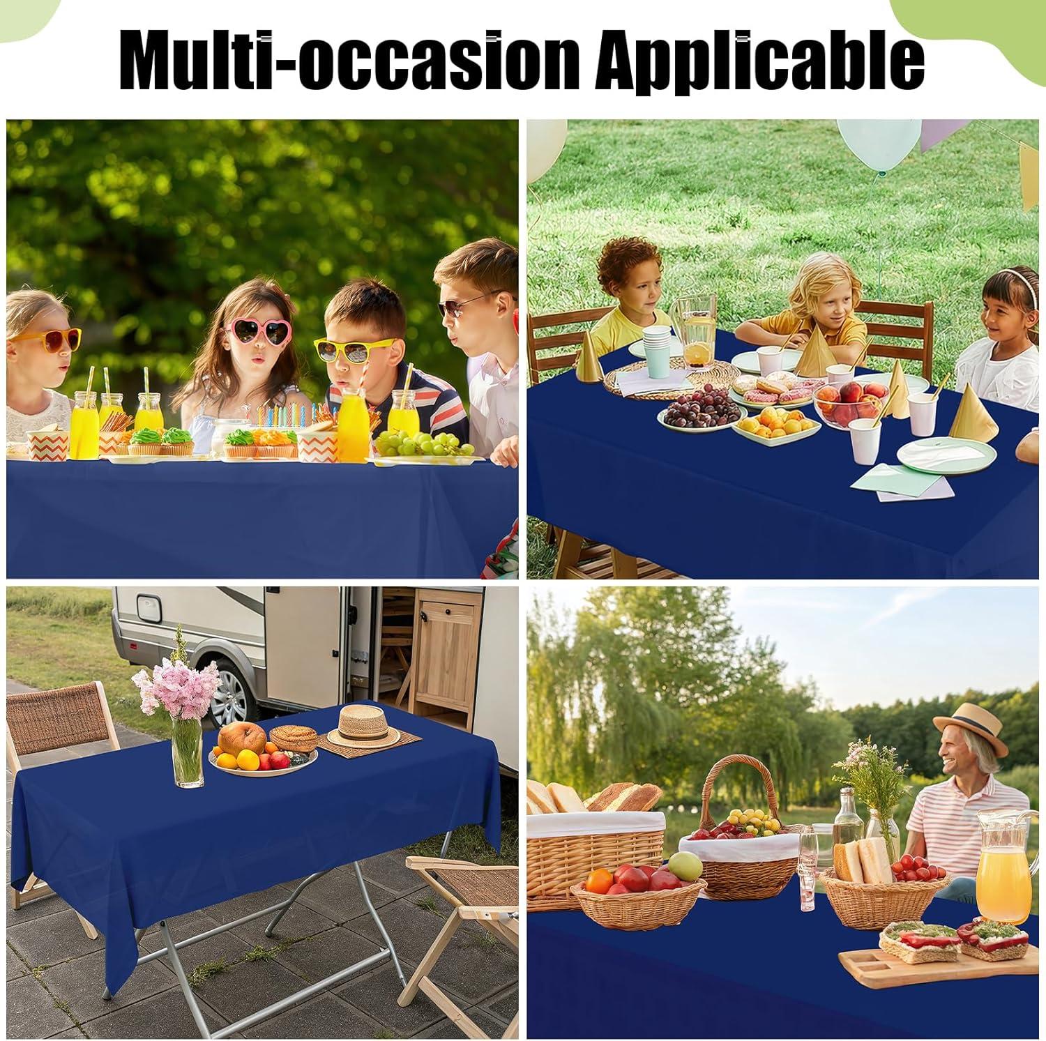 [Budget Friendly Option] Our disposable table cloths packs come with 12 pieces, offering versatility to meet a multitude of needs. Whether you're hosting a dinner party, or setting up a picnic outdoors, our tablecloth have got you covered.