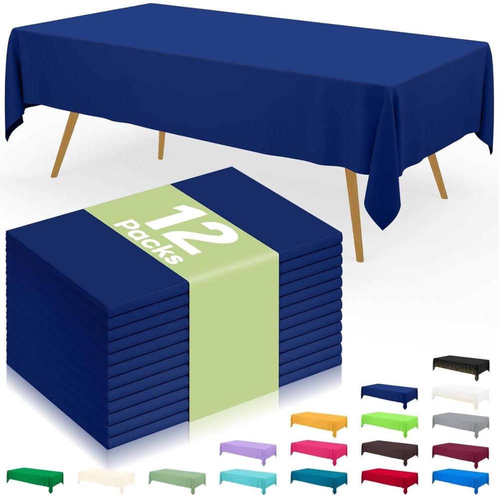imageSmiry Disposable Table Cloth 12 Pack 84 Inch Round Waterproof Plastic Tablecloth Decorative Rectangle Table Covers for Party Birthday Picnic WhiteNavy