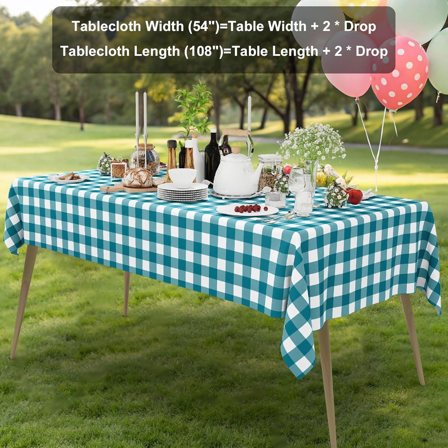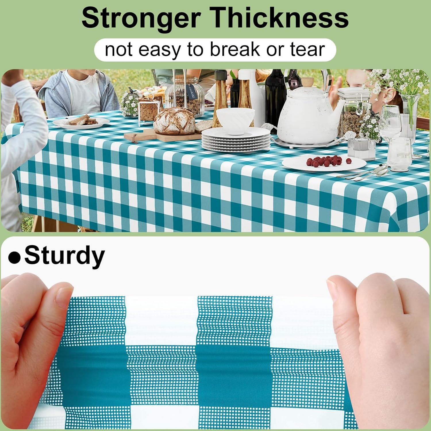 Smiry Disposable Table Cloth 12 Pack, 84 Inch Round Waterproof Plastic Tablecloth, Decorative Rectangle Table Covers for Party, Birthday, Picnic, White(Teal and White)