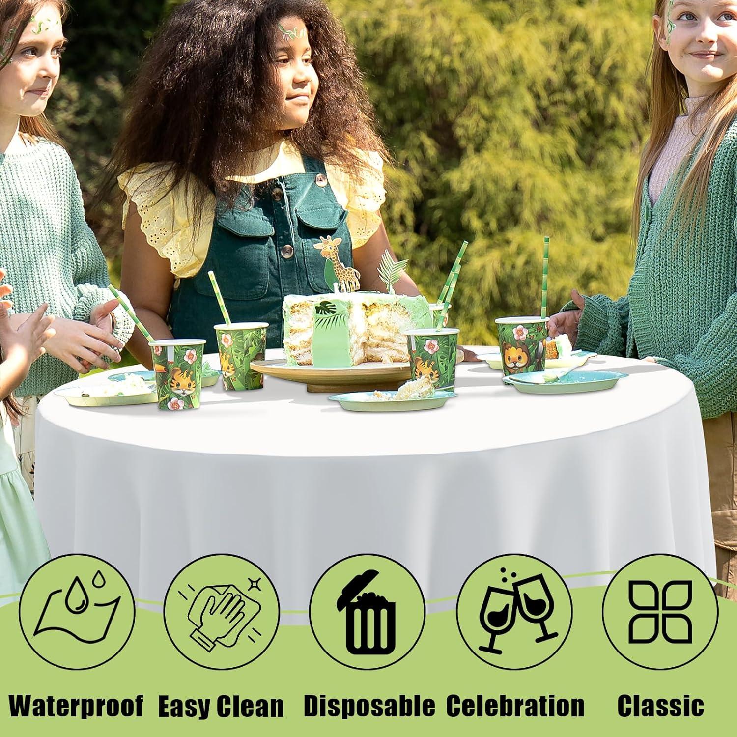 [Waterproof & Easy Clean] The surface of our plastic table cloth is waterproof, providing protection for your table from spills and stains. Simply wipe the tablecloth with a damp cloth to easily clean. After use, just dispose of it, and you're done!