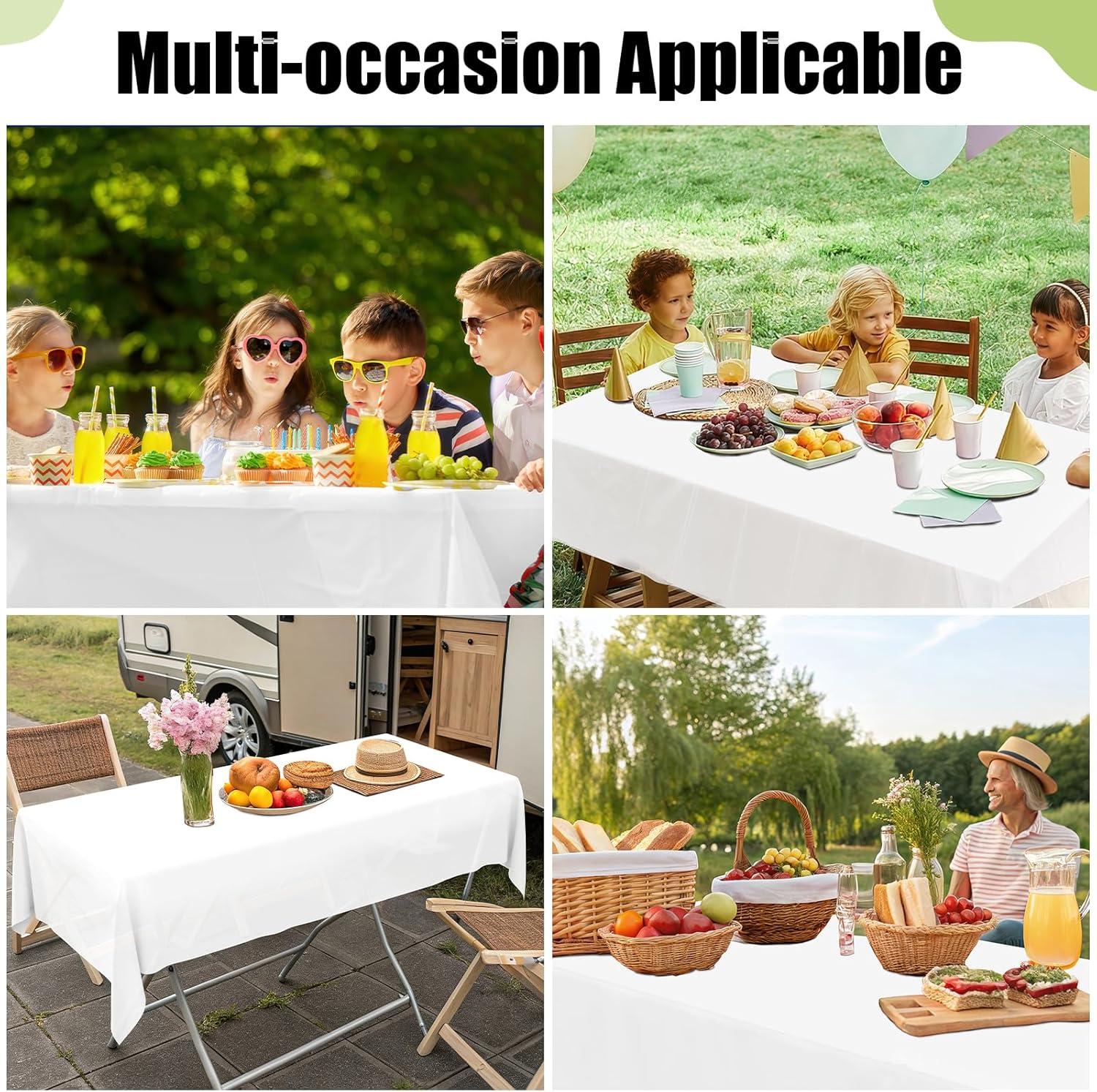 [No Cleanup Worries] Smiry plastic table covers are designed for convenience, making setup and cleanup a breeze. Portable and lightweight, they easily fit into your bag or picnic basket for dining on the go, wherever you roam.