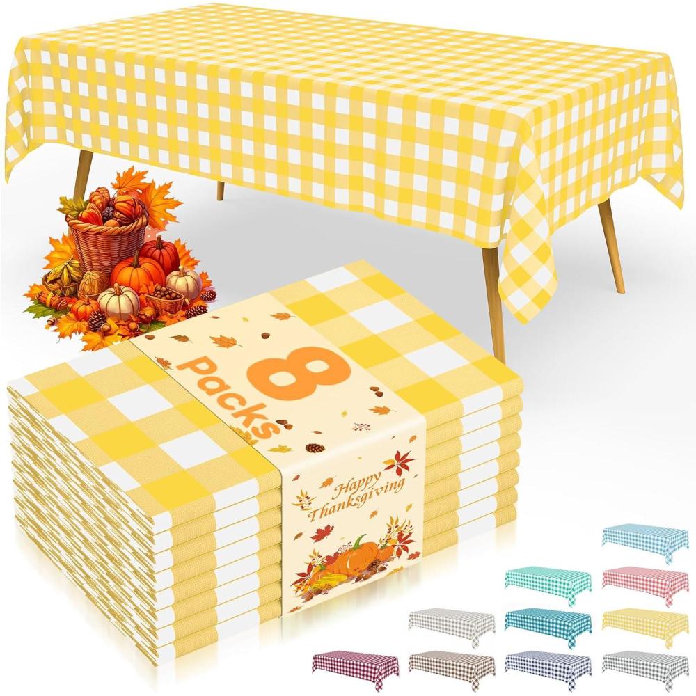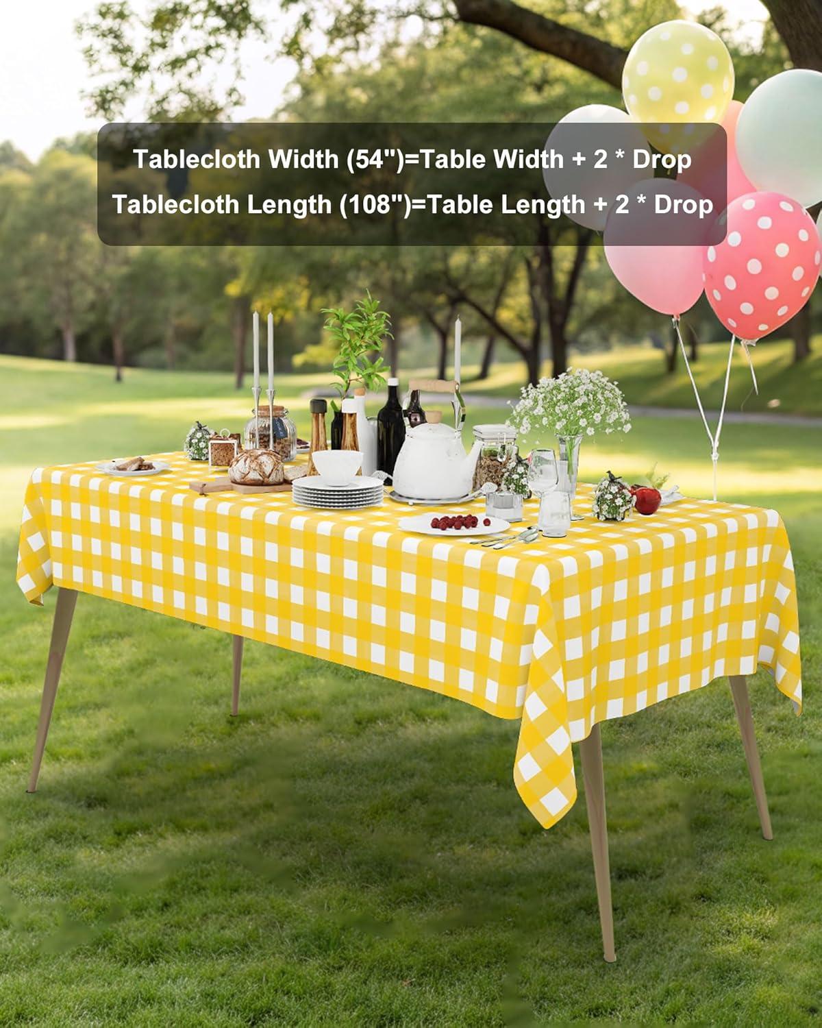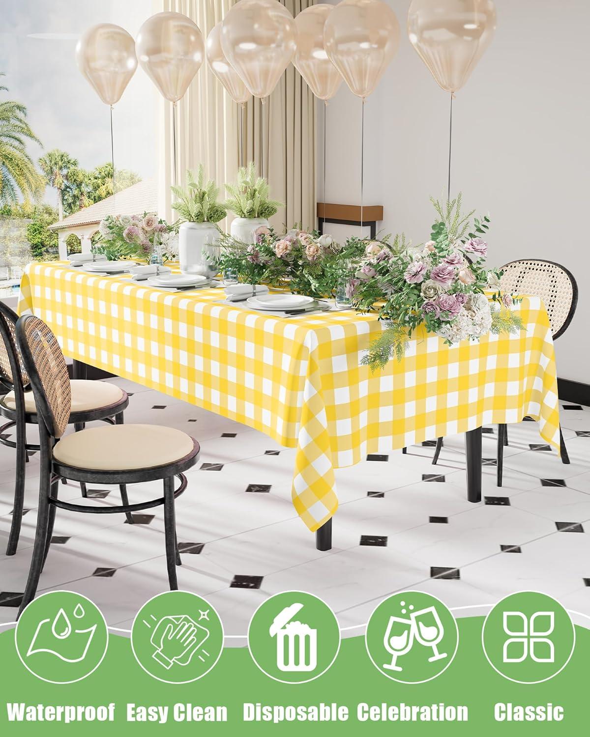 [Waterproof & Easy Clean] The surface of our plastic table cloth is waterproof, providing protection for your table from spills and stains. Simply wipe the tablecloth with a damp cloth to easily clean. After use, just dispose of it, and you're done!