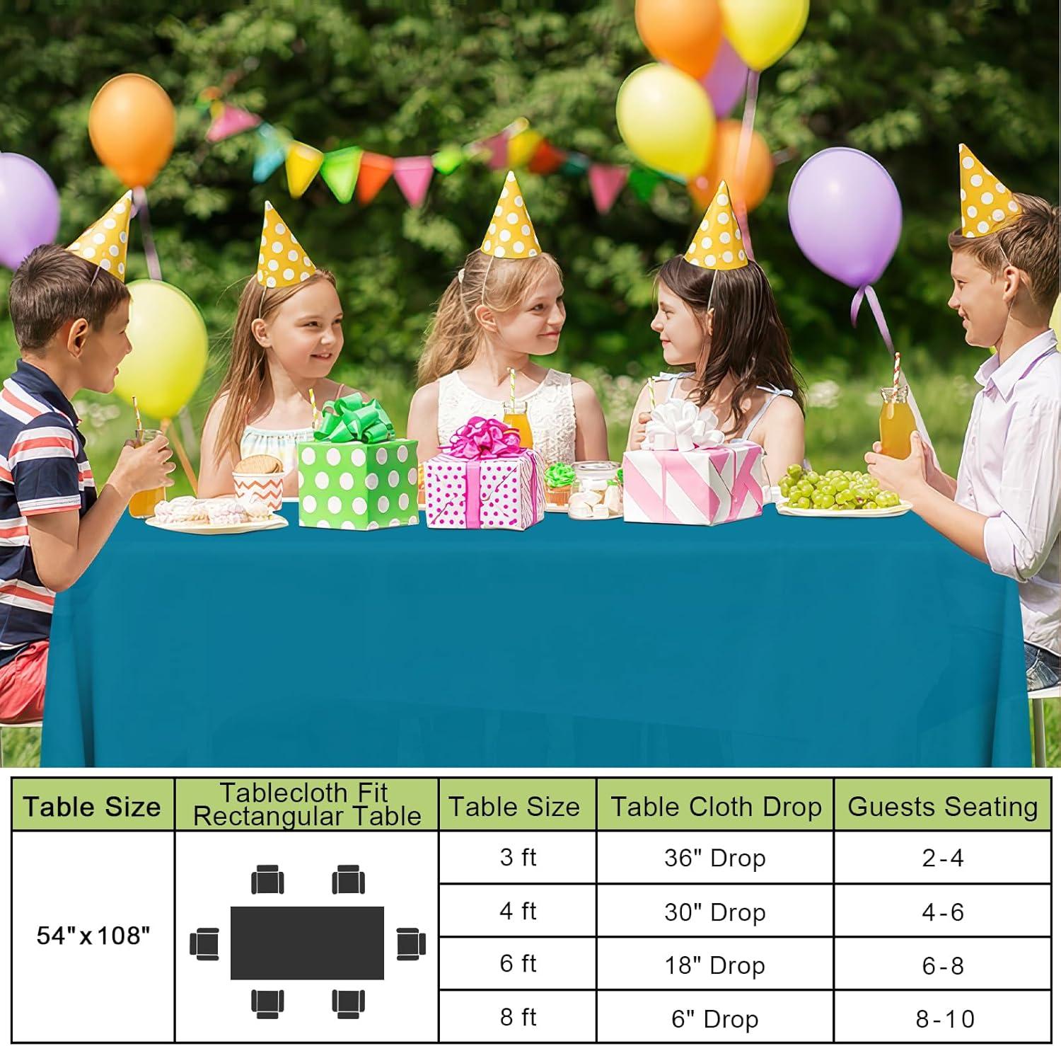 [Waterproof & Easy Clean] The surface of our plastic table cloth is waterproof, providing protection for your table from spills and stains. Simply wipe the tablecloth with a damp cloth to easily clean. After use, just dispose of it, and you're done!