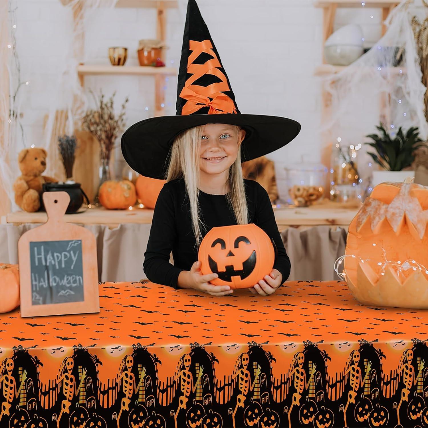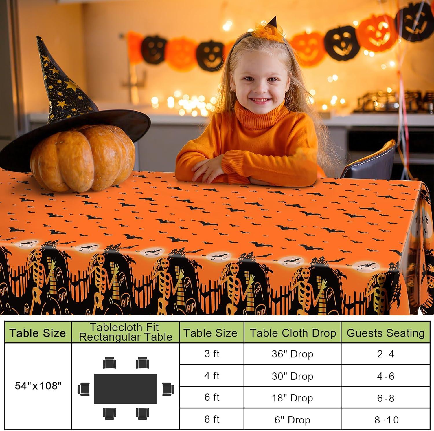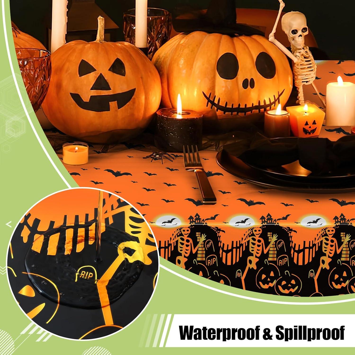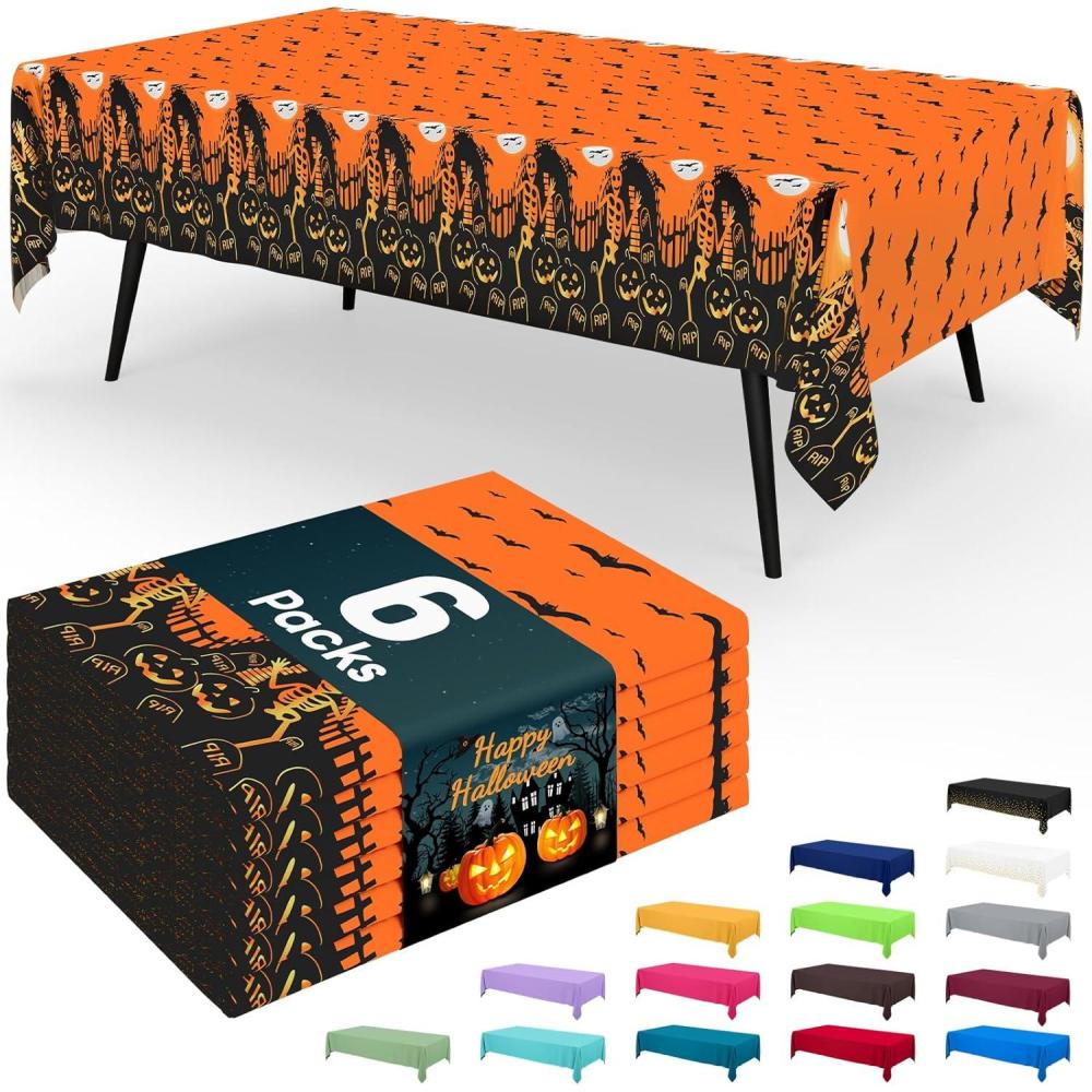 Smiry Disposable Table Cloth – 6 Pack, 54 x 108 Inch Waterproof Rectangle Tablecloths for Parties, Decorative Plastic Table Cover, Leakproof & Sturdy, Navy(Black & Orange)