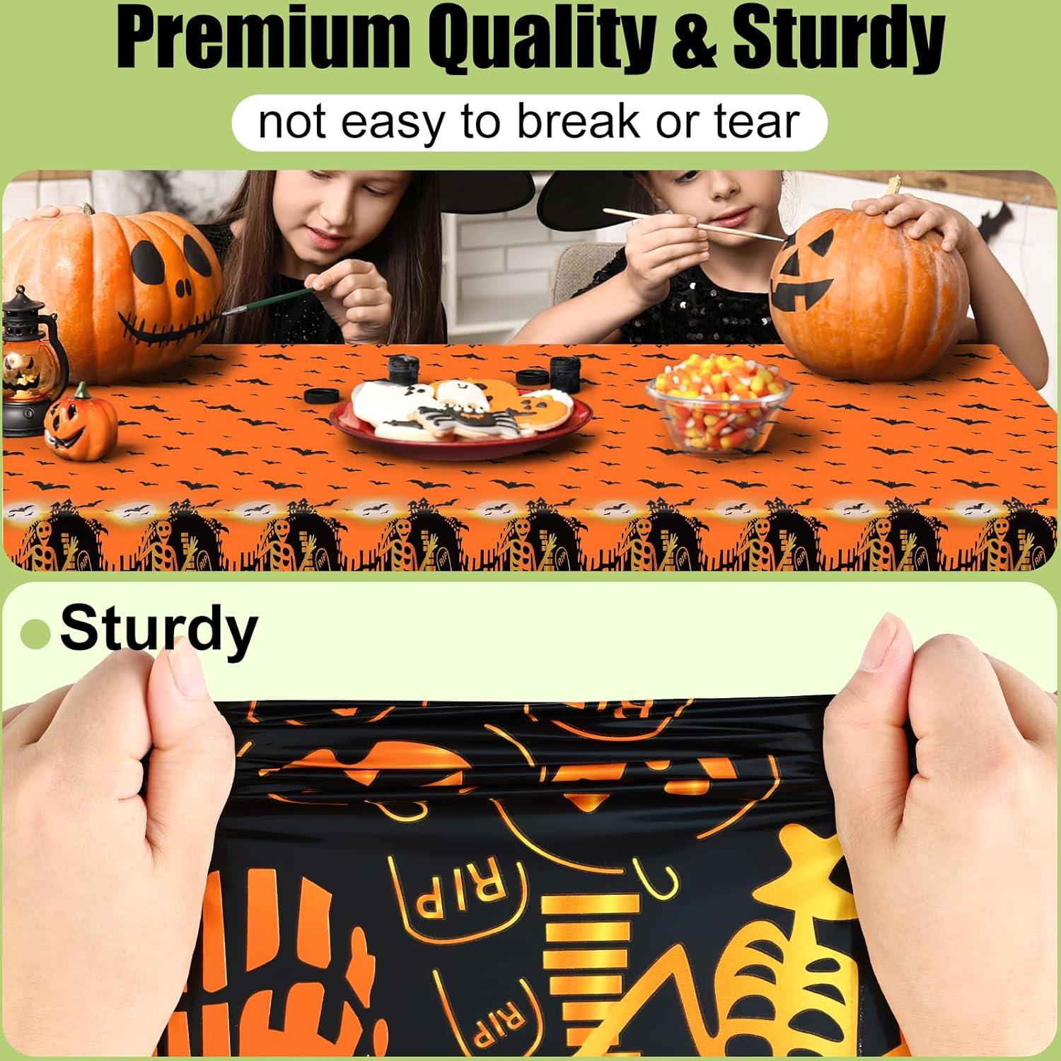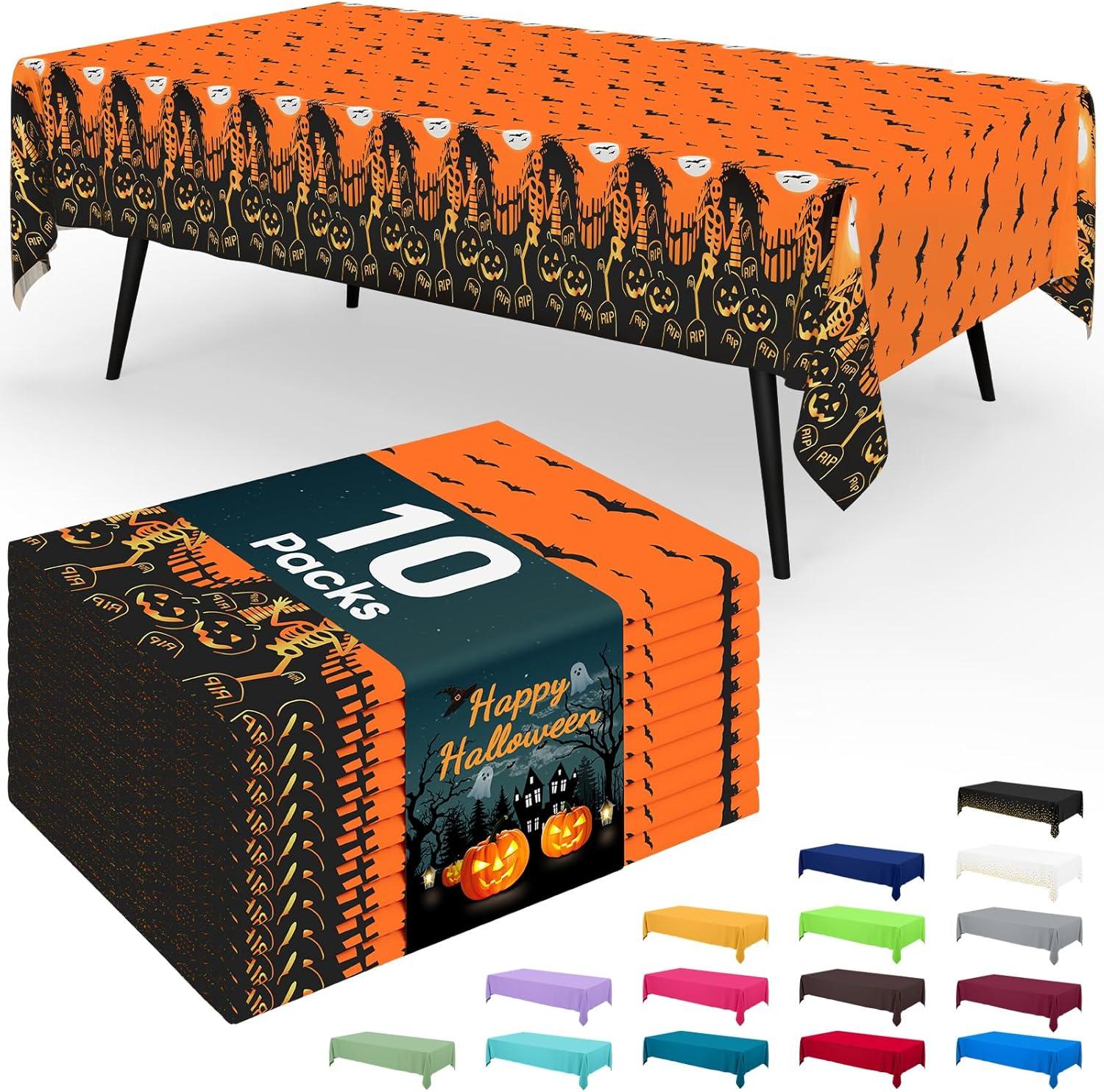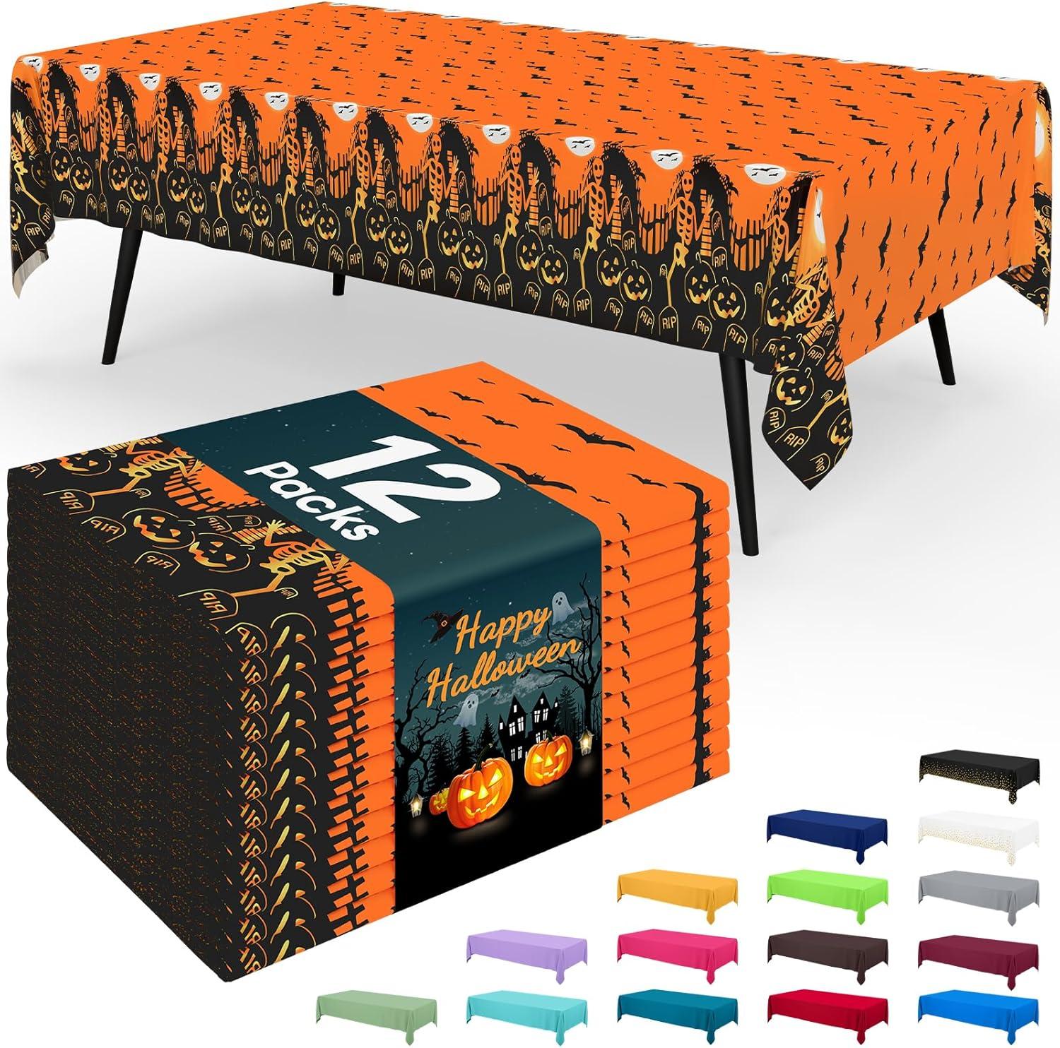 Smiry Disposable Table Cloth - 6 Pack, 54 x 108 Inch Waterproof Rectangle Tablecloths for Parties, Decorative Plastic Table Cover, Leakproof & Sturdy, Navy(Black & Orange)