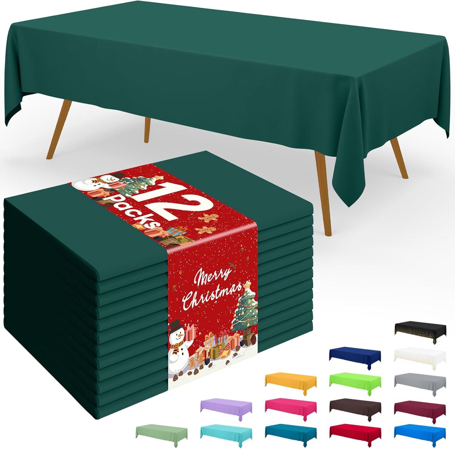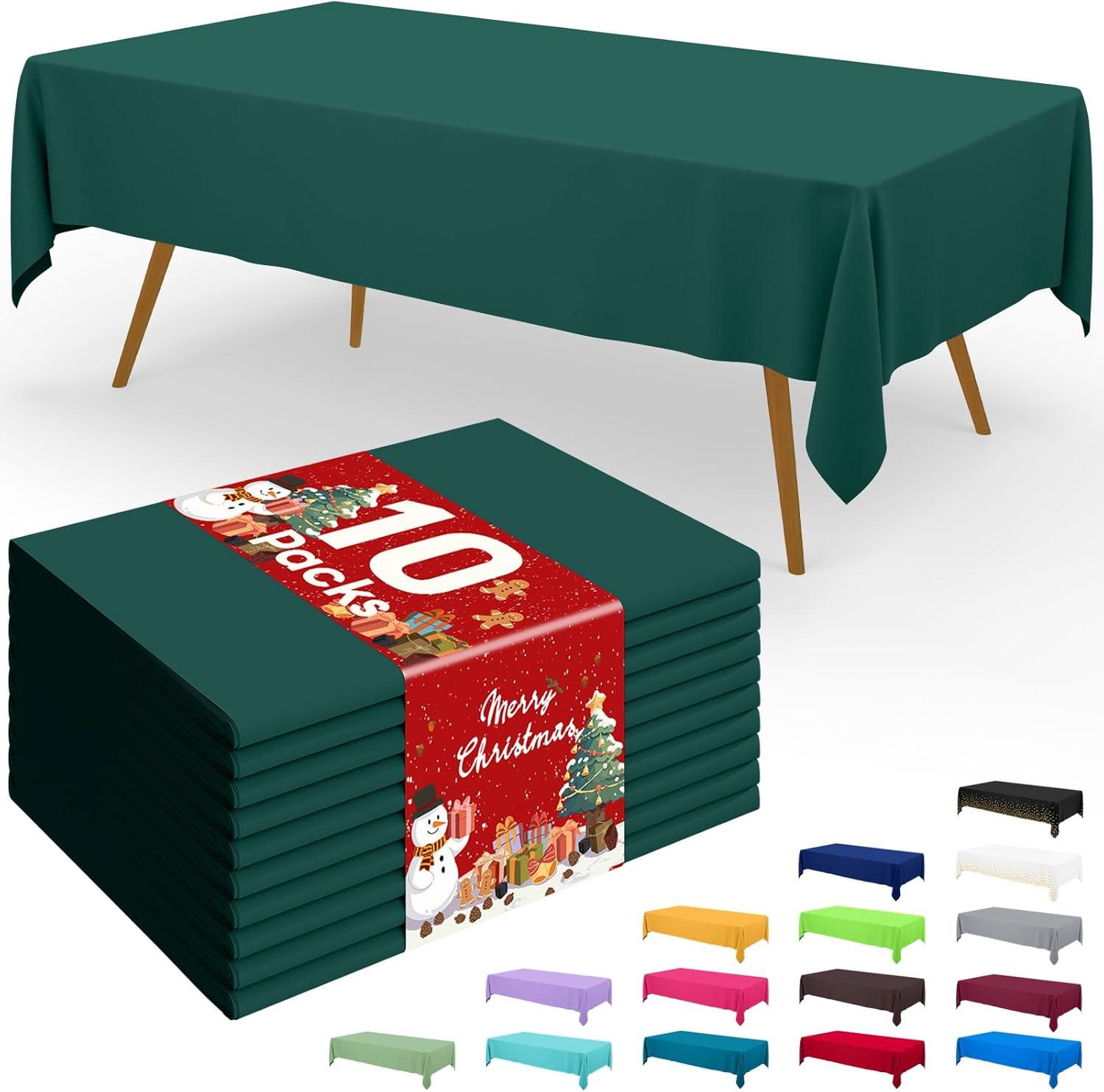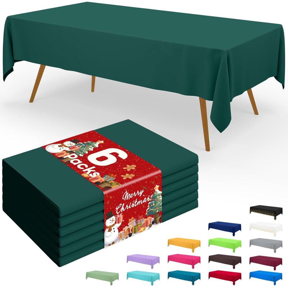 Smiry Disposable Table Cloth - 6 Pack, 54 x 108 Inch Waterproof Rectangle Tablecloths for Parties, Decorative Plastic Table Cover, Leakproof & Sturdy, Navy(Christmas Green)