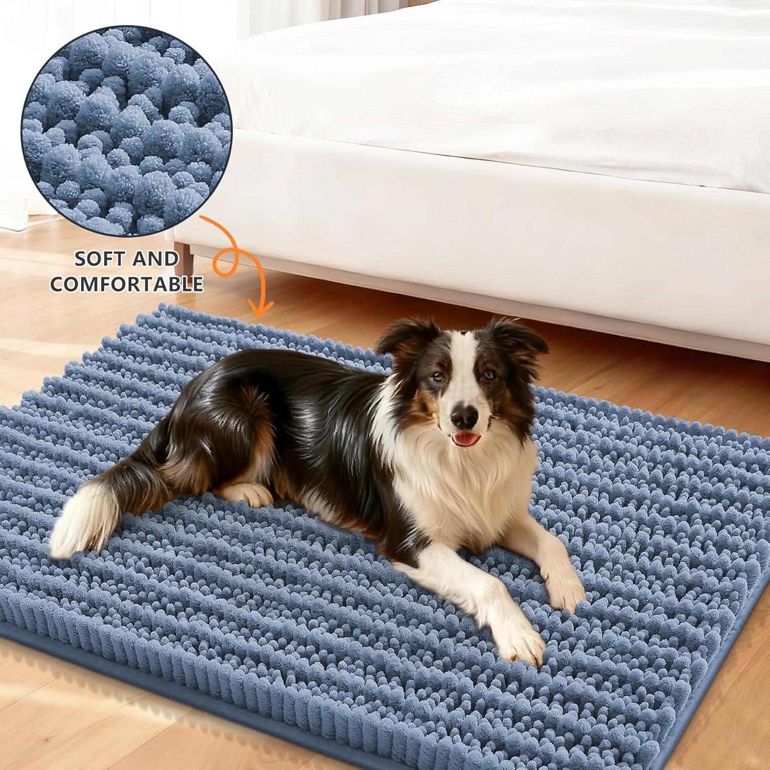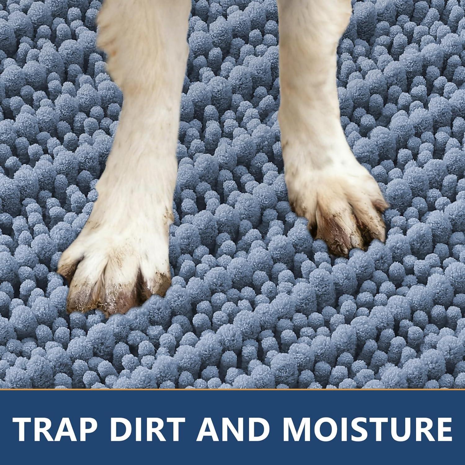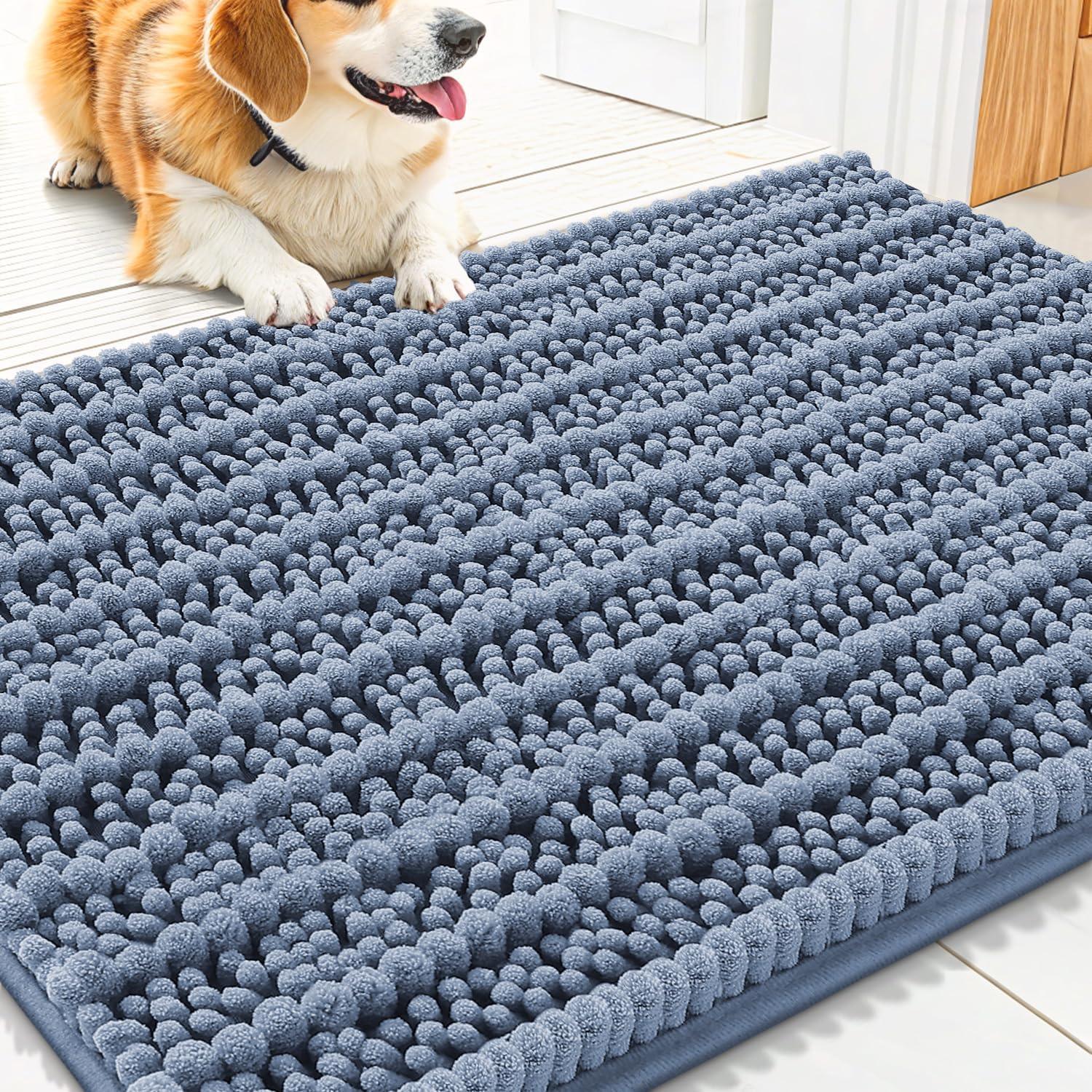 Smiry Dog Door Mat for Muddy Paws 30×20, Extra Soft Absorbent Chenille Doormat, Trap Moisture and Dirt, Non-Slip Machine Washable Front Door Mat for Indoor Entrance Inside Floor, Grey(Atlantic Blue)