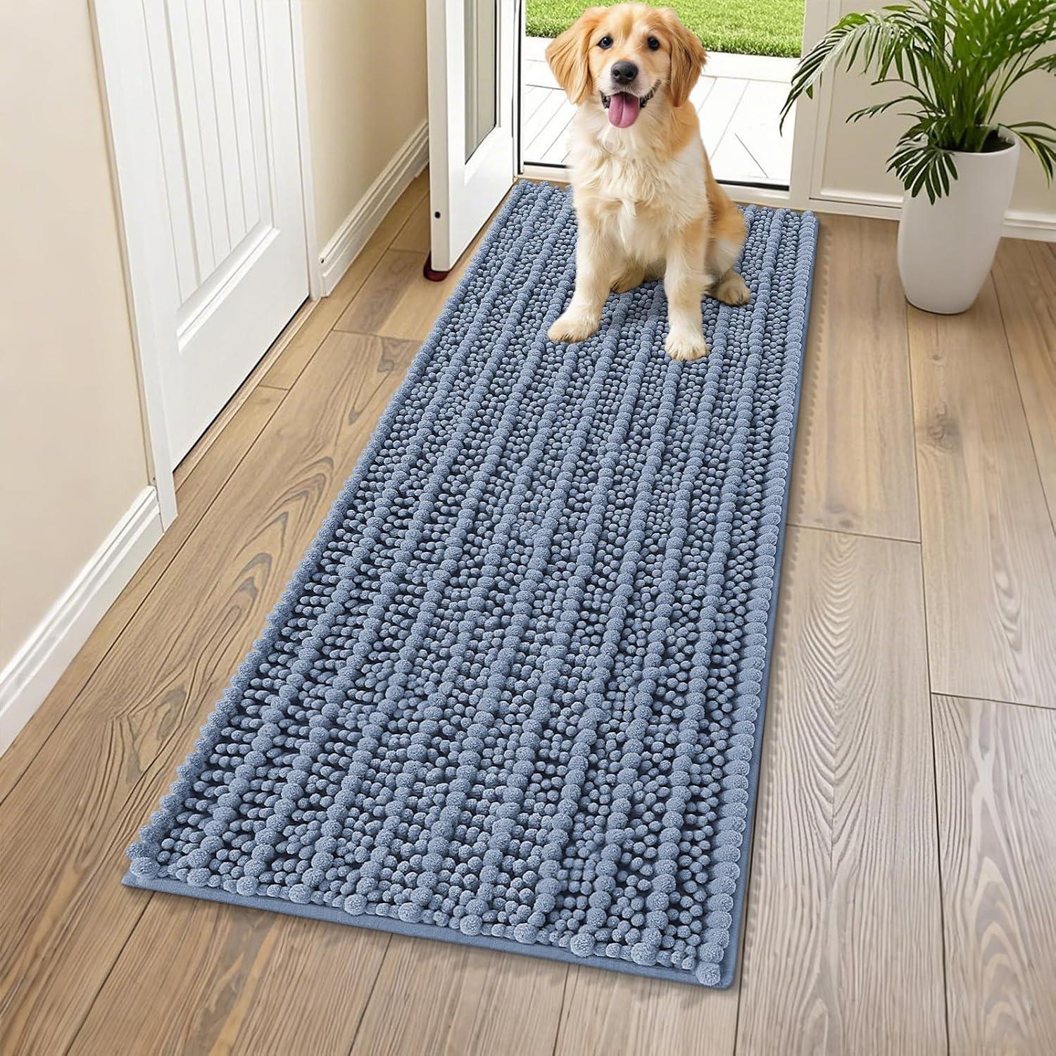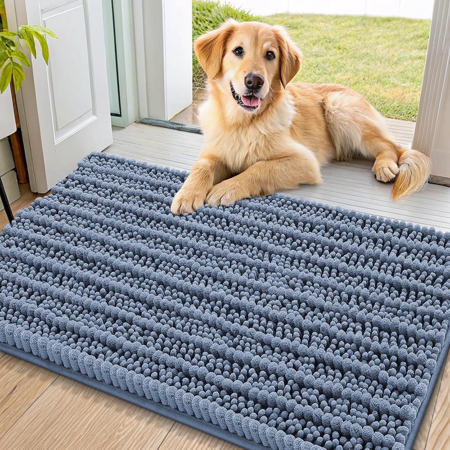 Smiry Dog Door Mat for Muddy Paws 30x20, Extra Soft Absorbent Chenille Doormat, Trap Moisture and Dirt, Non-Slip Machine Washable Front Door Mat for Indoor Entrance Inside Floor, Grey(Airy Blue)