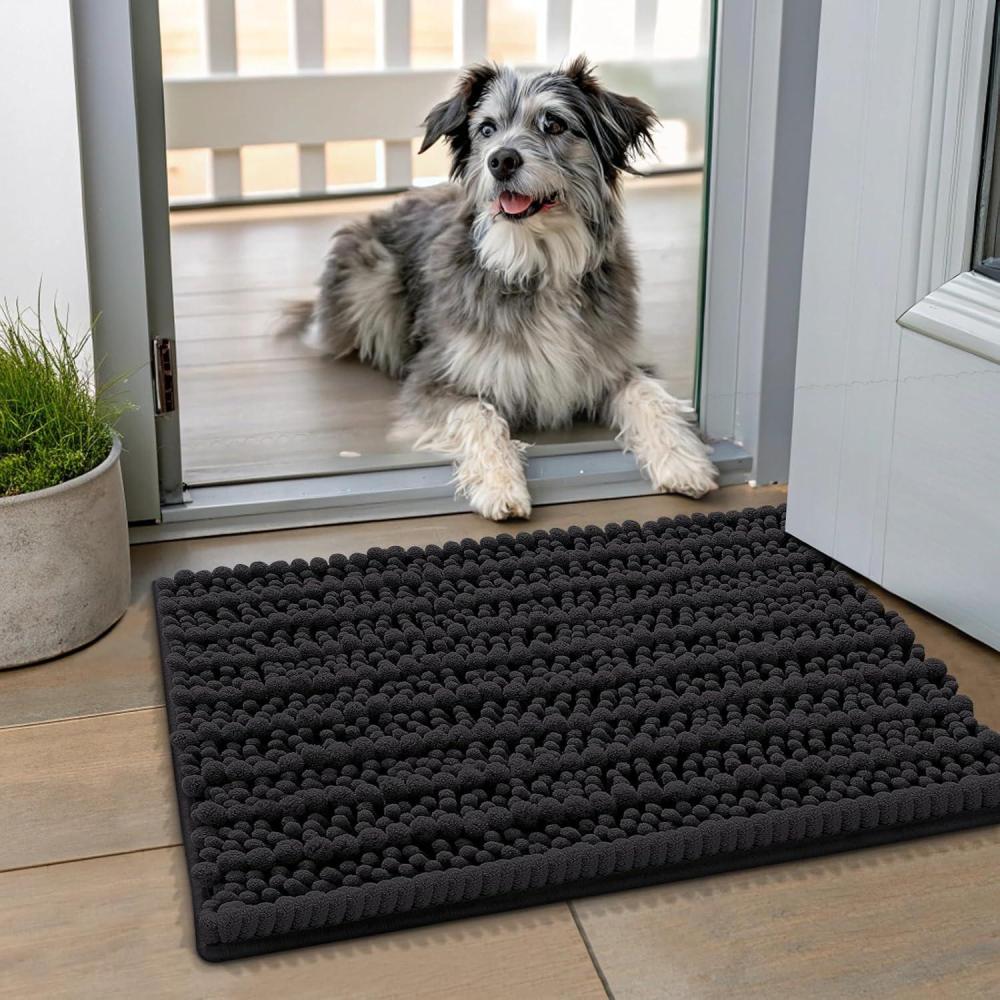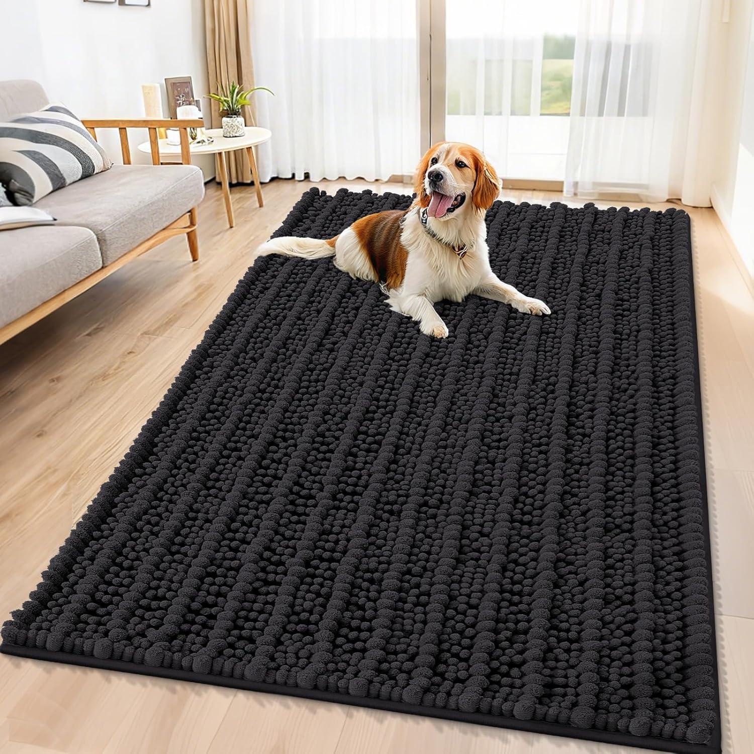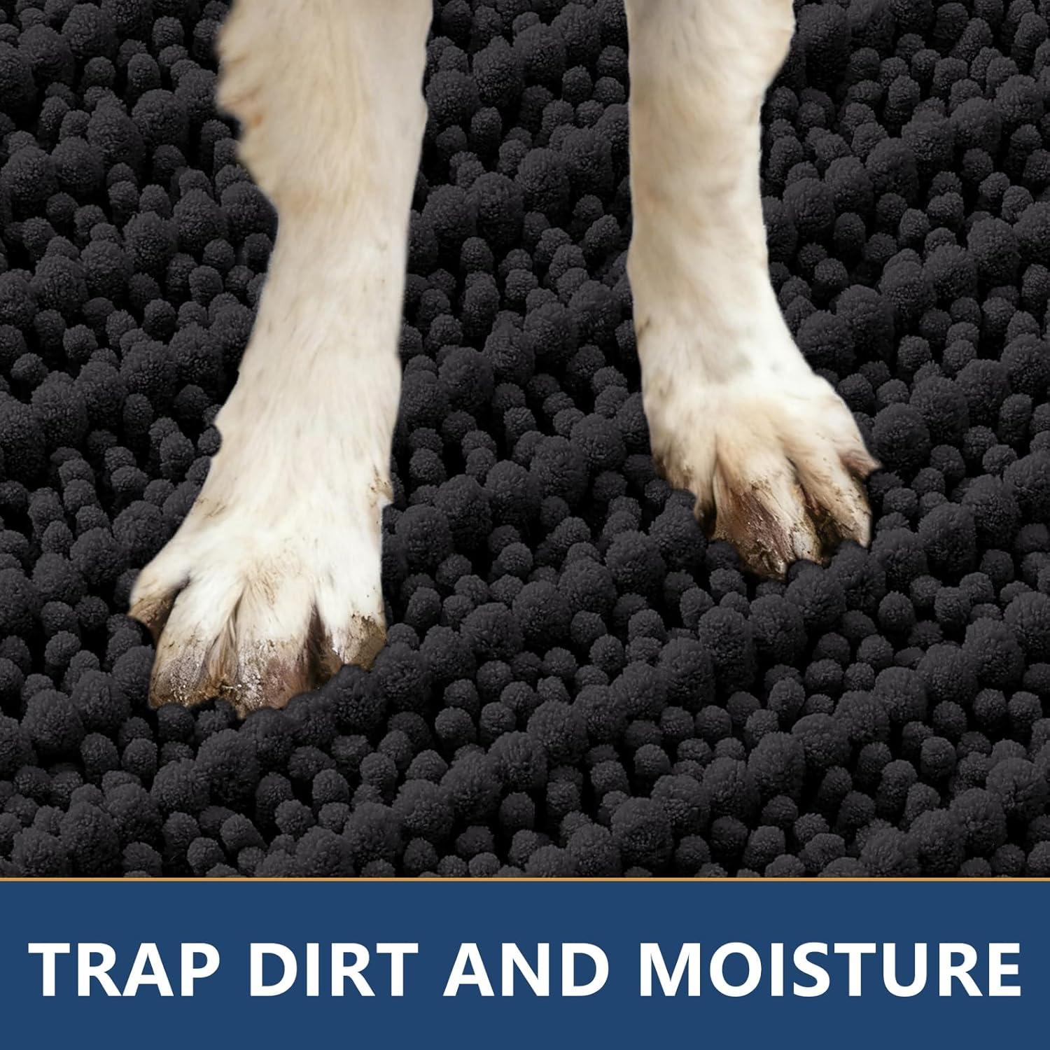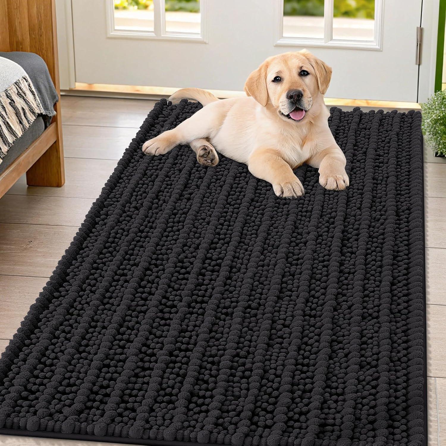 Smiry Dog Door Mat for Muddy Paws 30x20, Extra Soft Absorbent Chenille Doormat, Trap Moisture and Dirt, Non-Slip Machine Washable Front Door Mat for Indoor Entrance Inside Floor, Grey(Black)