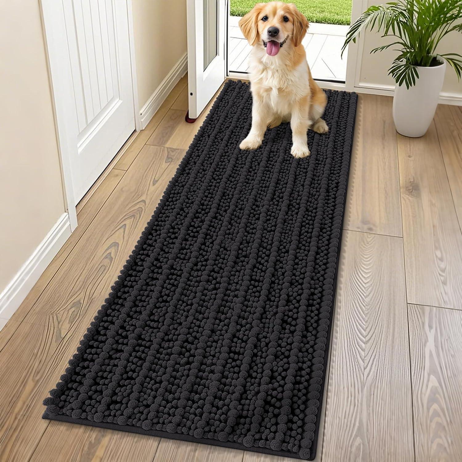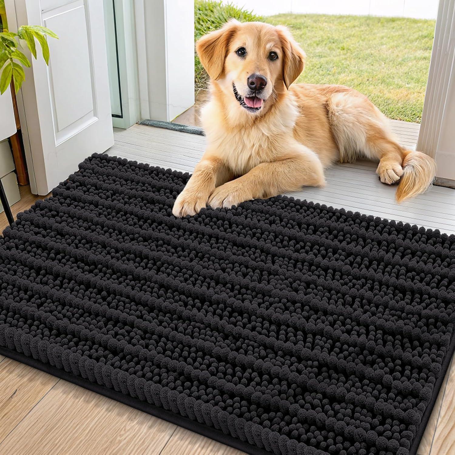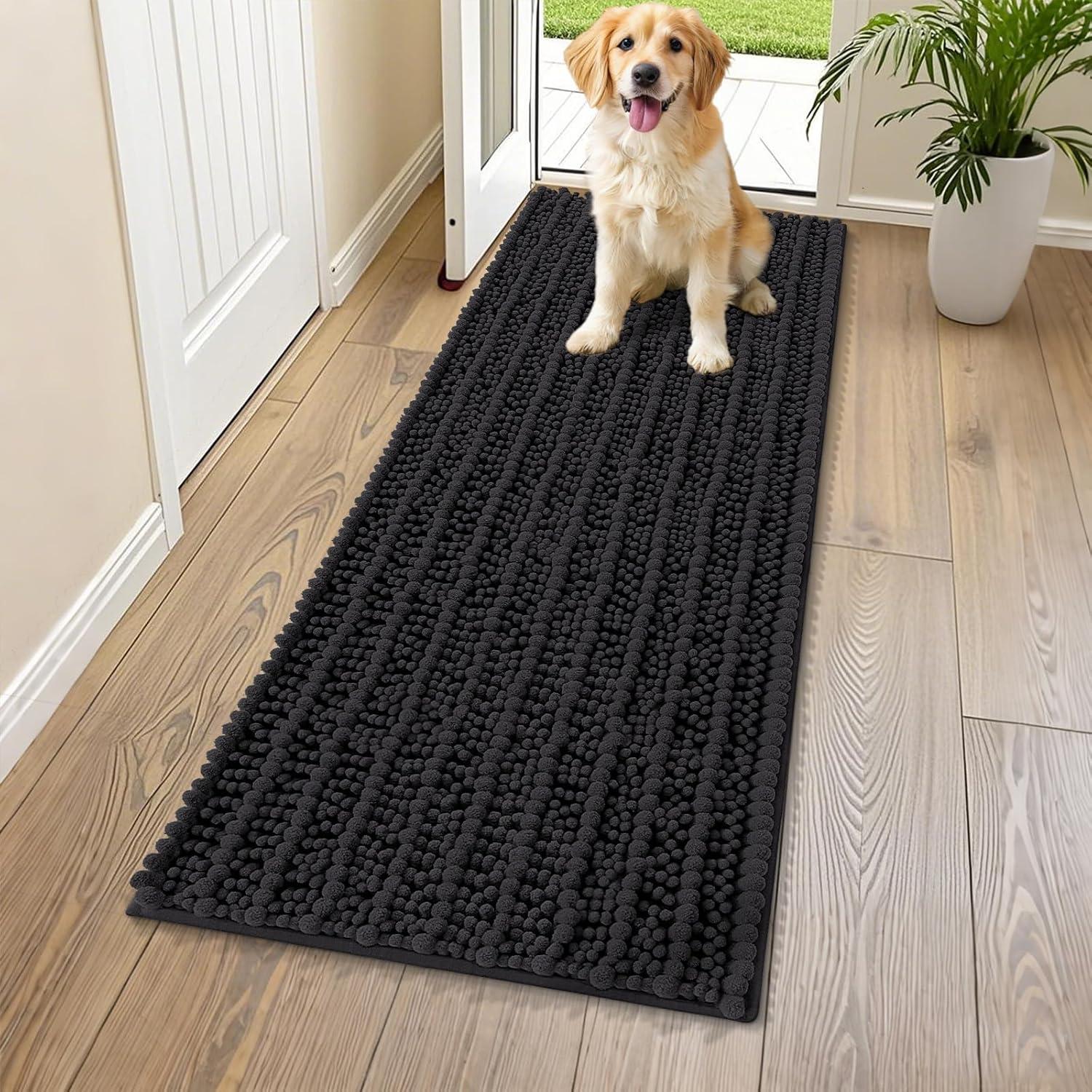 Smiry Dog Door Mat for Muddy Paws 30x20, Extra Soft Absorbent Chenille Doormat, Trap Moisture and Dirt, Non-Slip Machine Washable Front Door Mat for Indoor Entrance Inside Floor, Grey(Black)