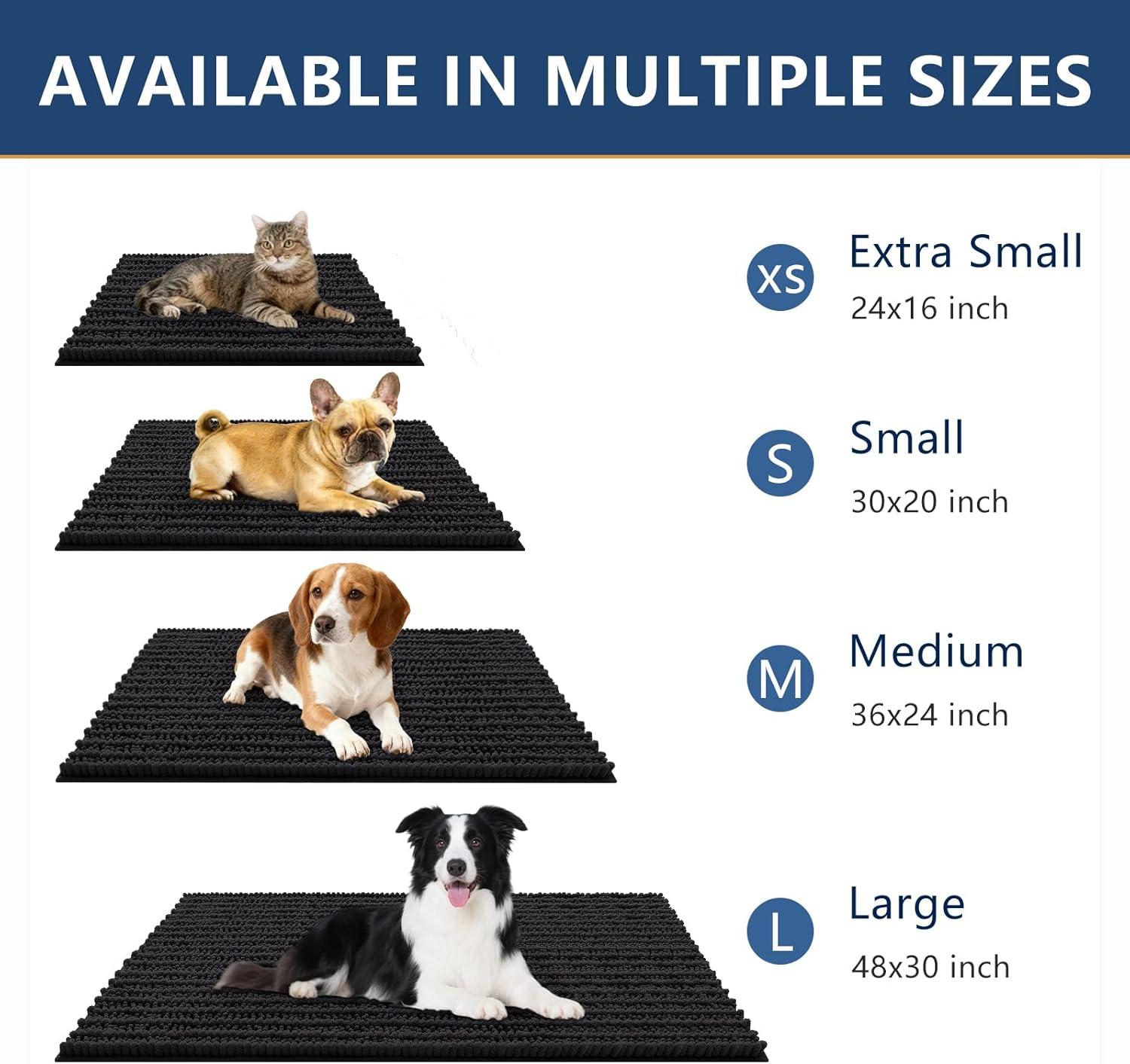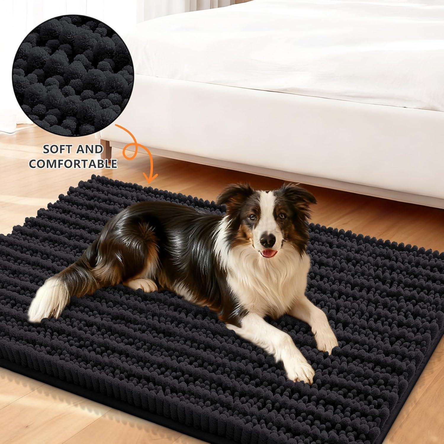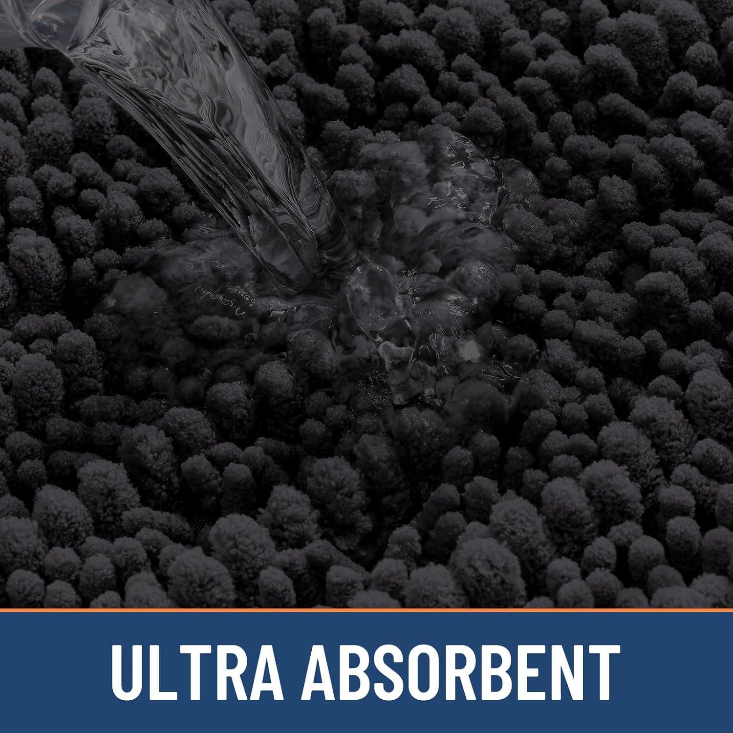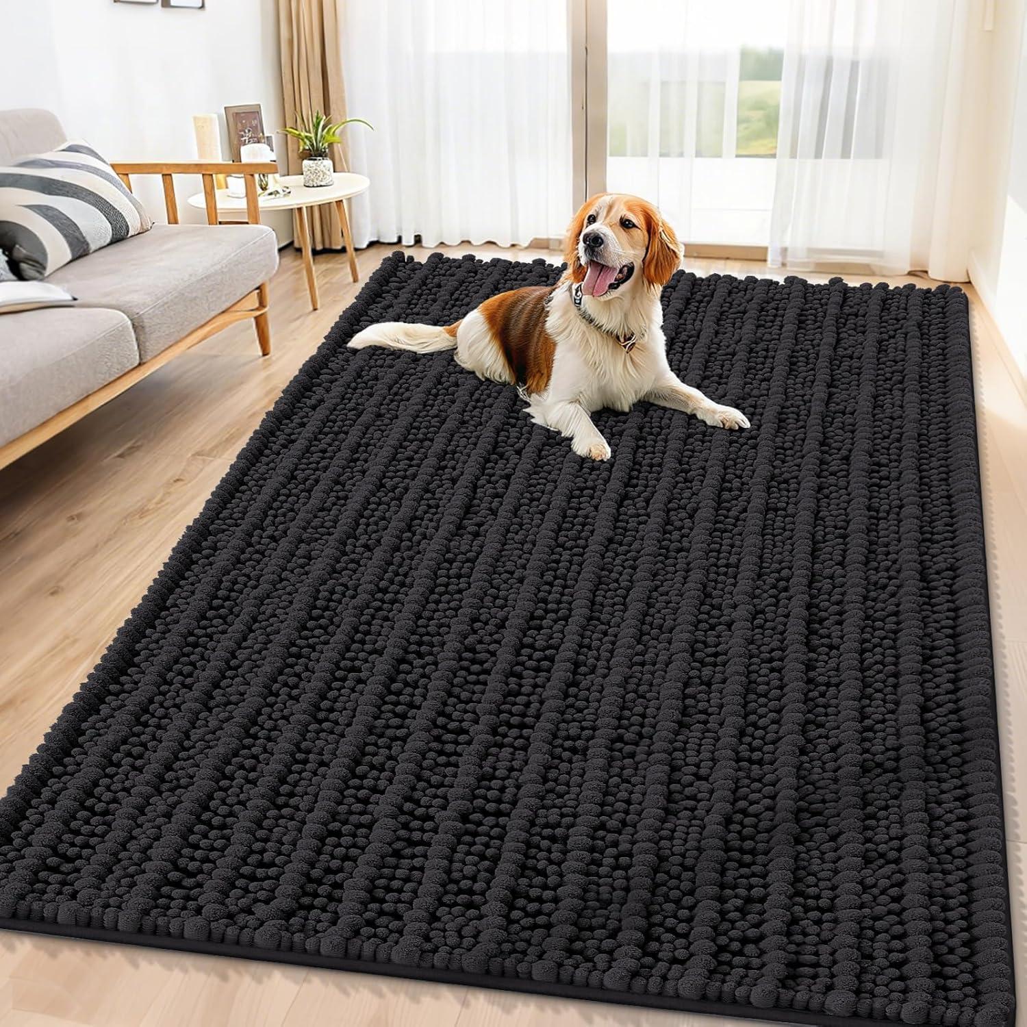 Smiry Dog Door Mat for Muddy Paws 30x20, Extra Soft Absorbent Chenille Doormat, Trap Moisture and Dirt, Non-Slip Machine Washable Front Door Mat for Indoor Entrance Inside Floor, Grey(Black)