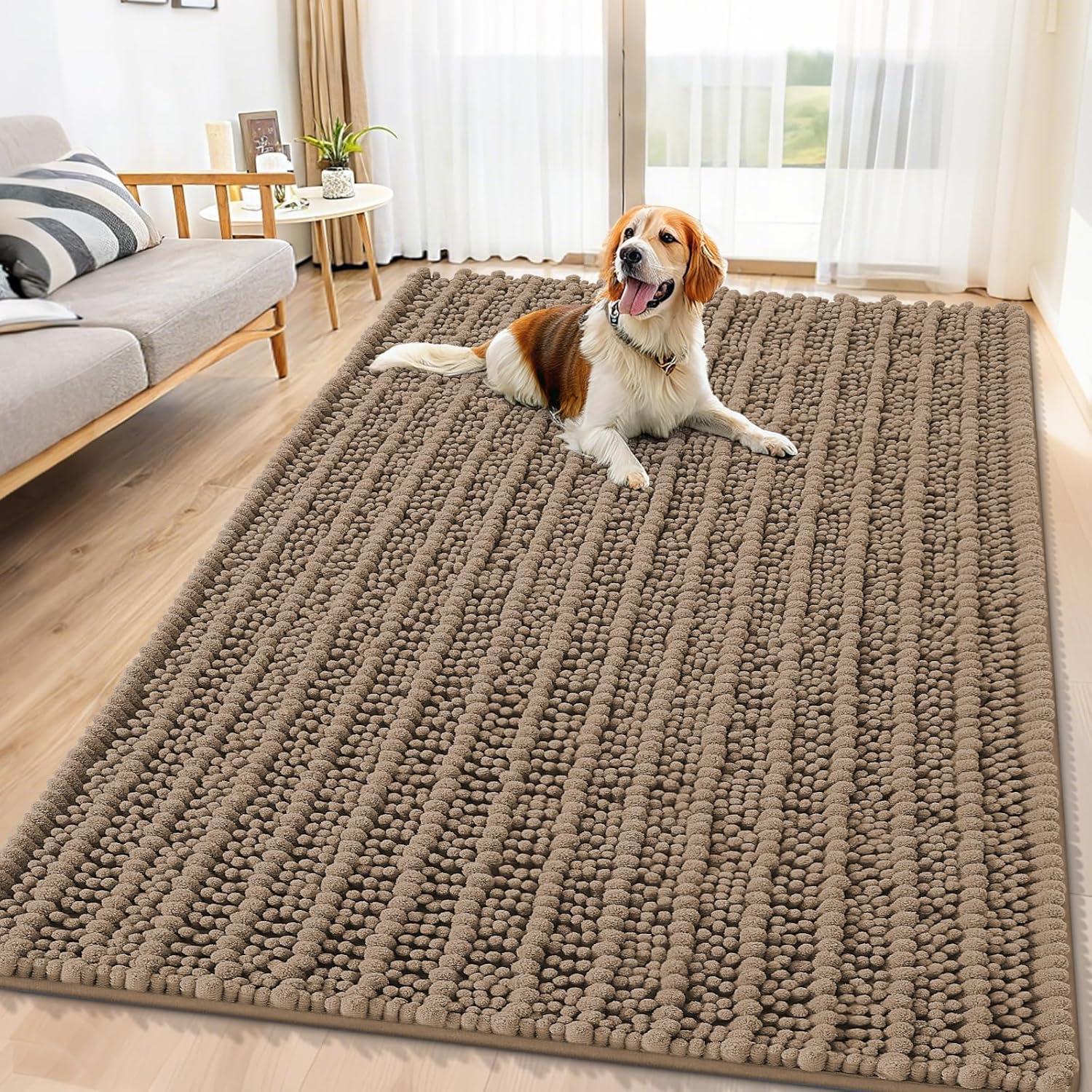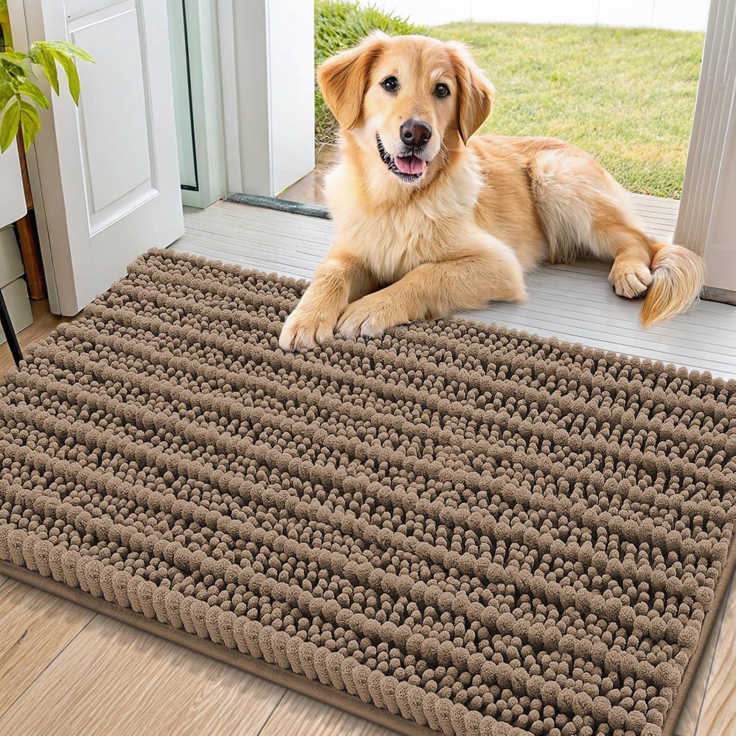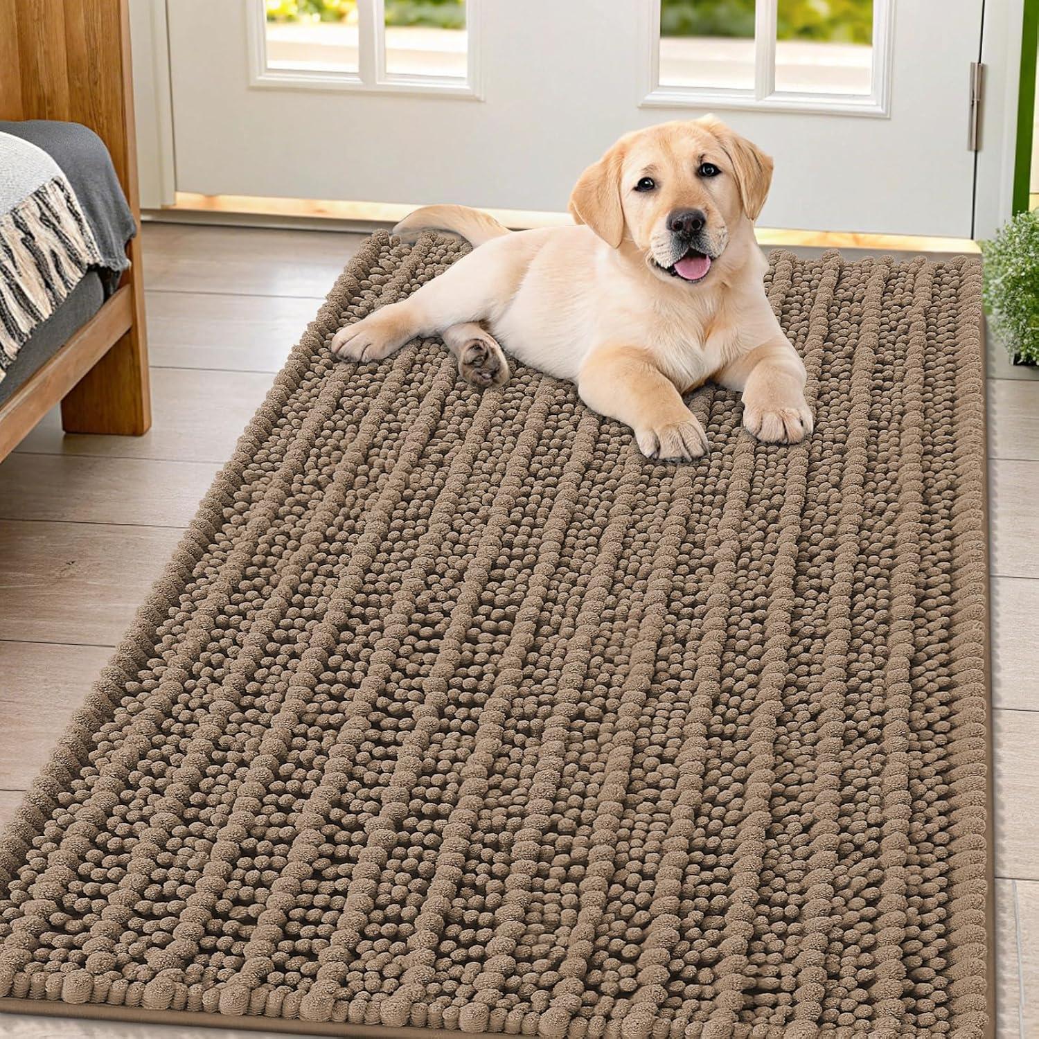 Smiry Dog Door Mat for Muddy Paws 30x20, Extra Soft Absorbent Chenille Doormat, Trap Moisture and Dirt, Non-Slip Machine Washable Front Door Mat for Indoor Entrance Inside Floor, Grey(Camel)