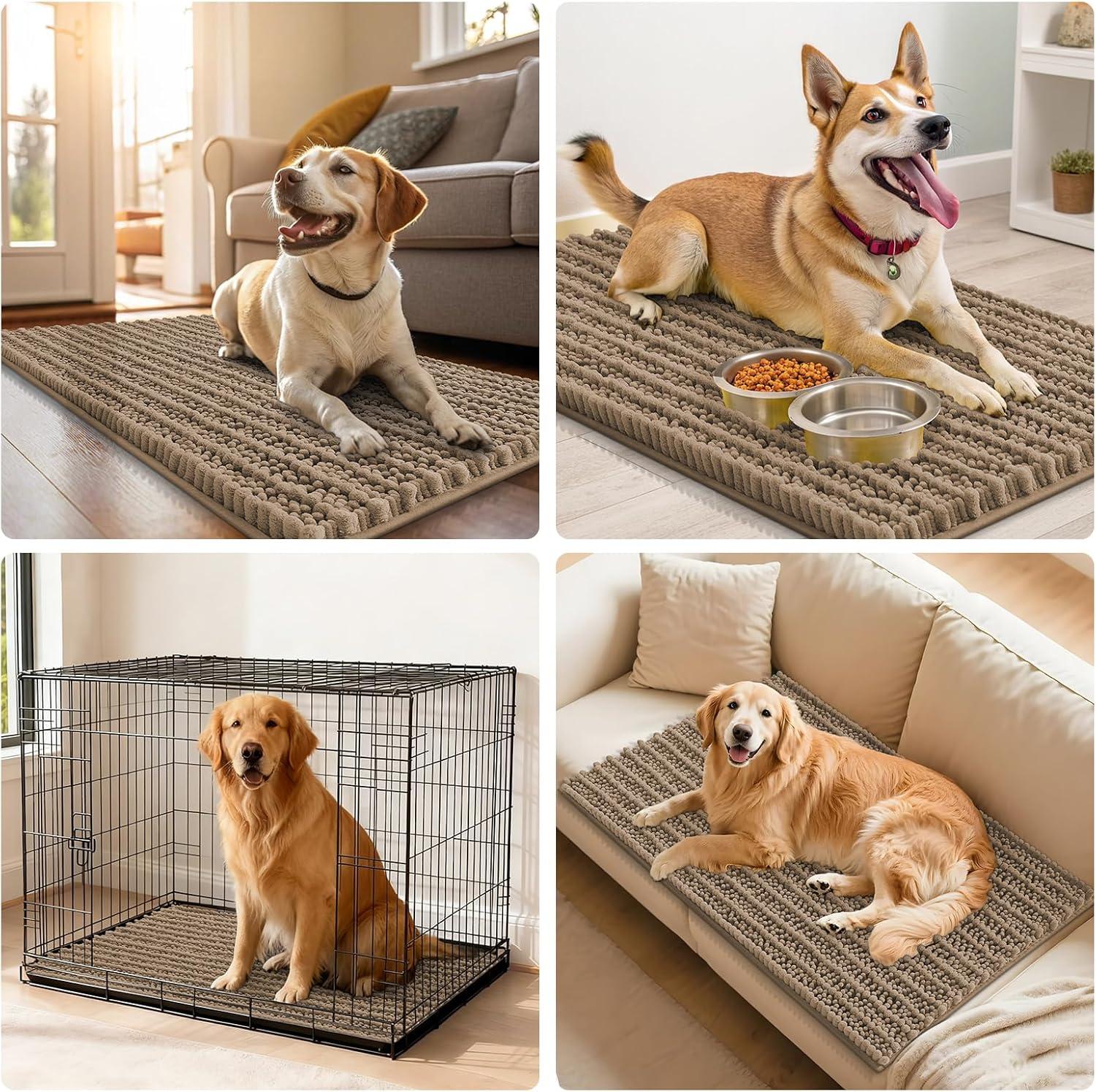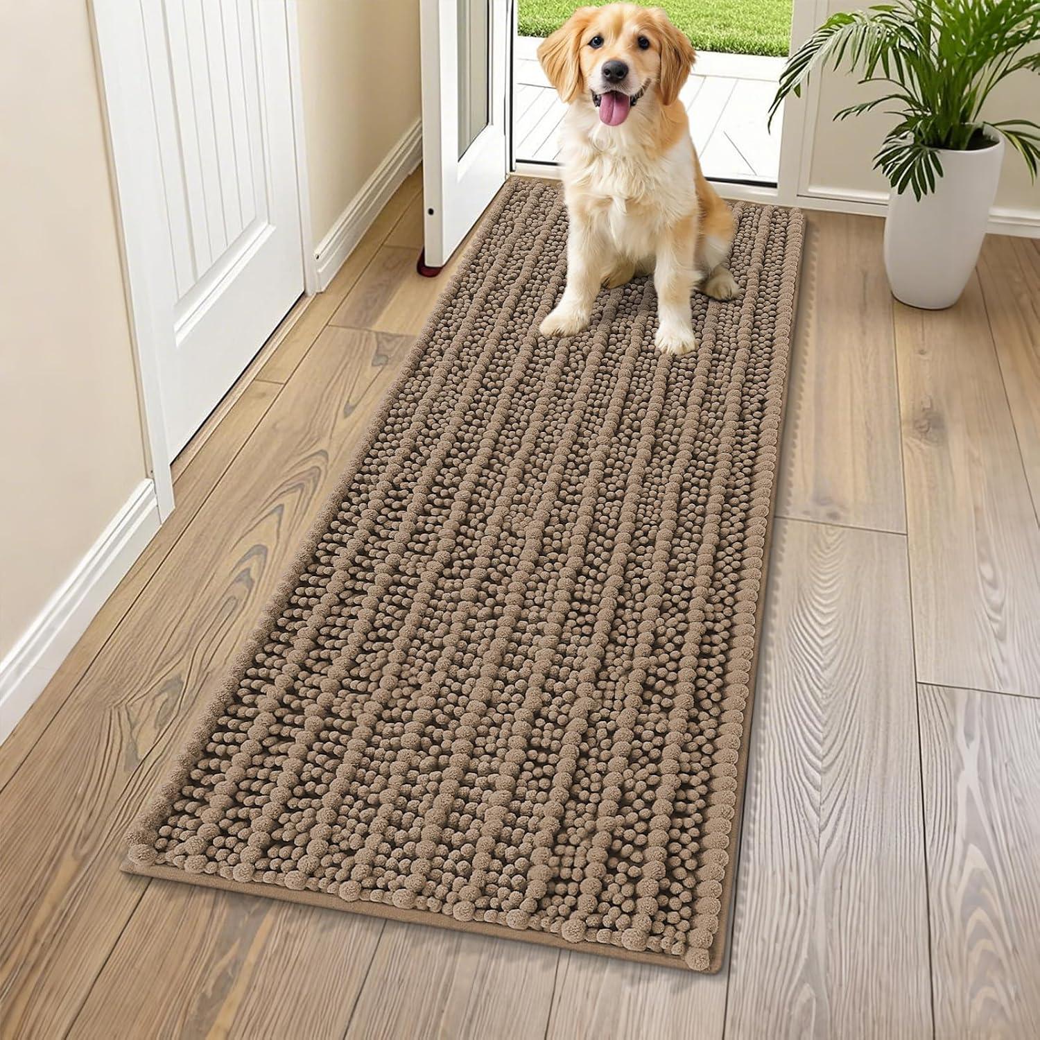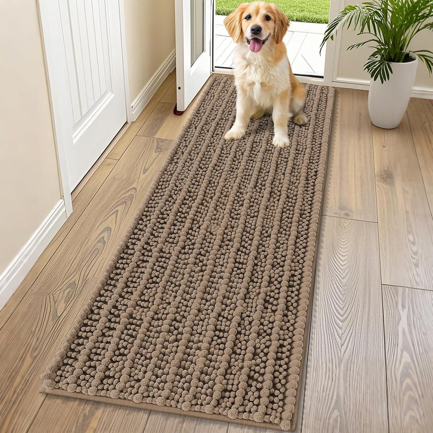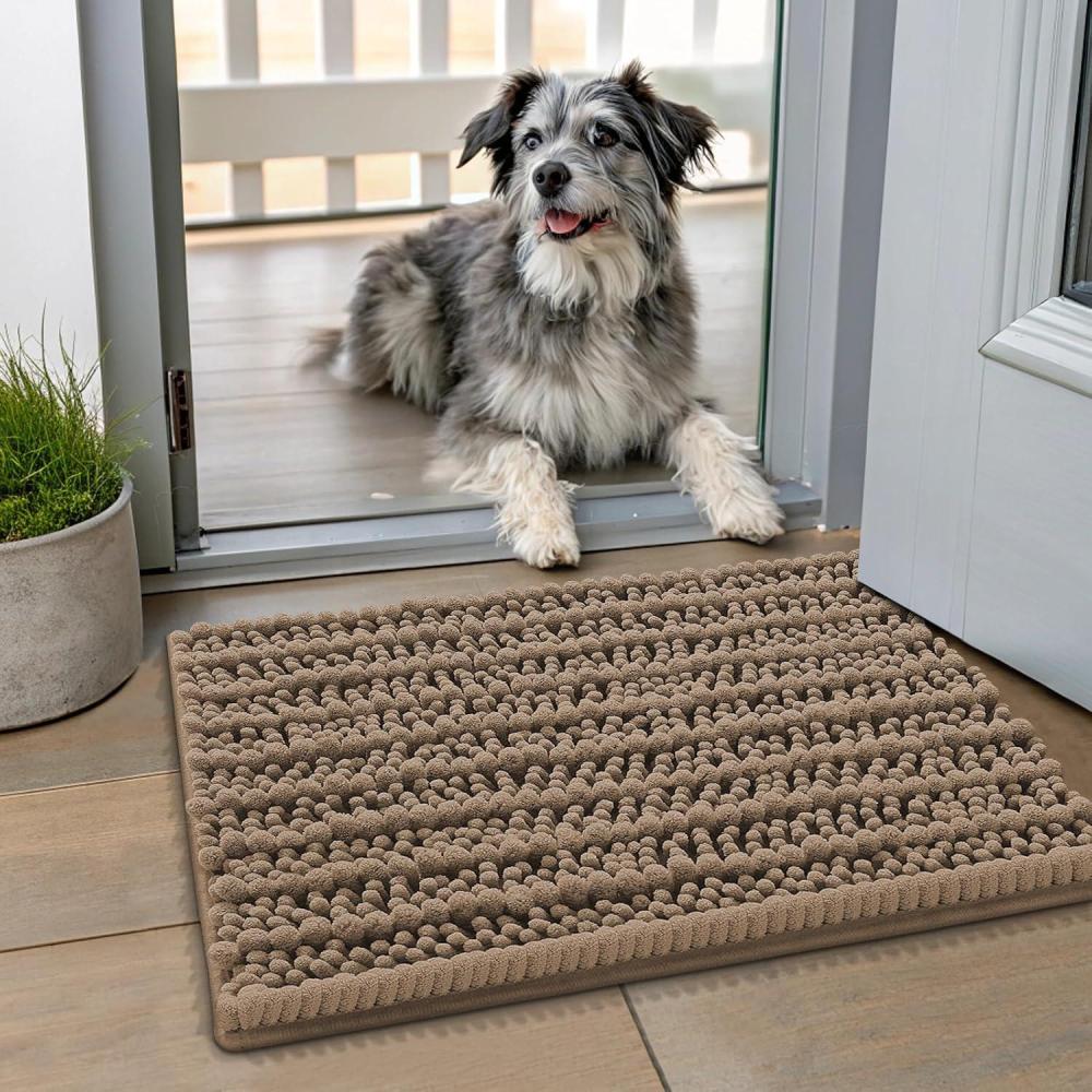 Smiry Dog Door Mat for Muddy Paws 30x20, Extra Soft Absorbent Chenille Doormat, Trap Moisture and Dirt, Non-Slip Machine Washable Front Door Mat for Indoor Entrance Inside Floor, Grey(Camel)