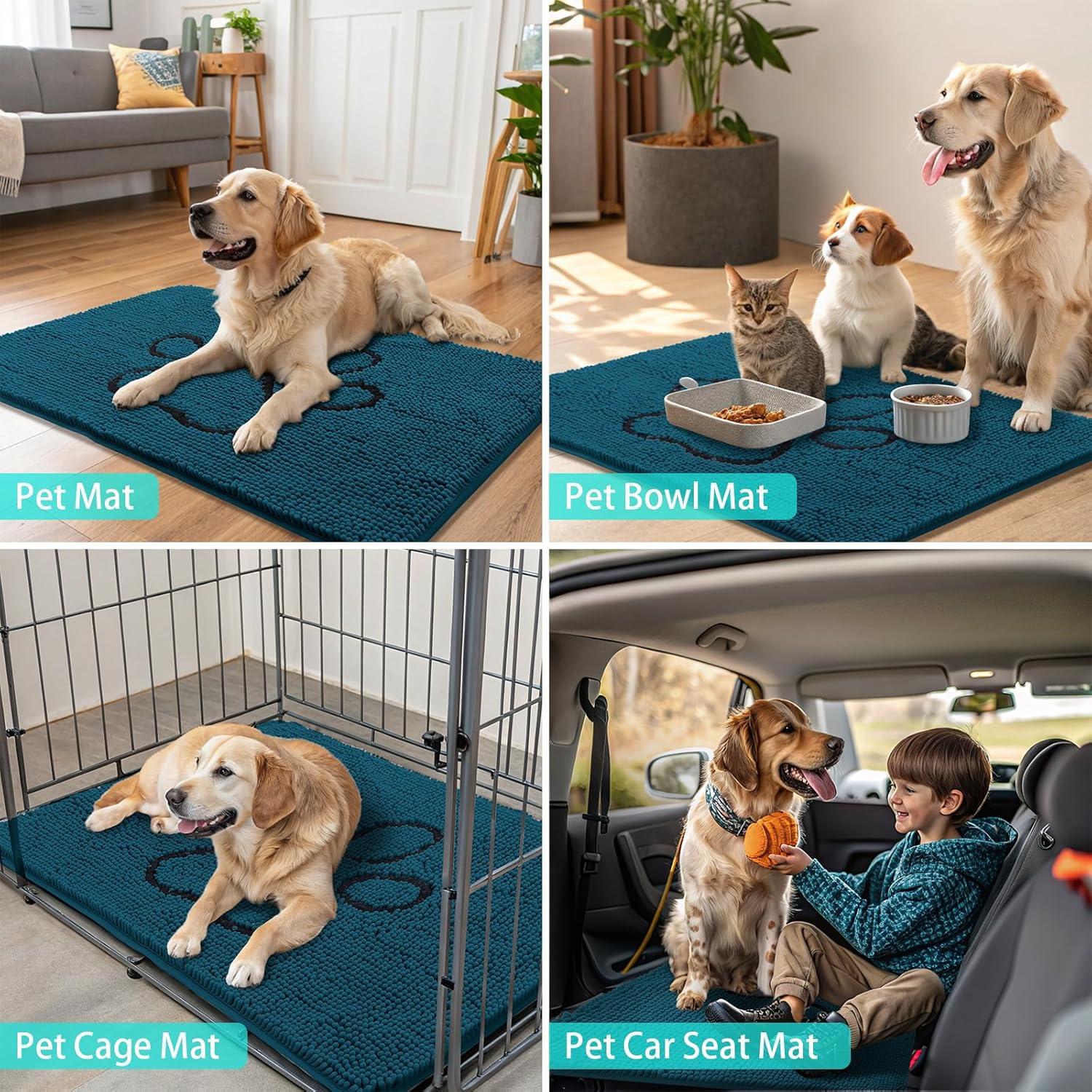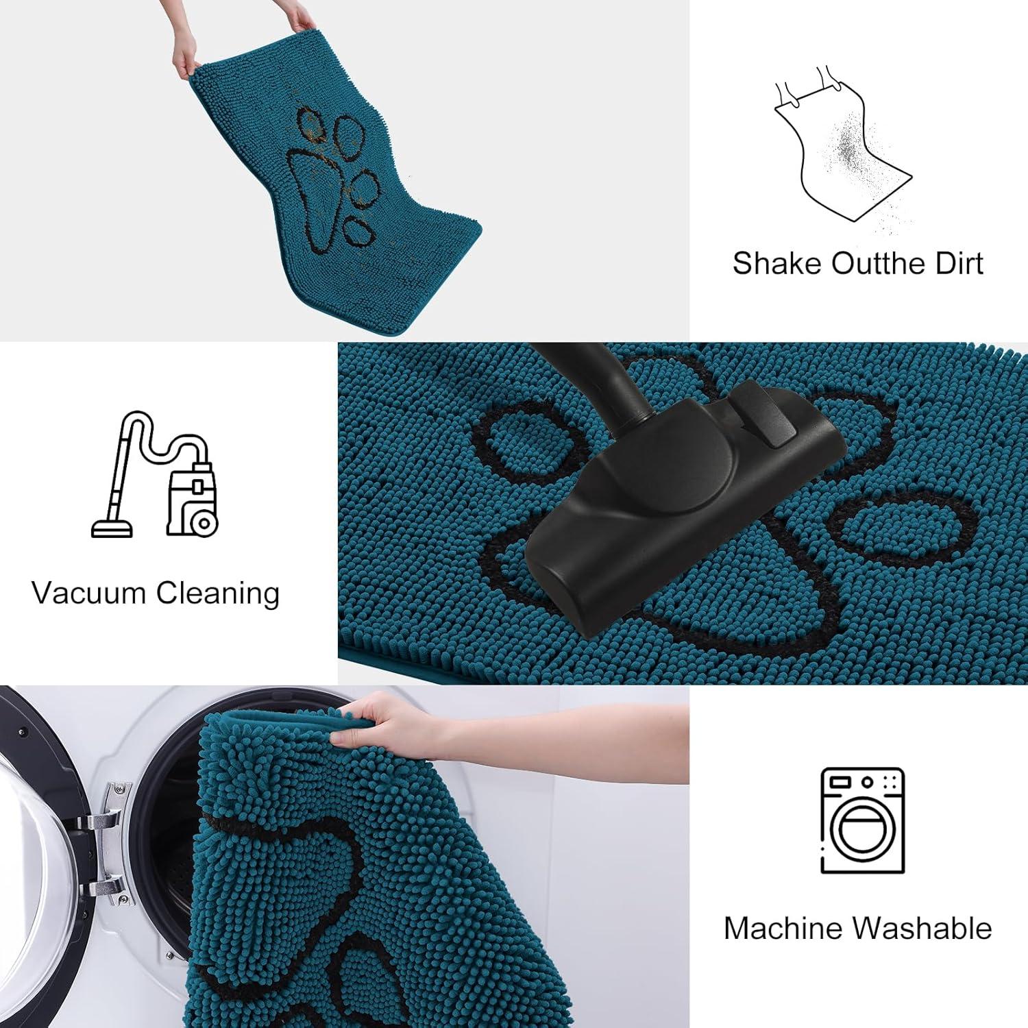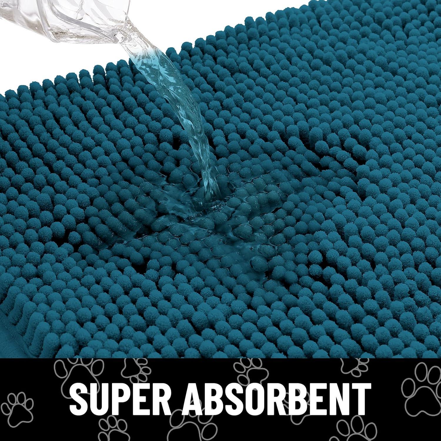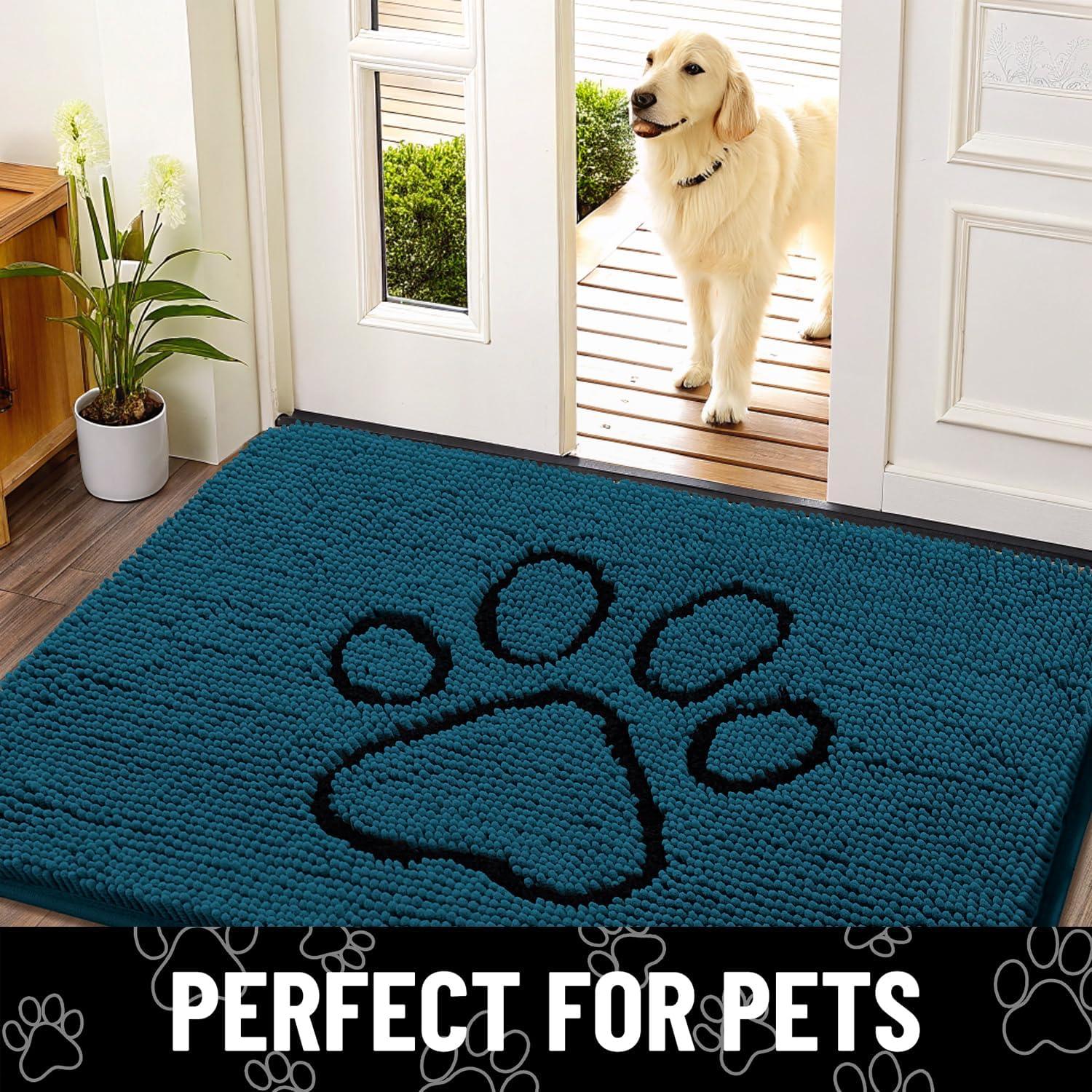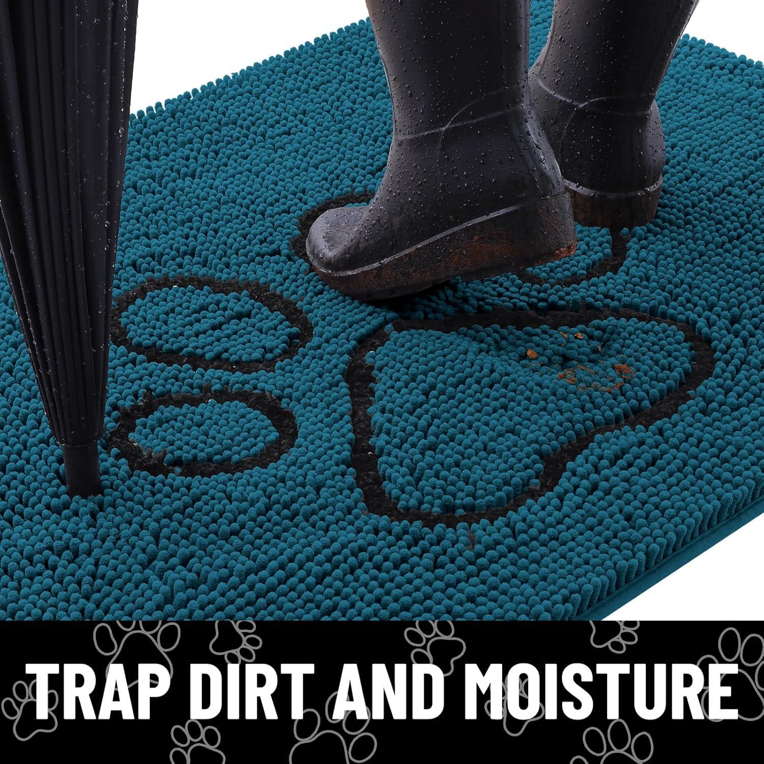 Smiry Dog Door Mat for Muddy Paws, Absorbent Dirt Trapper Non Slip Quick Dry Washable Chenille Mat for Mud Dogs, Entry Rug for Indoor and Outdoor (36x24 Inches, Coffee and Black)(Atlantic Blue and Black)