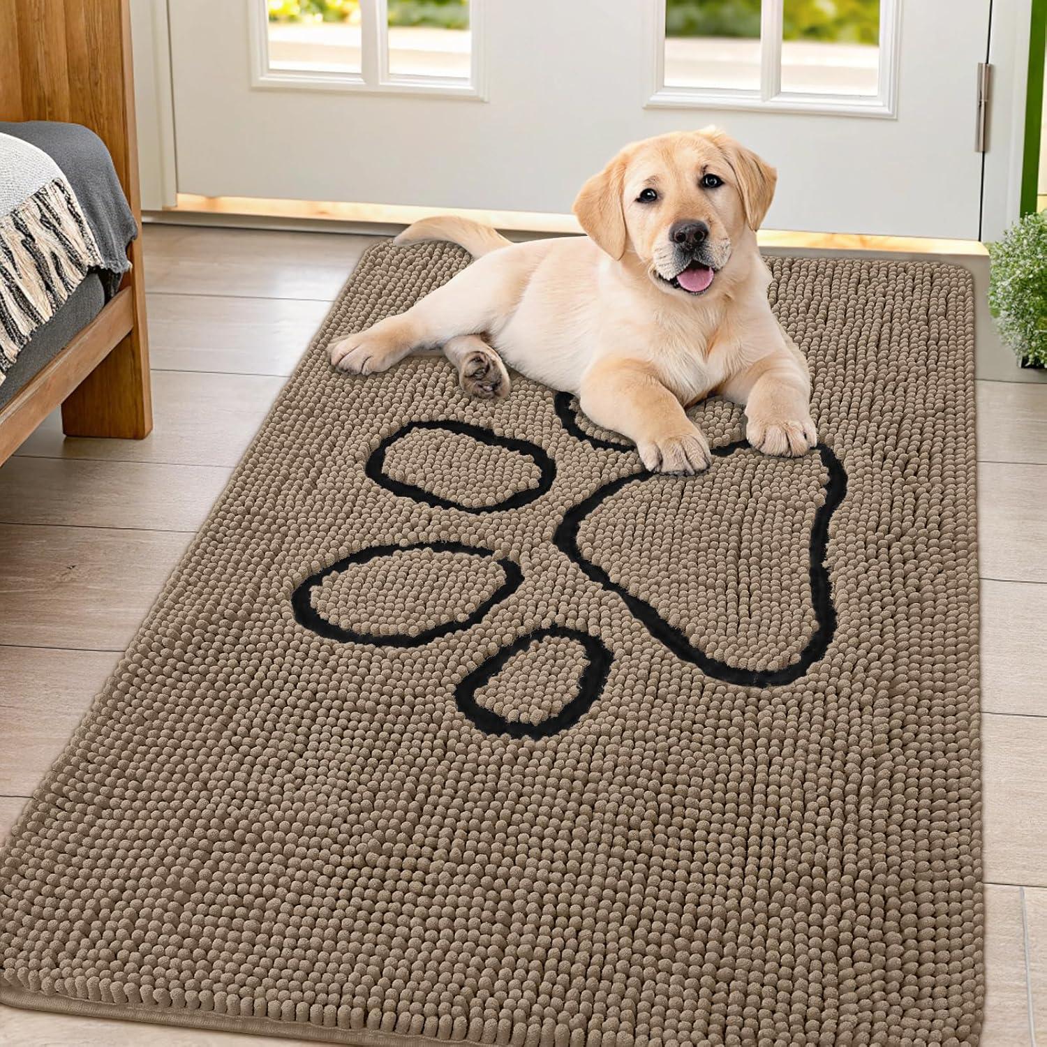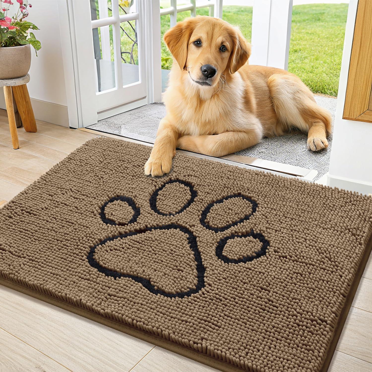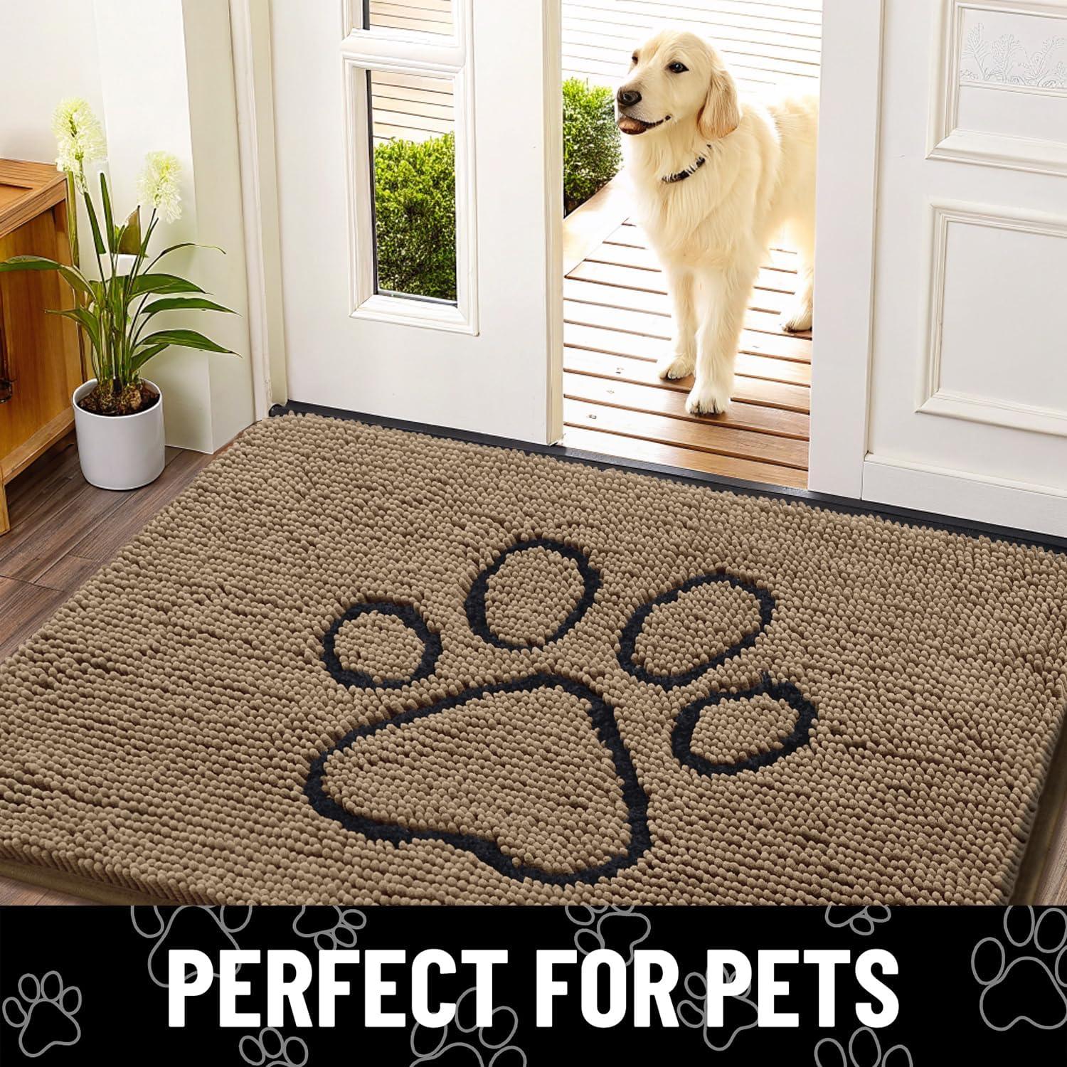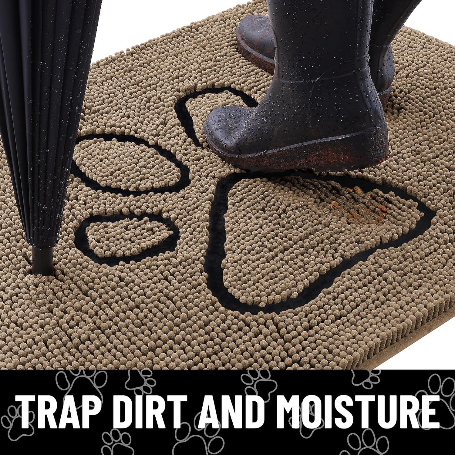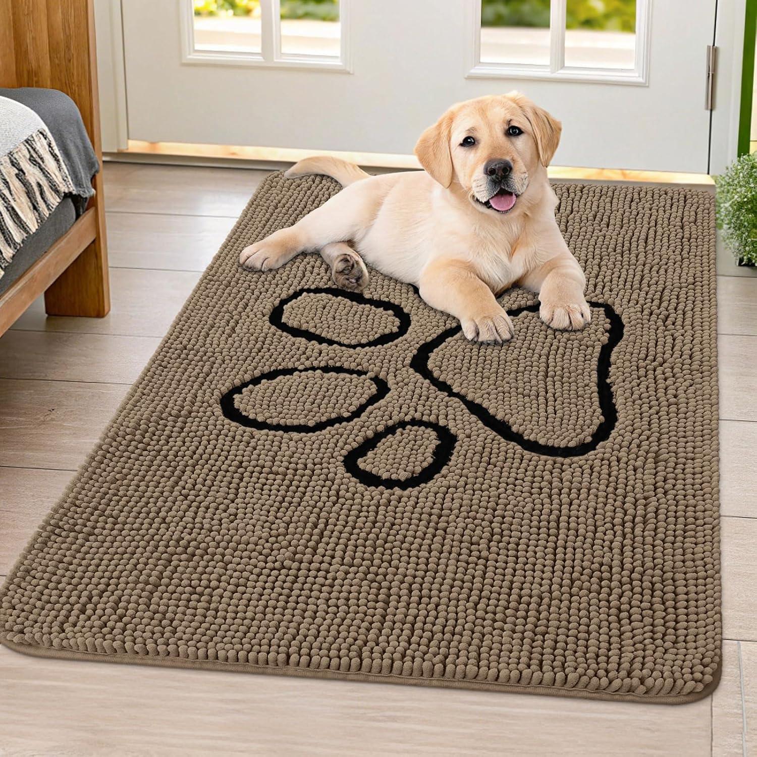 Smiry Dog Door Mat for Muddy Paws, Absorbent Dirt Trapper Non Slip Quick Dry Washable Chenille Mat for Mud Dogs, Entry Rug for Indoor and Outdoor (36x24 Inches, Coffee and Black)(Camel and Black)