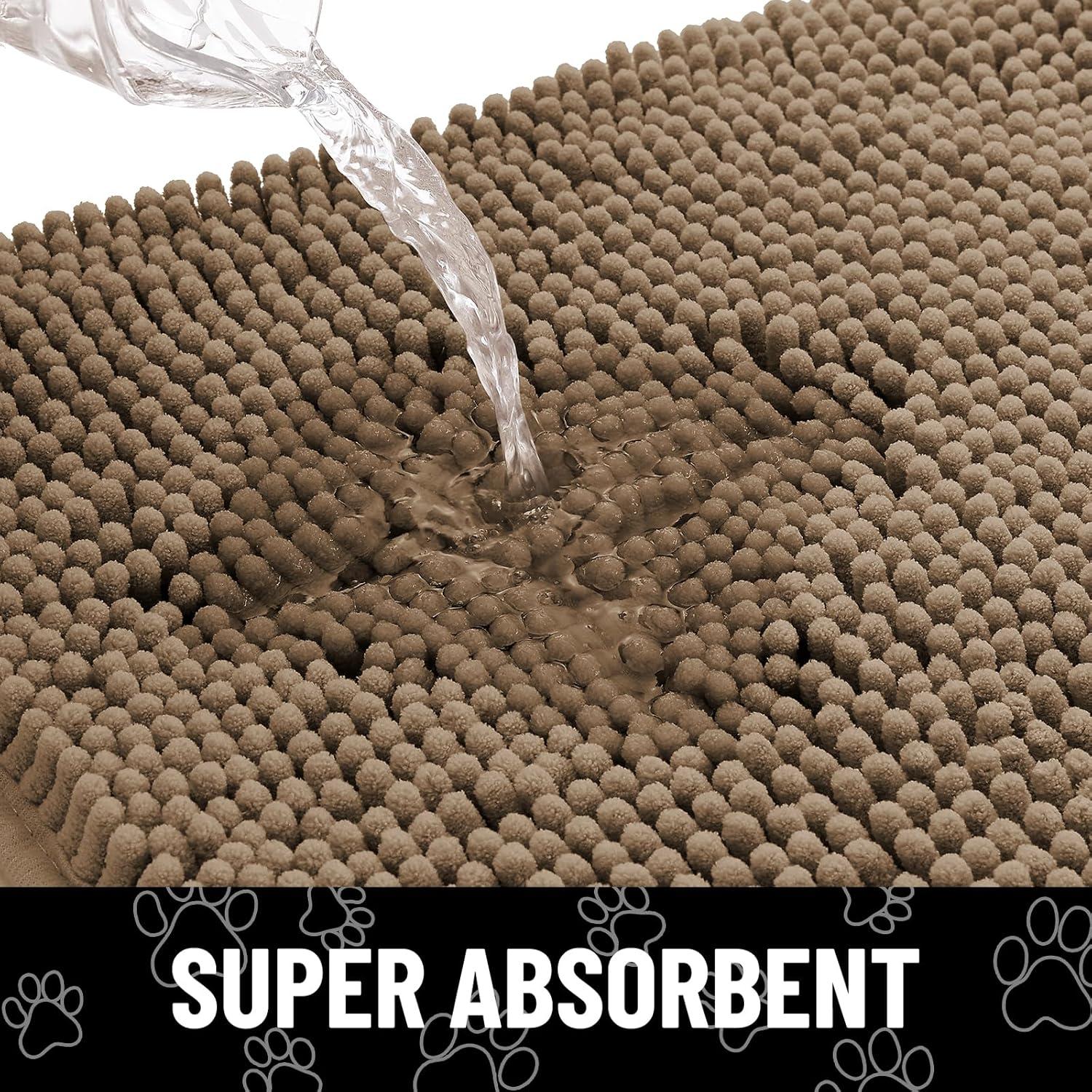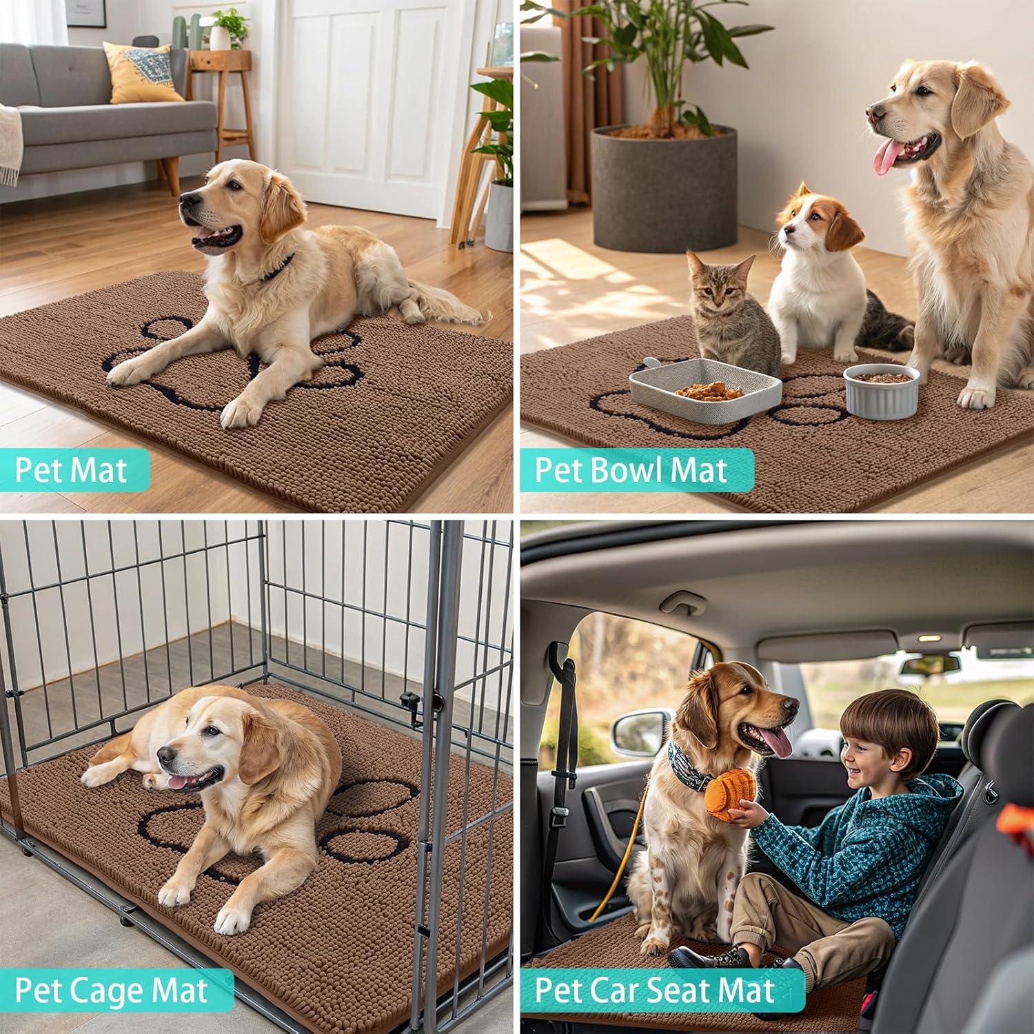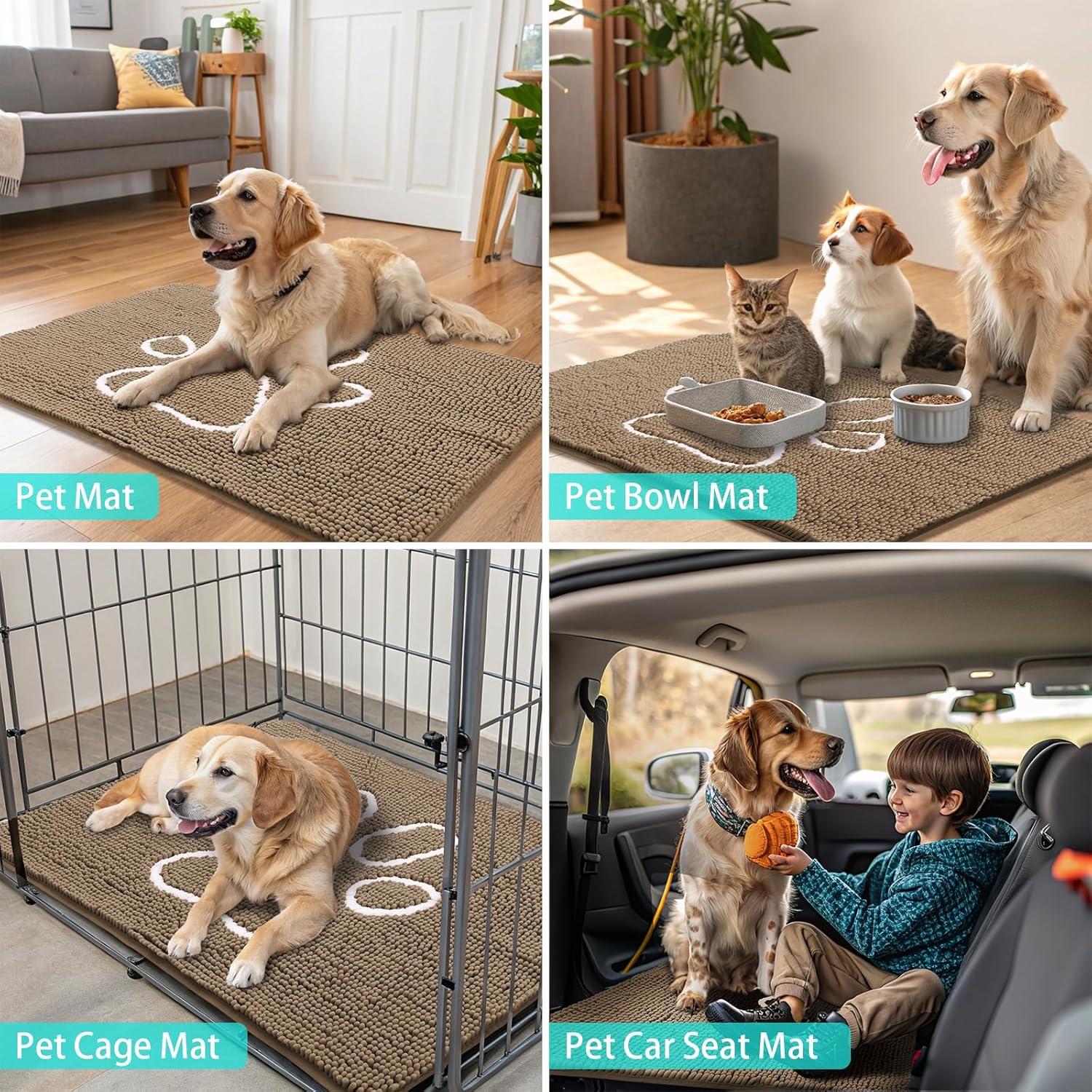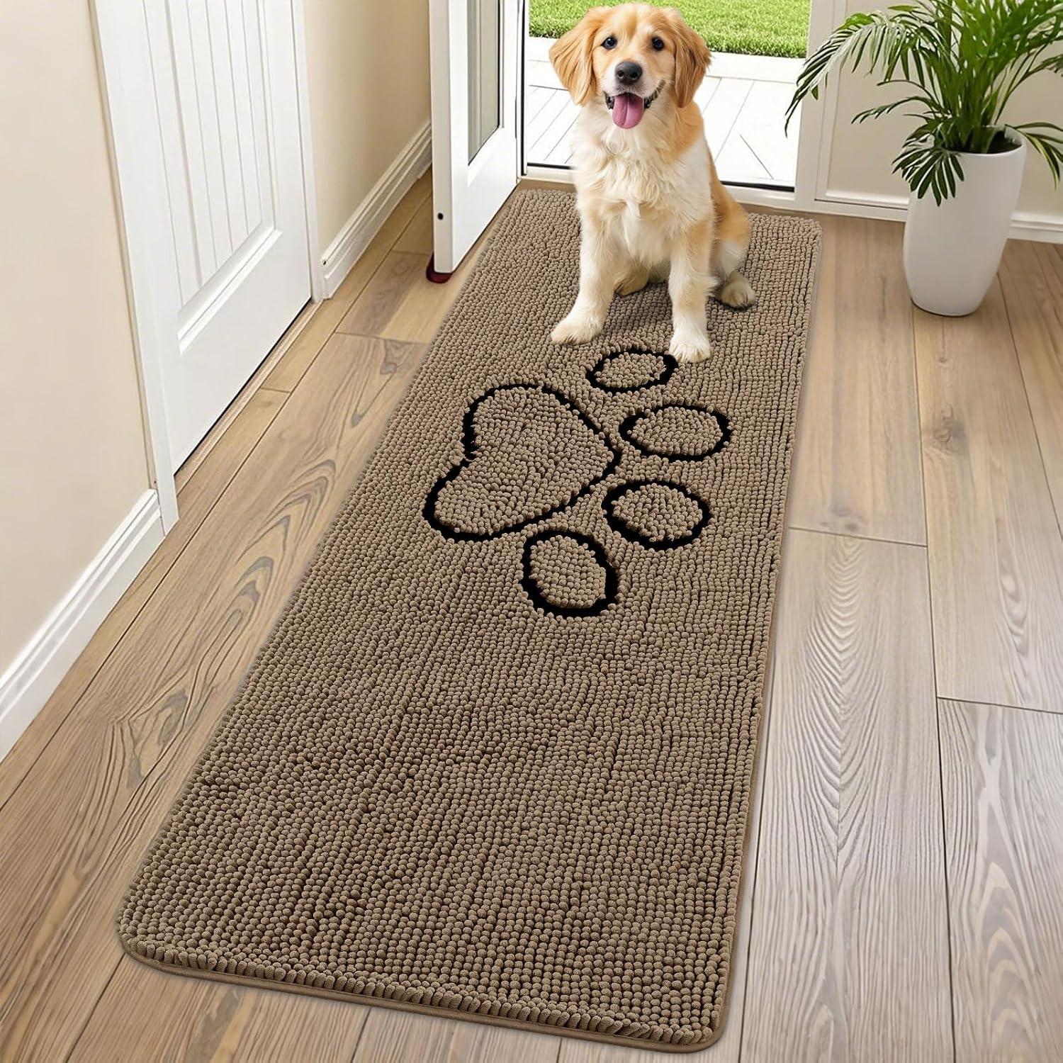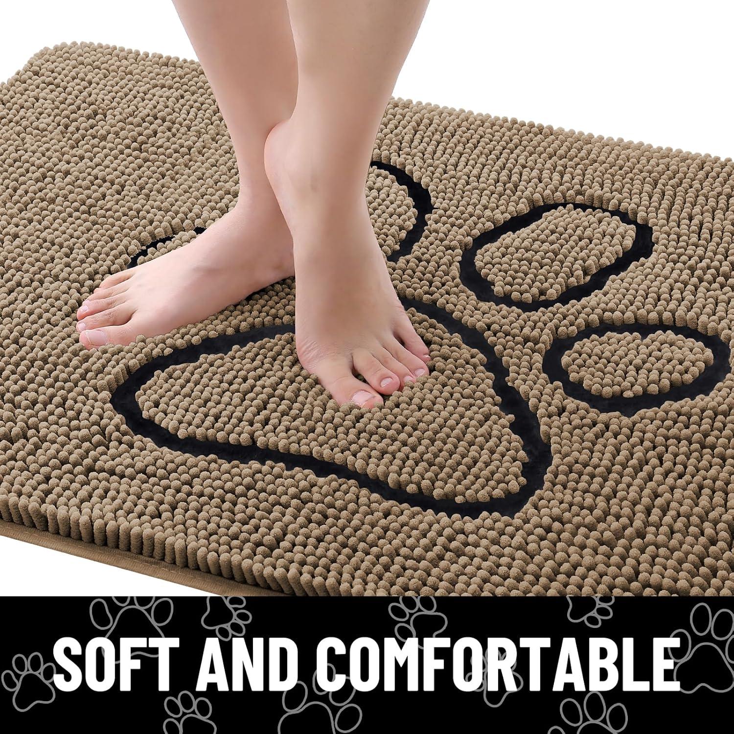 Smiry Dog Door Mat for Muddy Paws, Absorbent Dirt Trapper Non Slip Quick Dry Washable Chenille Mat for Mud Dogs, Entry Rug for Indoor and Outdoor (36x24 Inches, Coffee and Black)(Camel and Black)