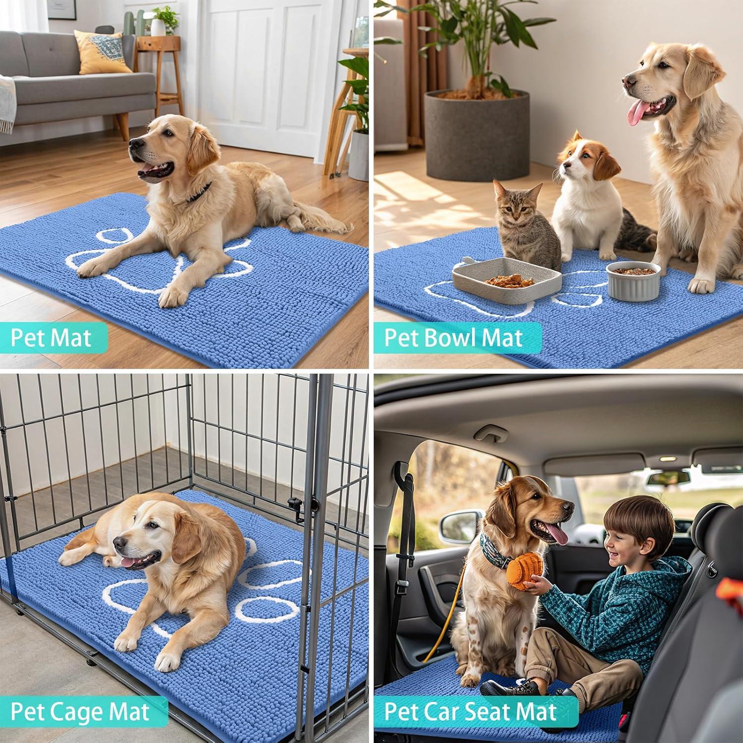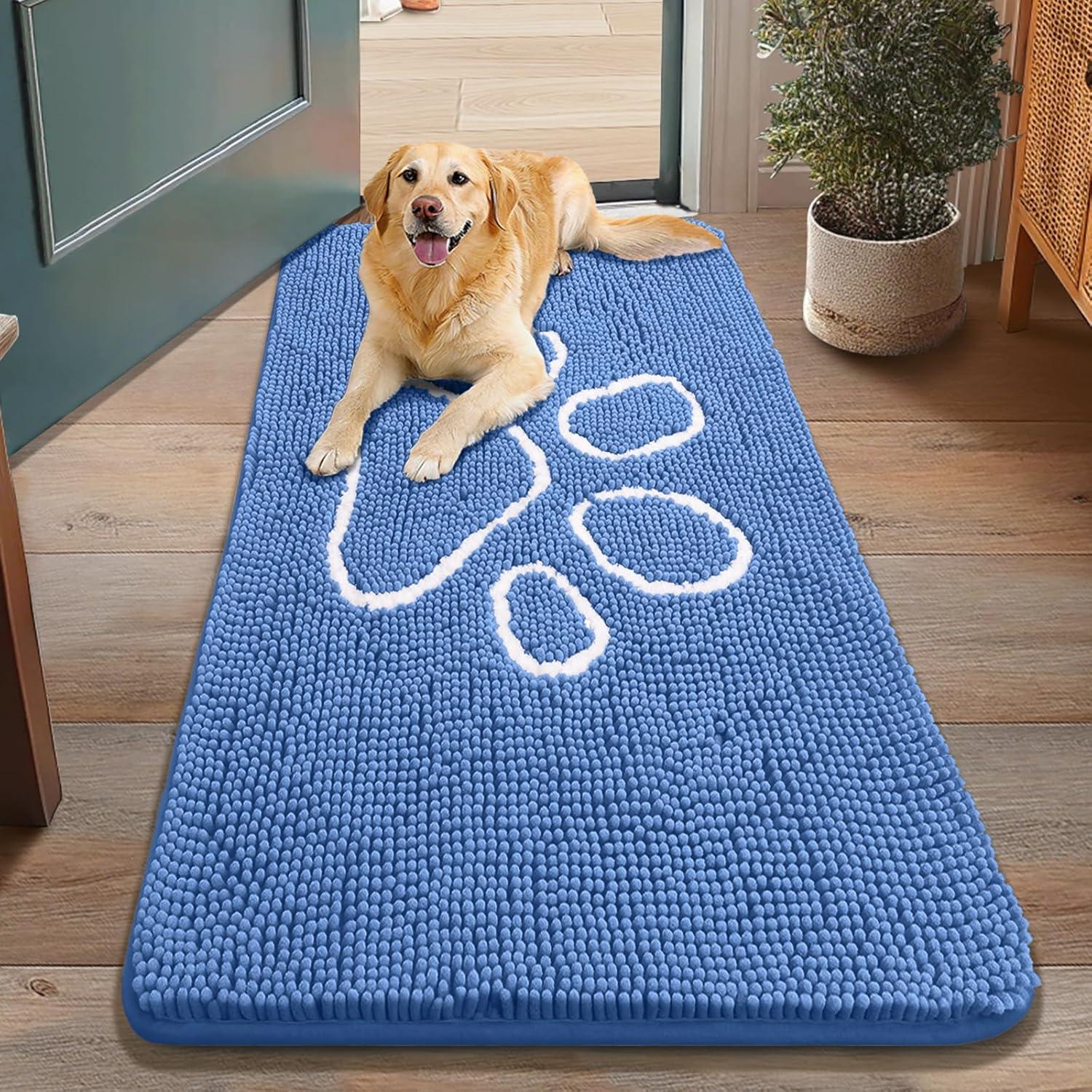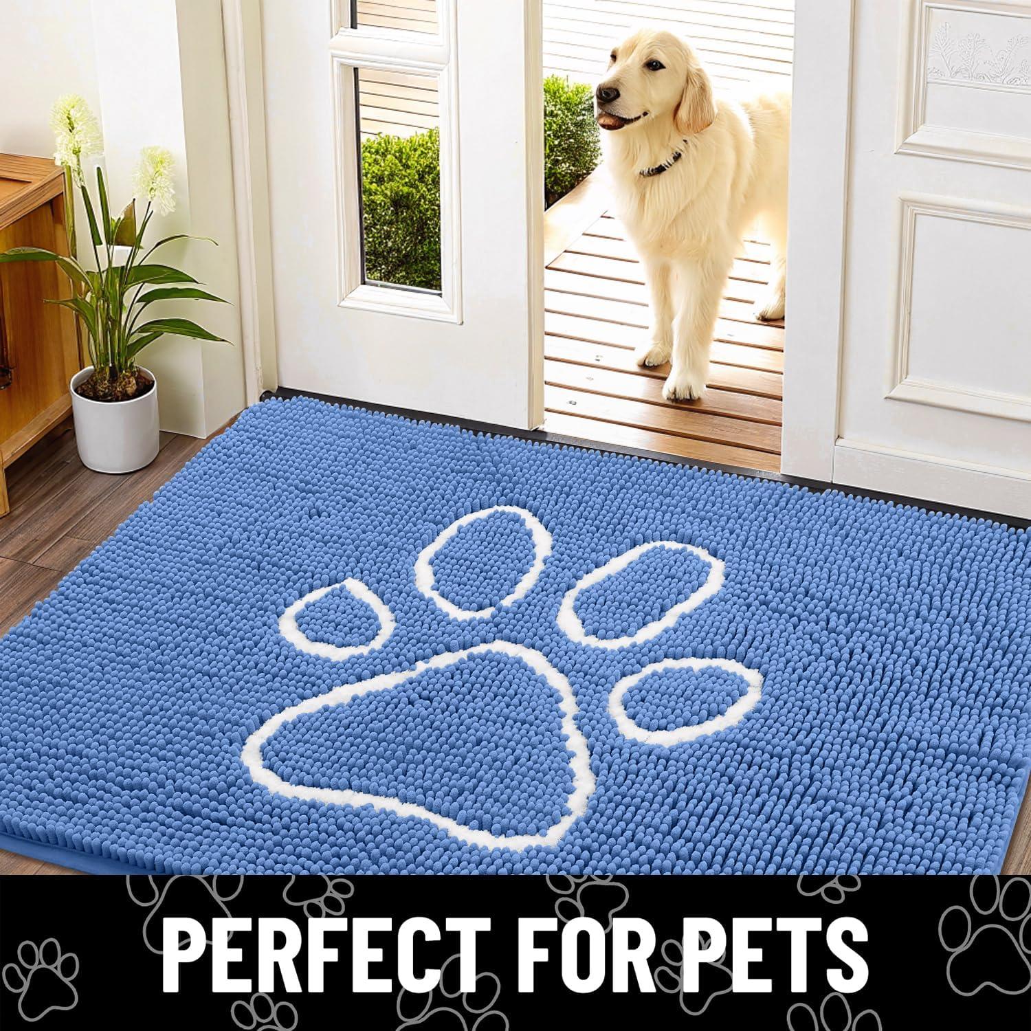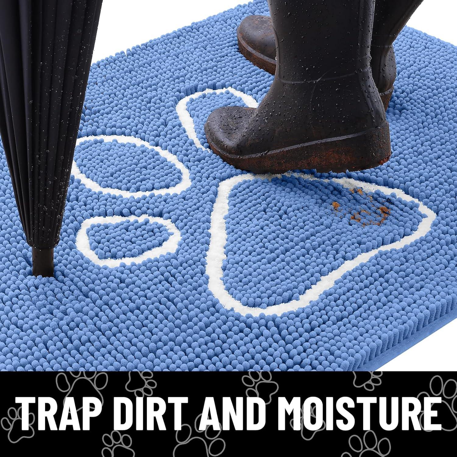 Smiry Dog Door Mat for Muddy Paws, Absorbent Dirt Trapper Non Slip Quick Dry Washable Chenille Mat for Mud Dogs, Entry Rug for Indoor and Outdoor (36×24 Inches, Coffee and Black)(Cornflower Blue and White)