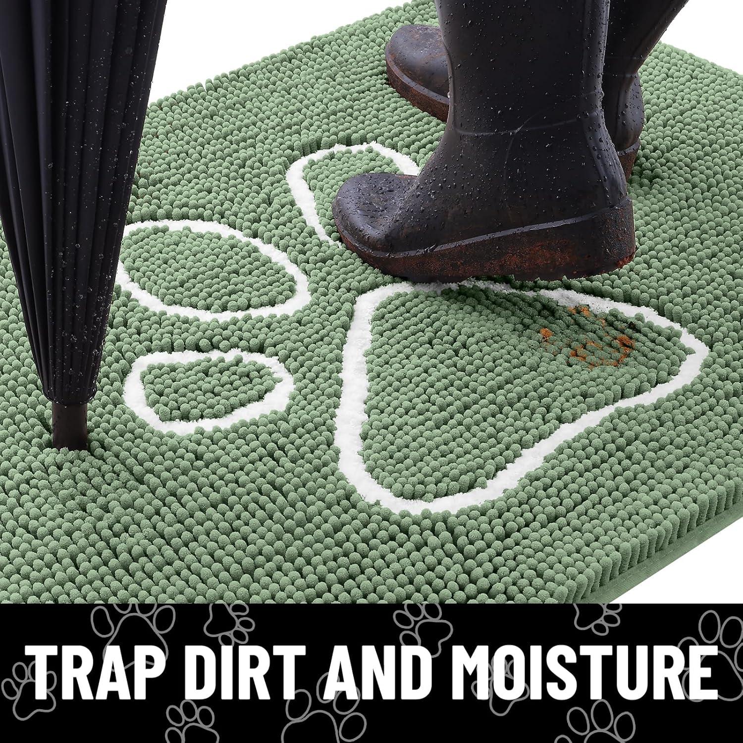 Smiry Dog Door Mat for Muddy Paws, Absorbent Dirt Trapper Non Slip Quick Dry Washable Chenille Mat for Mud Dogs, Entry Rug for Indoor and Outdoor (36x24 Inches, Coffee and Black)(Olive Green and White)