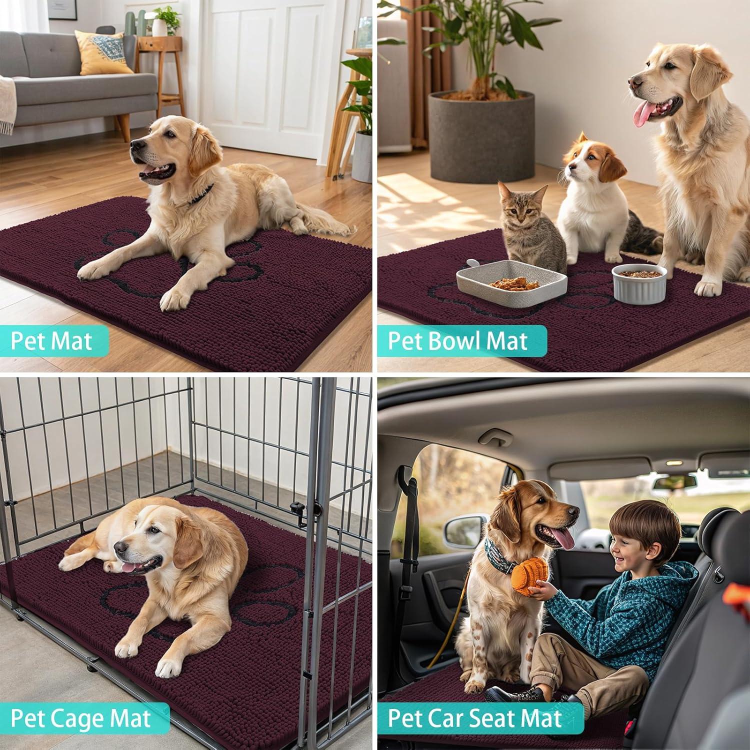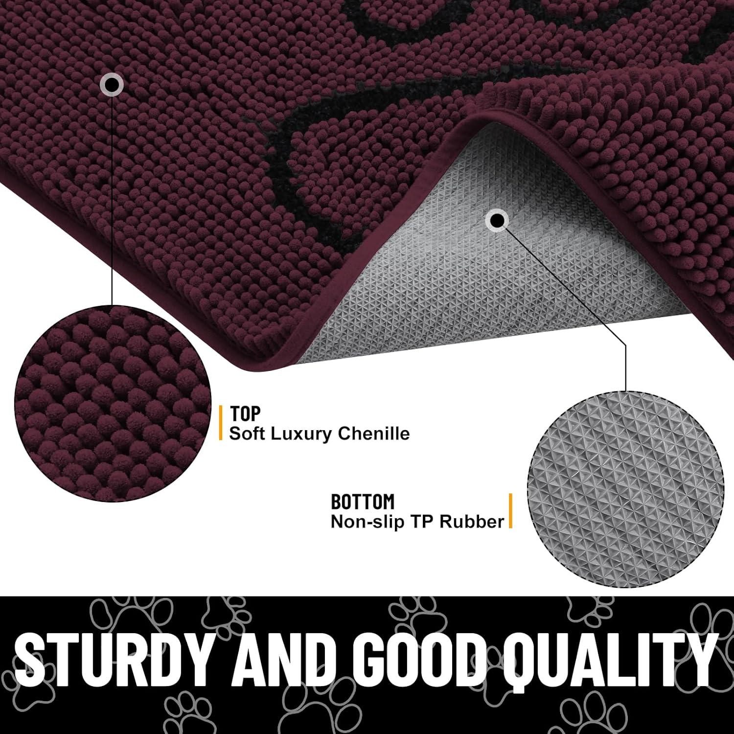 [Non-Slip Textured Rubber Base] Our mud mat for dog paws comes with a sturdy, textured rubber backing that keeps it from moving and sliding. To Pay attention to any slipping, it's important to avoid placing the mat on a damp surface and to ensure that the floors beneath the mat are completely dry.