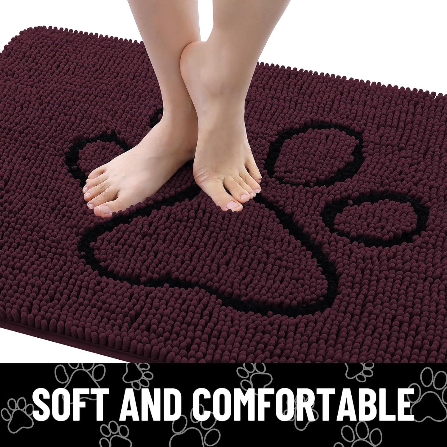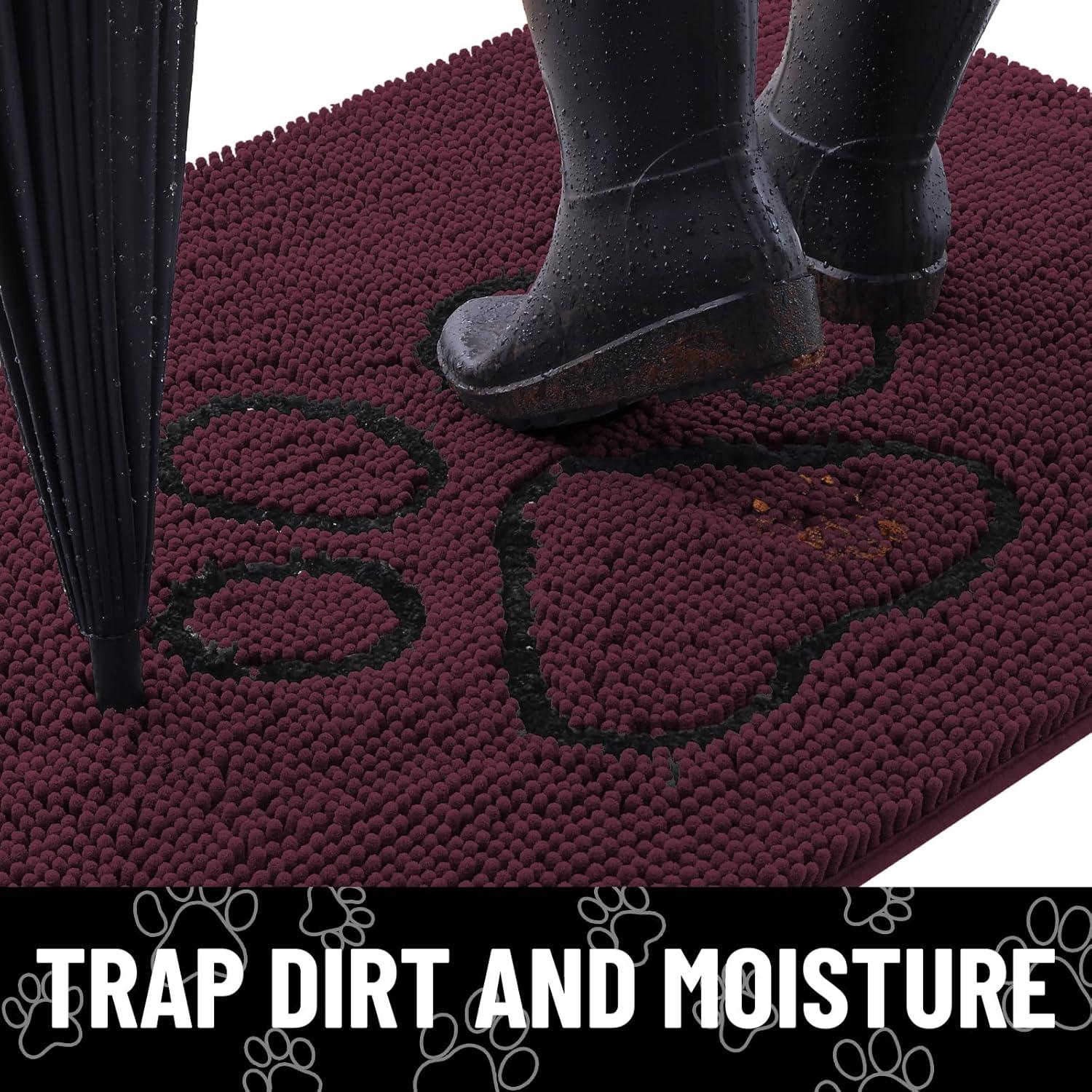 Smiry Dog Door Mat for Muddy Paws, Absorbent Dirt Trapper Non Slip Quick Dry Washable Chenille Mat for Mud Dogs, Entry Rug for Indoor and Outdoor (36×24 Inches, Coffee and Black)(Russet and Black)