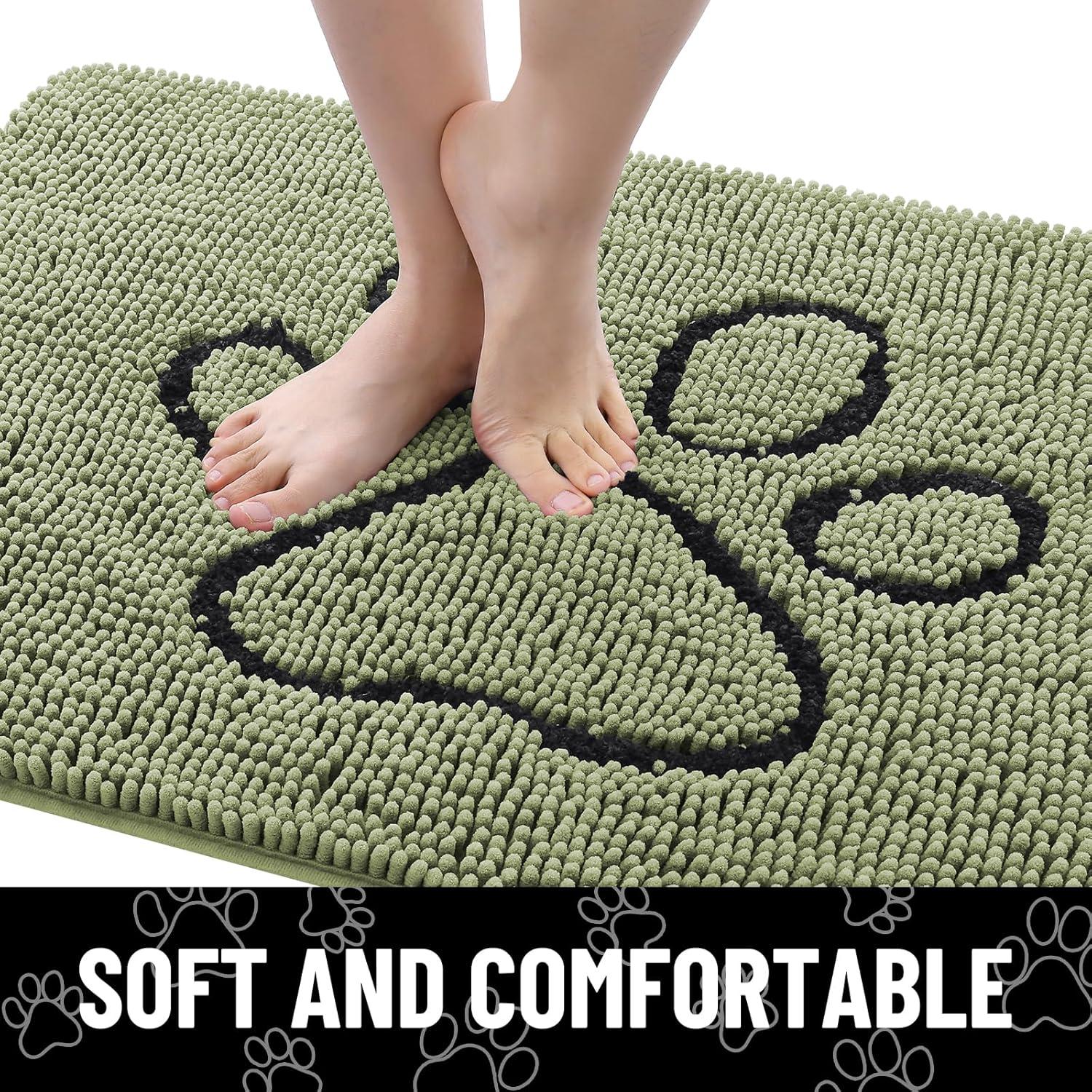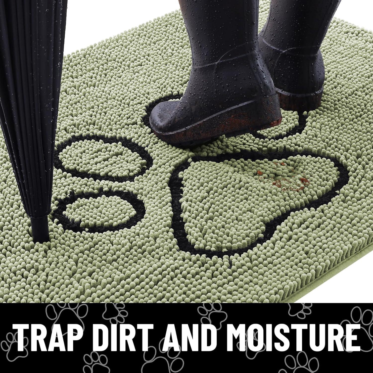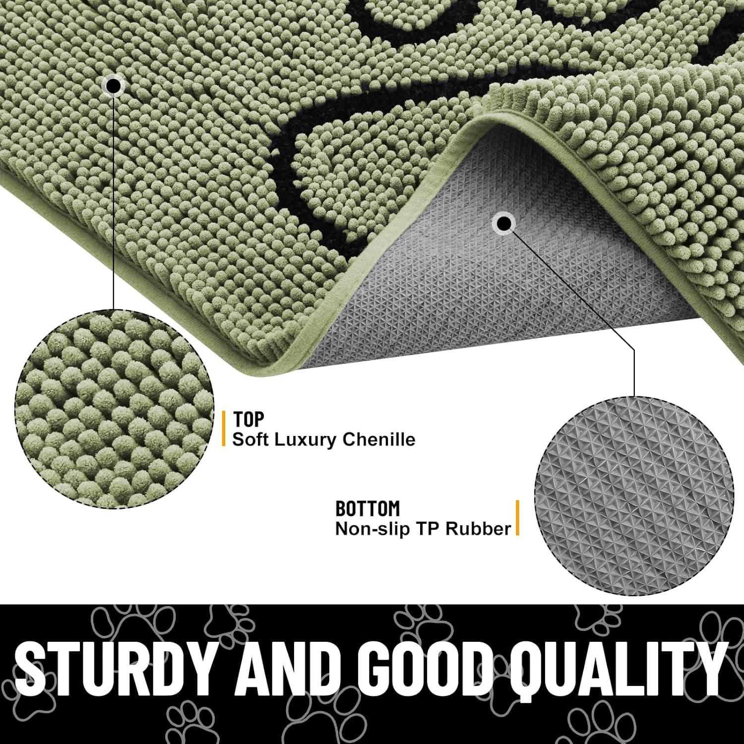 Smiry Dog Door Mat for Muddy Paws, Absorbent Dirt Trapper Non Slip Quick Dry Washable Chenille Mat for Mud Dogs, Entry Rug for Indoor and Outdoor (36×24 Inches, Coffee and Black)(Sage Green and White)