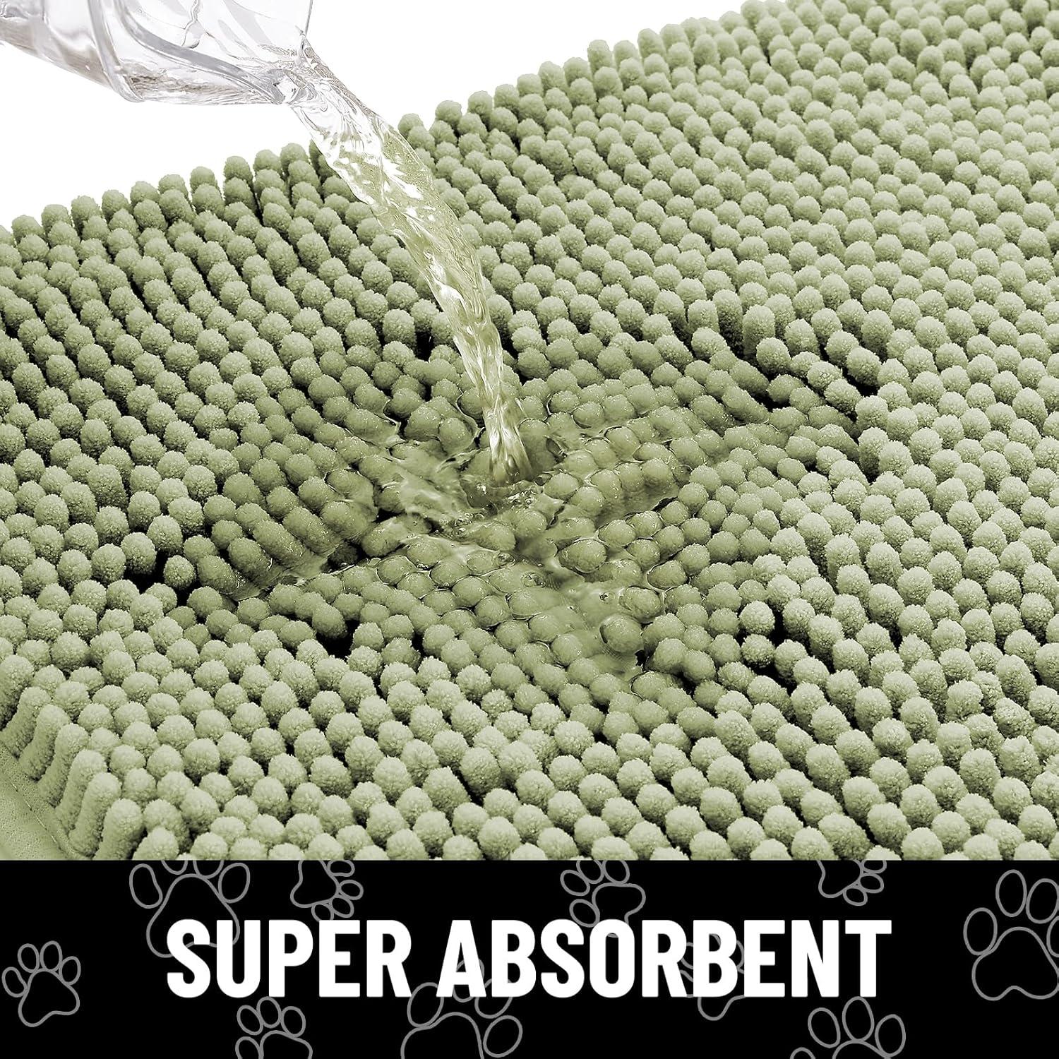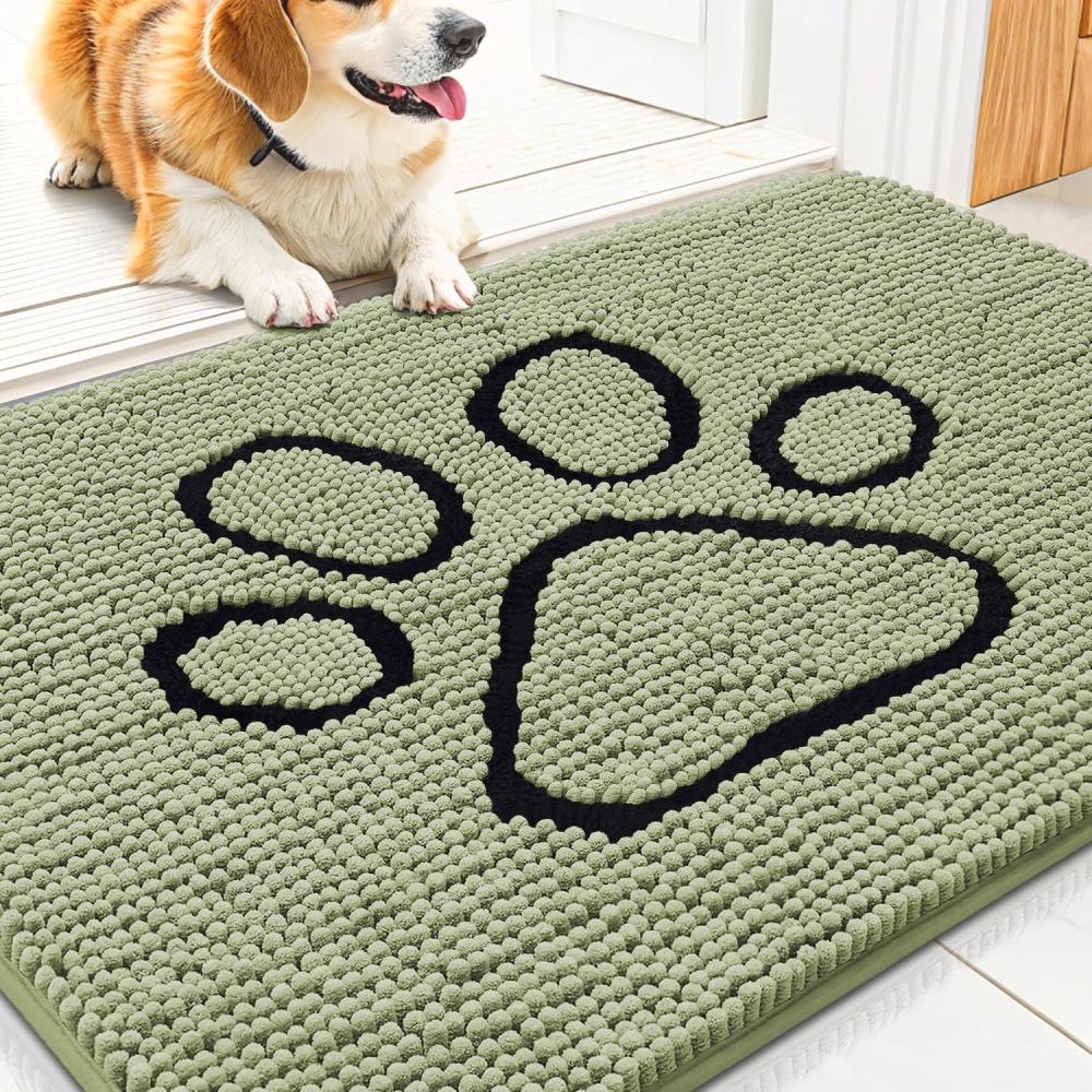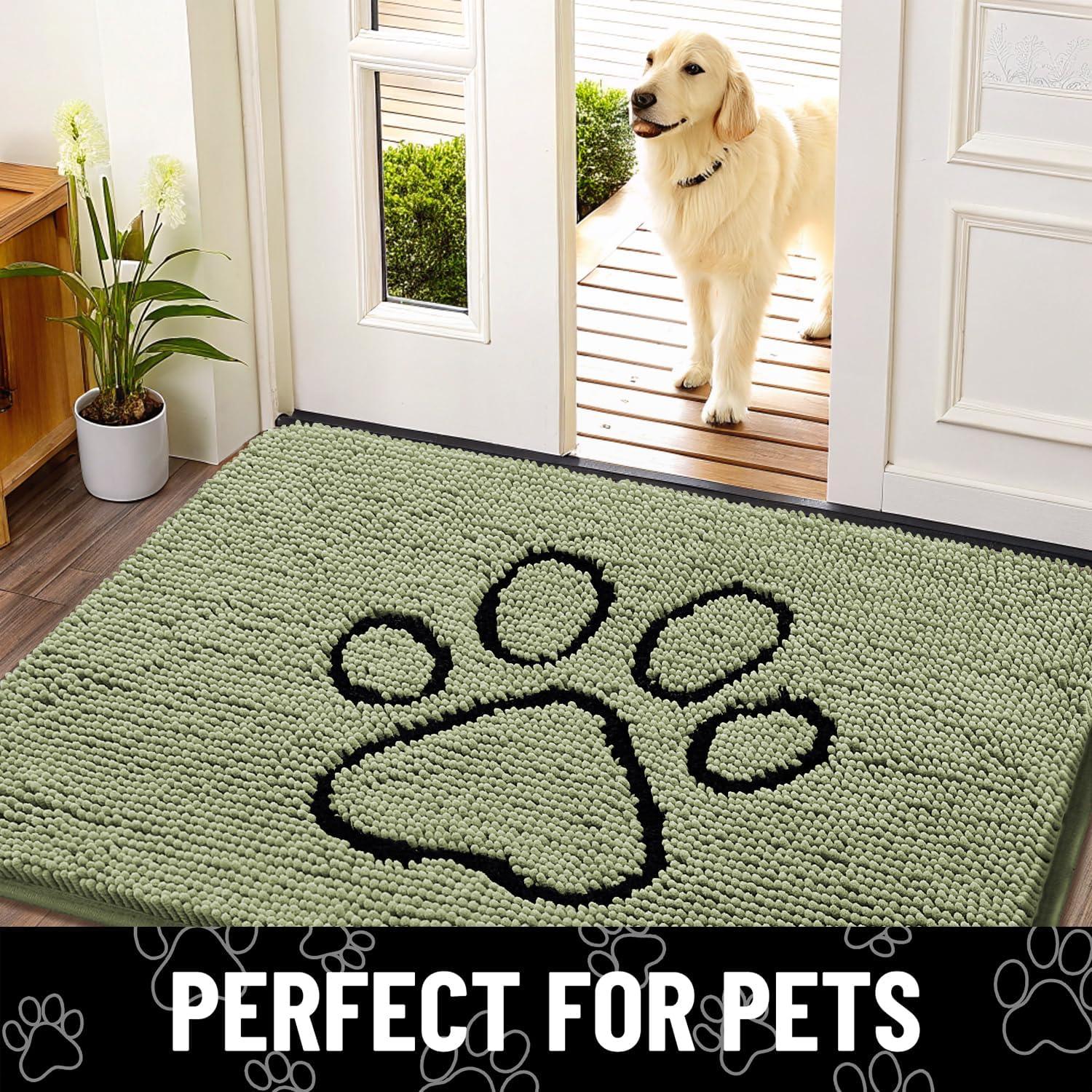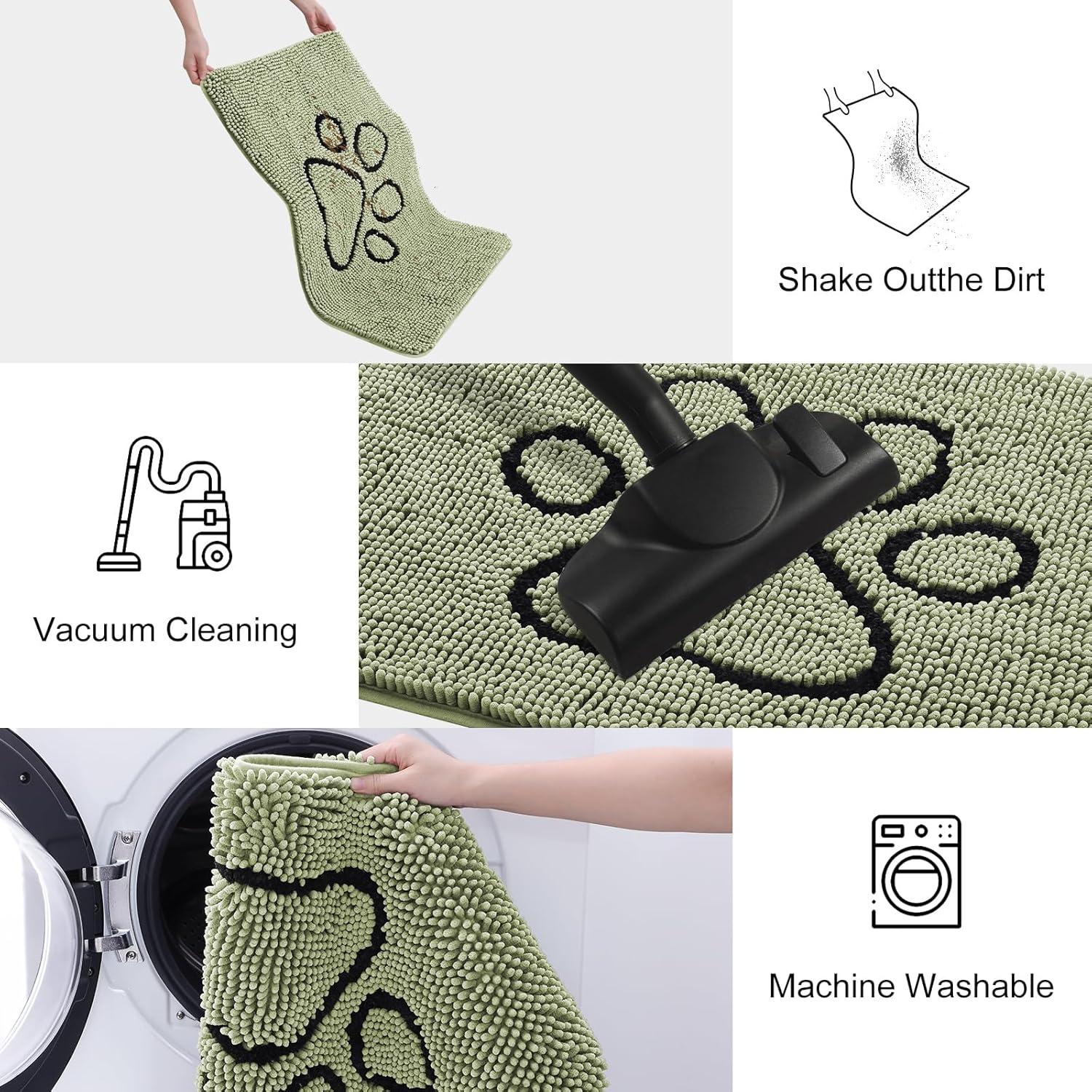 Smiry Dog Door Mat for Muddy Paws, Absorbent Dirt Trapper Non Slip Quick Dry Washable Chenille Mat for Mud Dogs, Entry Rug for Indoor and Outdoor (36×24 Inches, Coffee and Black)(Sage Green and White)