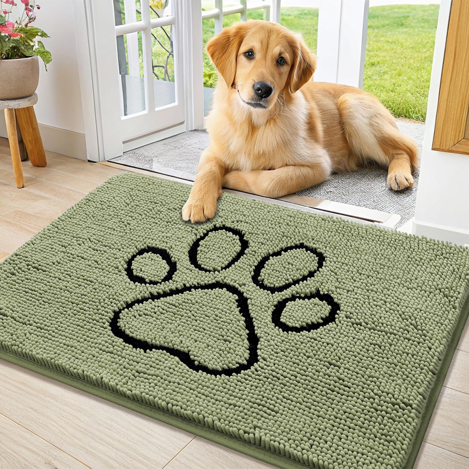 Smiry Dog Door Mat for Muddy Paws, Absorbent Dirt Trapper Non Slip Quick Dry Washable Chenille Mat for Mud Dogs, Entry Rug for Indoor and Outdoor (36x24 Inches, Coffee and Black)(Sage Green and Black)