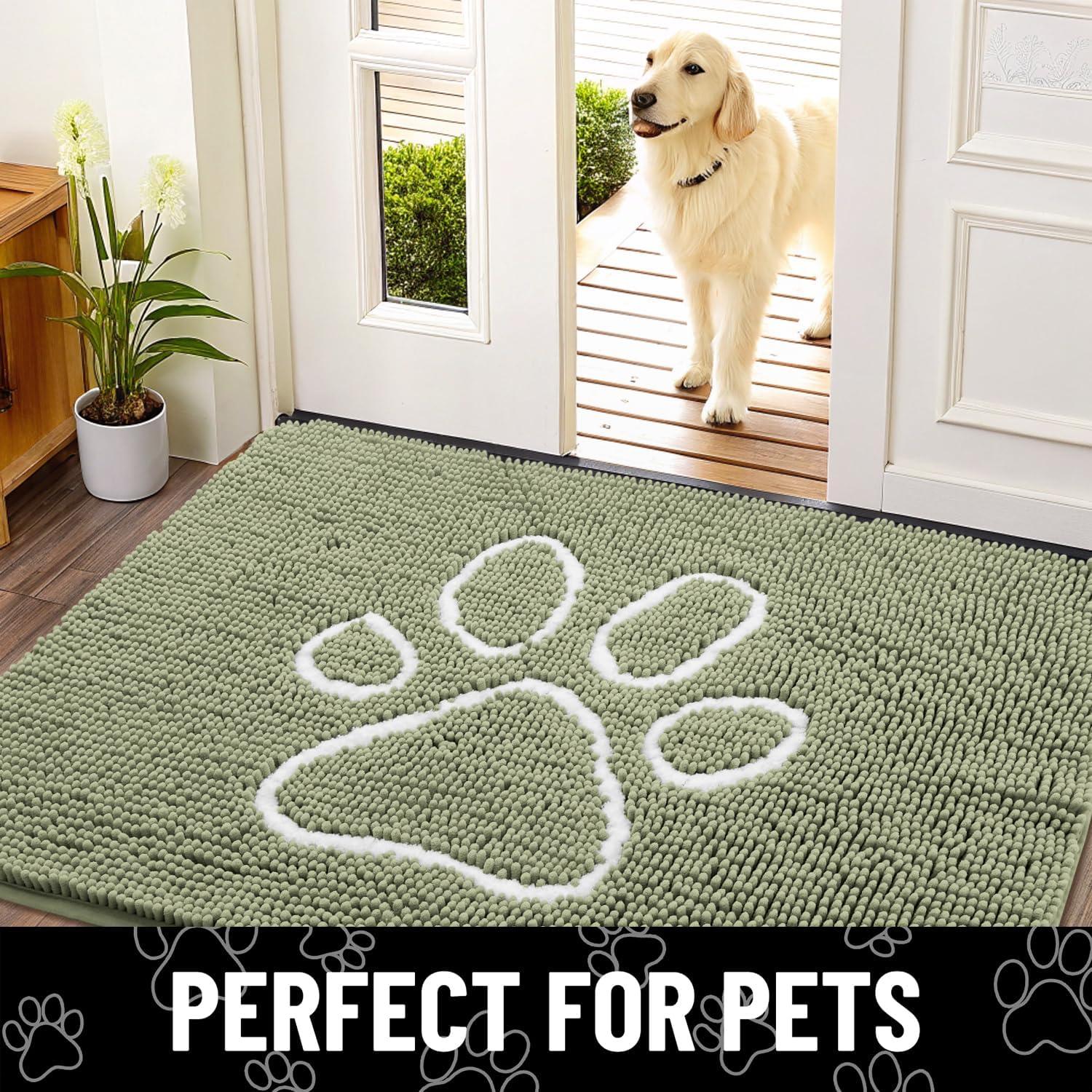 Smiry Dog Door Mat for Muddy Paws, Absorbent Dirt Trapper Non Slip Quick Dry Washable Chenille Mat for Mud Dogs, Entry Rug for Indoor and Outdoor (36×24 Inches, Coffee and Black)(Sage Green and White)