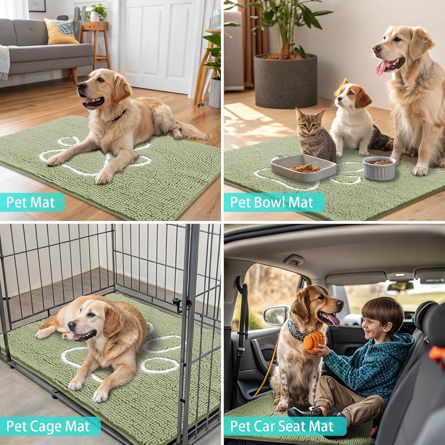 Smiry Dog Door Mat for Muddy Paws, Absorbent Dirt Trapper Non Slip Quick Dry Washable Chenille Mat for Mud Dogs, Entry Rug for Indoor and Outdoor (36x24 Inches, Coffee and Black)(Sage Green and White)