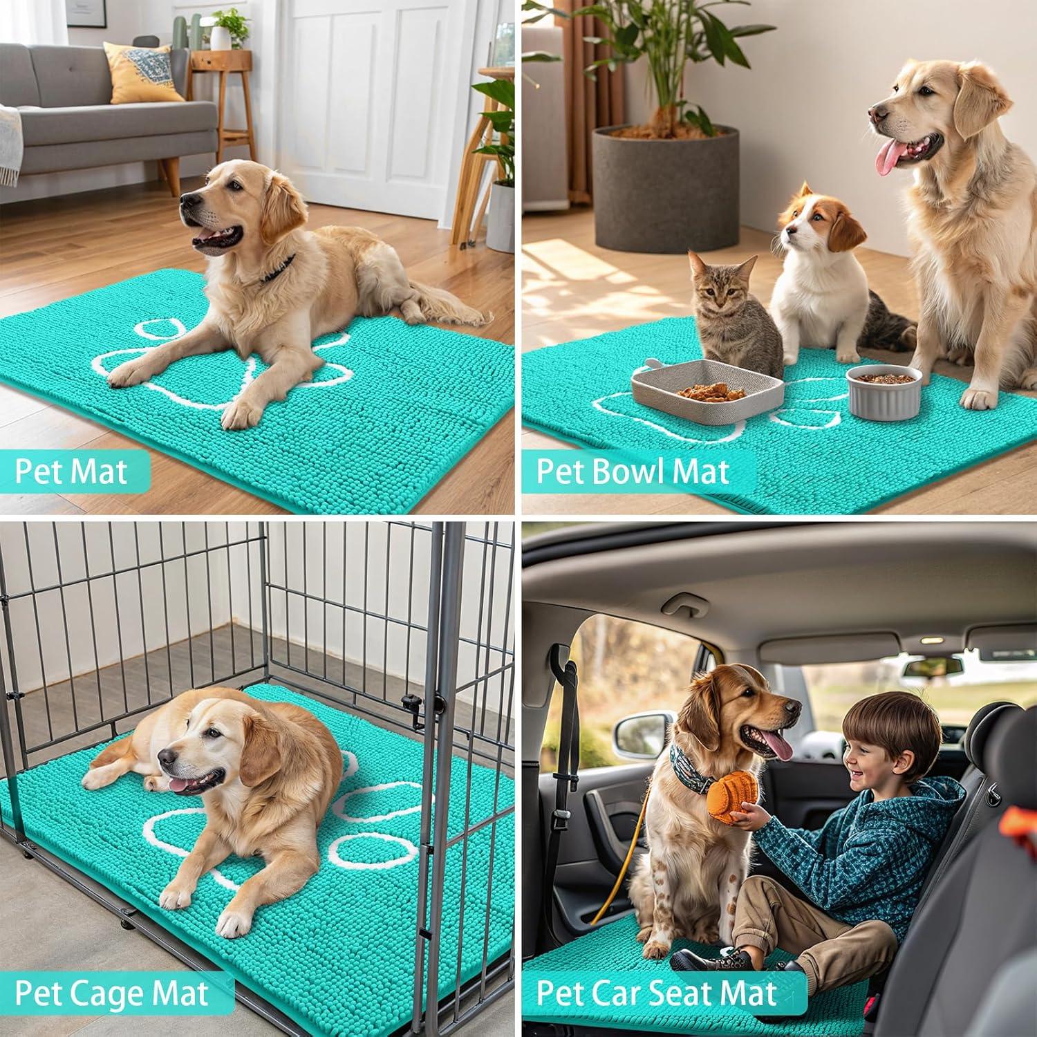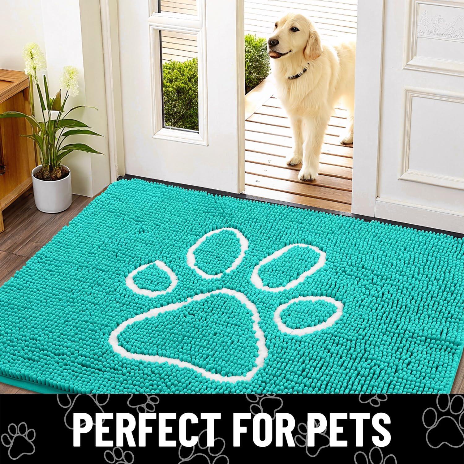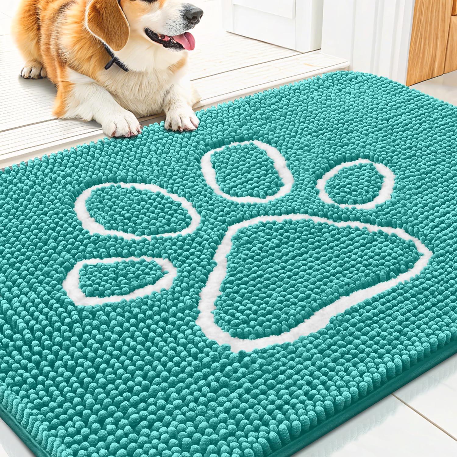 Smiry Dog Door Mat for Muddy Paws, Absorbent Dirt Trapper Non Slip Quick Dry Washable Chenille Mat for Mud Dogs, Entry Rug for Indoor and Outdoor (36×24 Inches, Coffee and Black)(Turquoise and White)