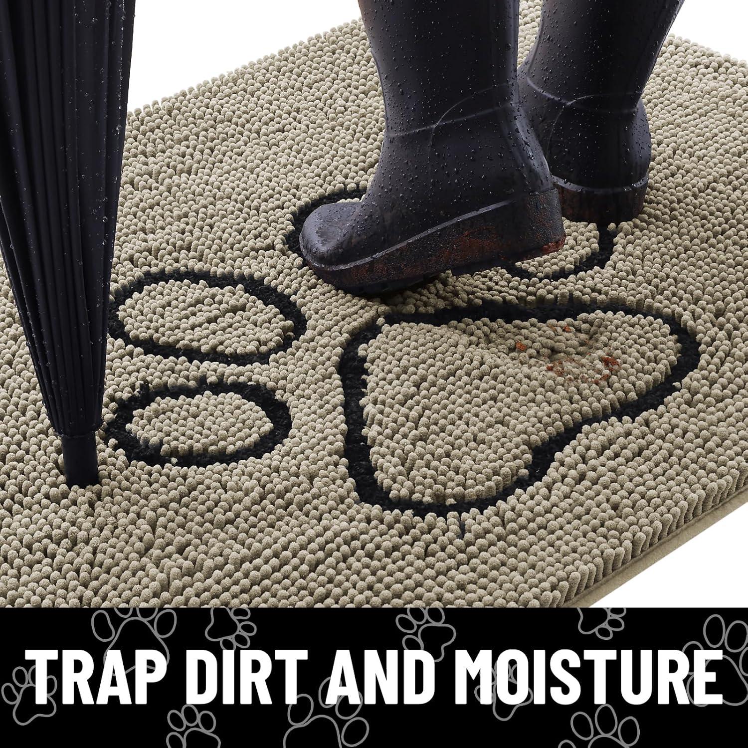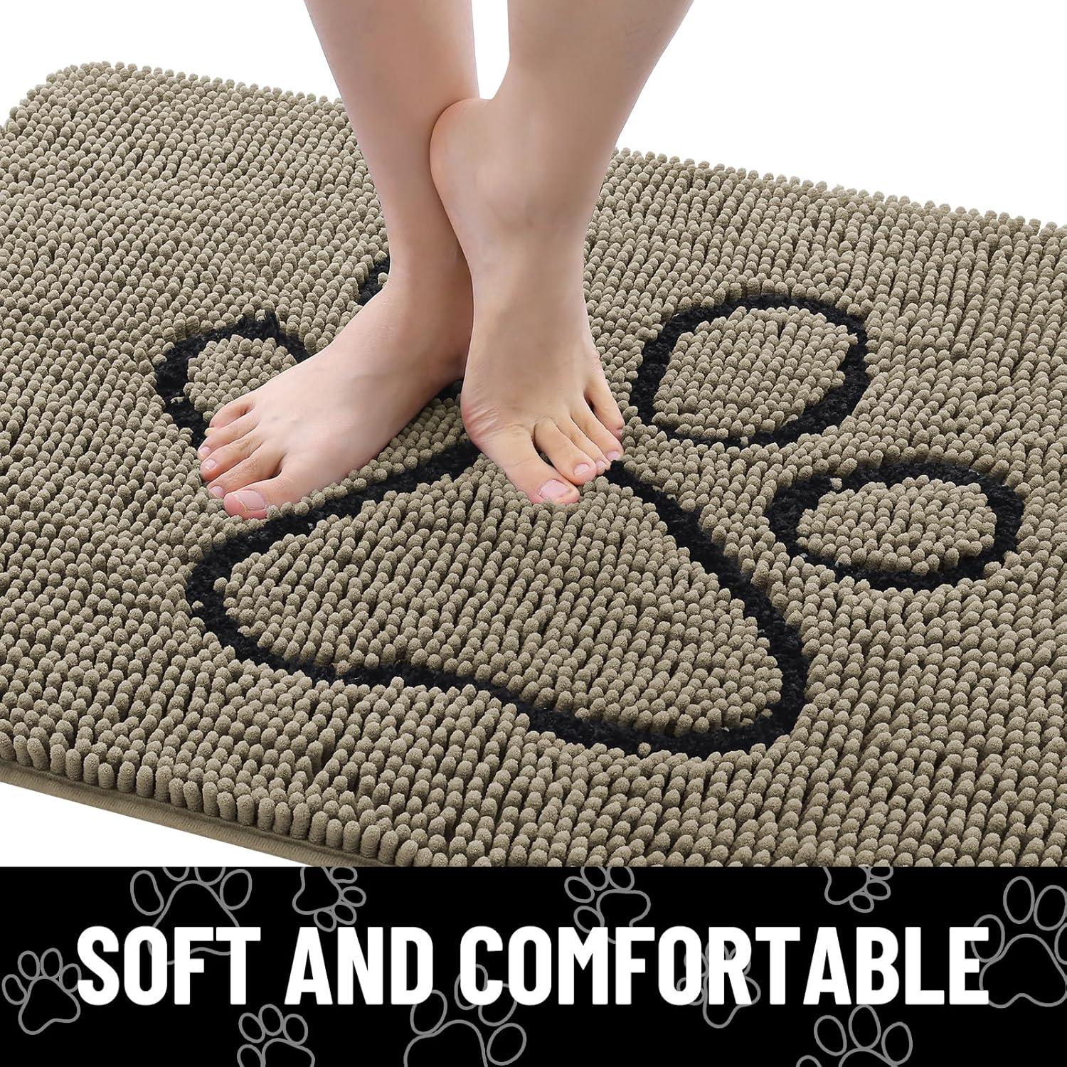 Smiry Dog Door Mat for Muddy Paws, Absorbent Dirt Trapper Non Slip Quick Dry Washable Chenille Mat for Mud Dogs, Entry Rug for Indoor and Outdoor (36x24 Inches, Coffee and Black)(Warm Taupe and Black)