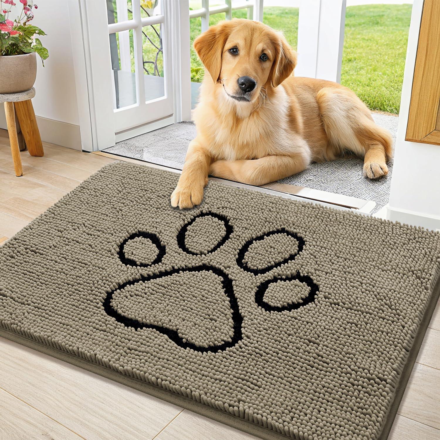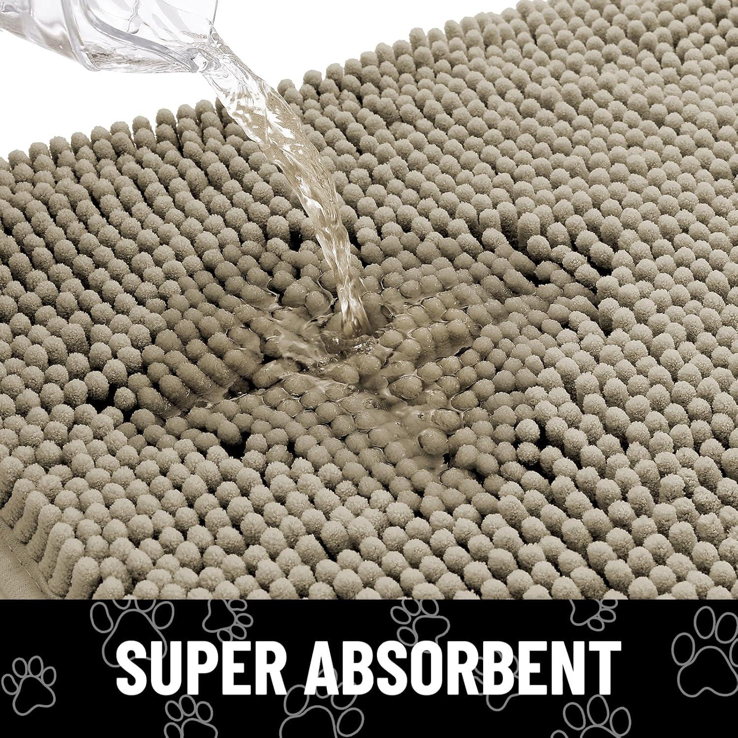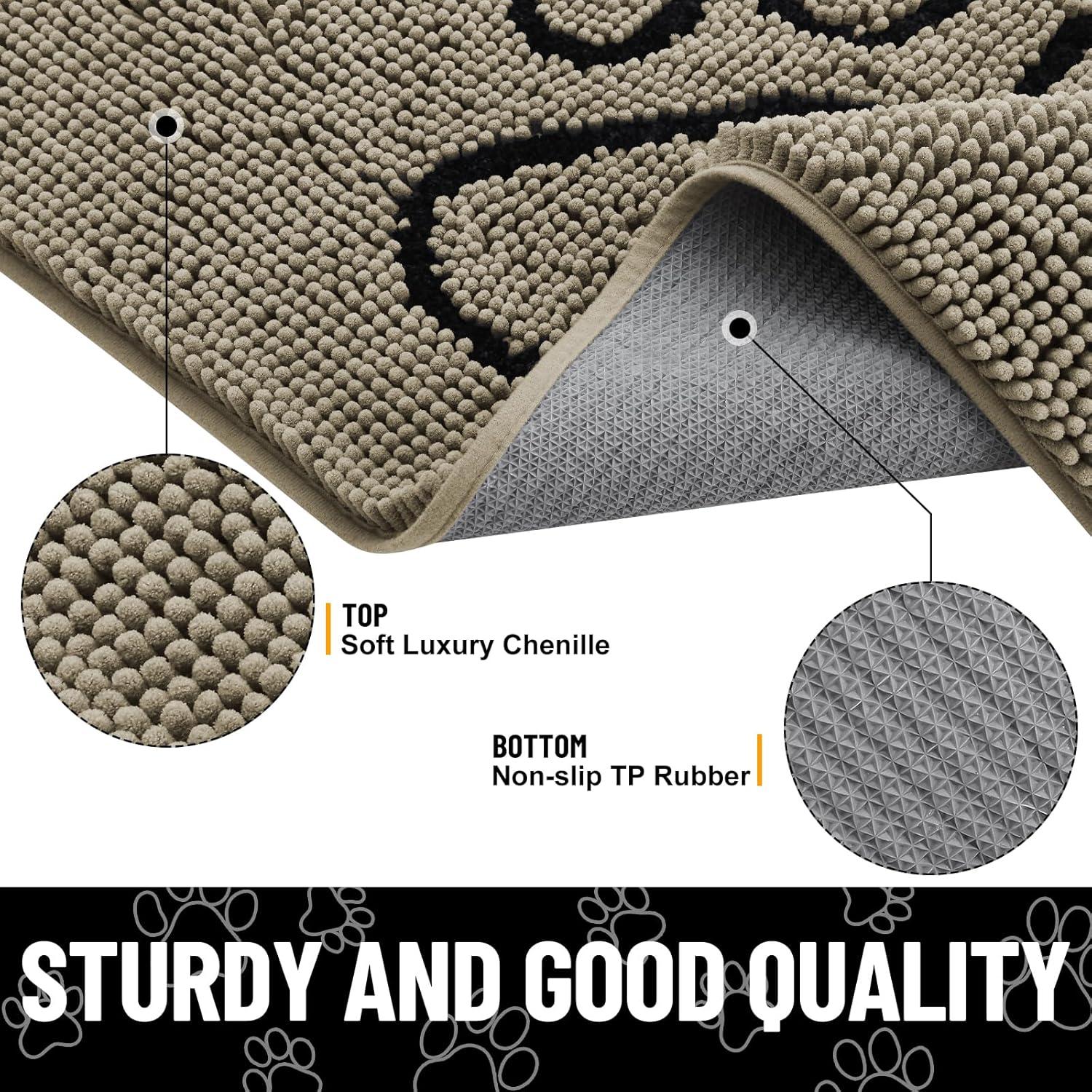 Smiry Dog Door Mat for Muddy Paws, Absorbent Dirt Trapper Non Slip Quick Dry Washable Chenille Mat for Mud Dogs, Entry Rug for Indoor and Outdoor (36×24 Inches, Coffee and Black)(Warm Taupe and Black)