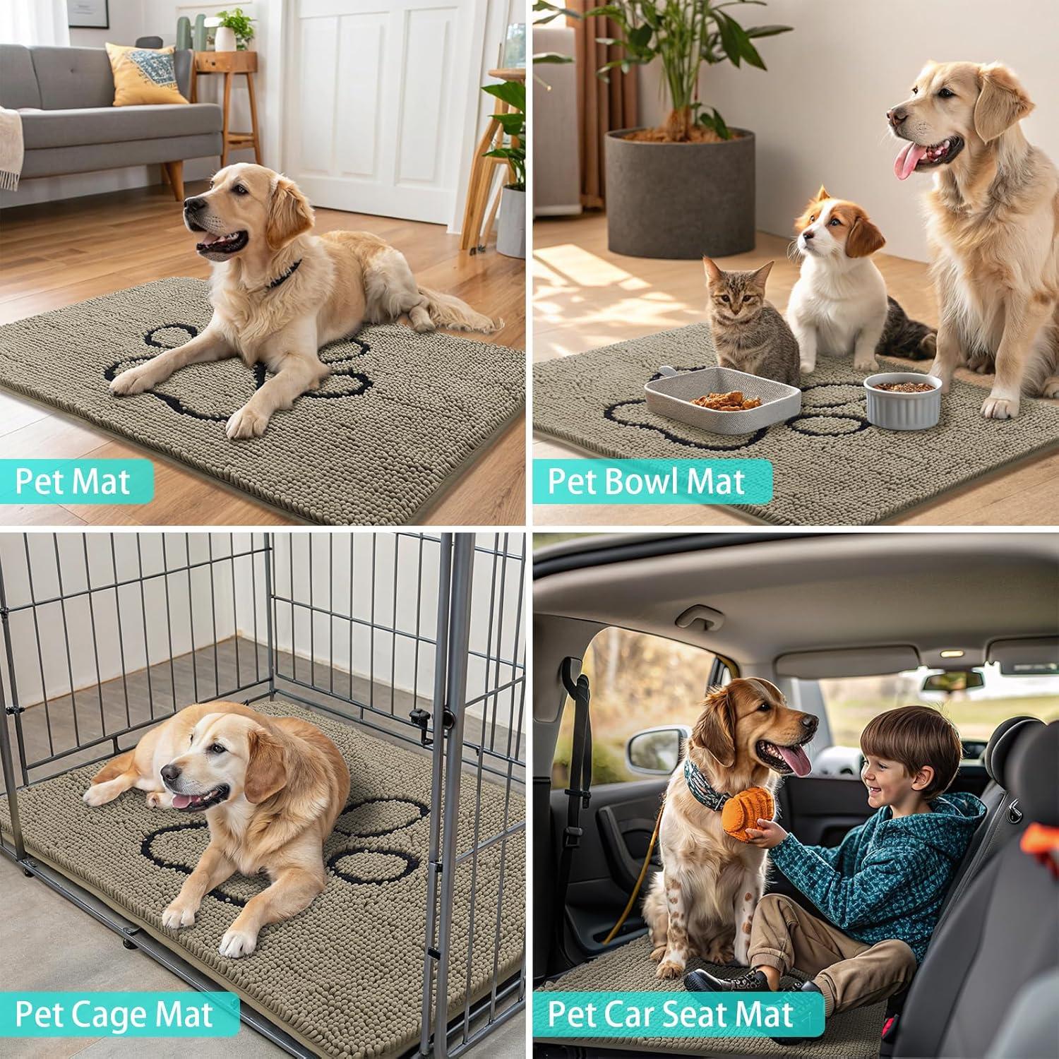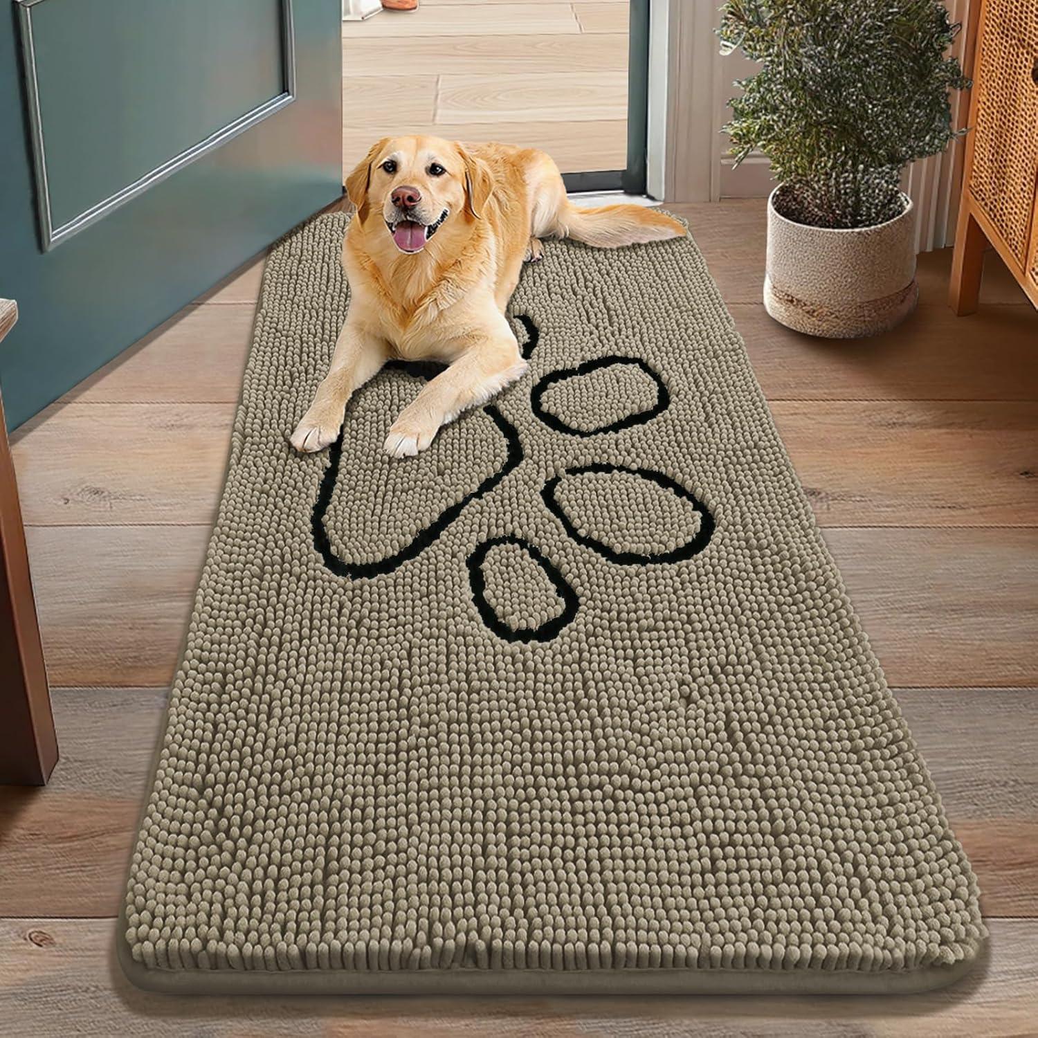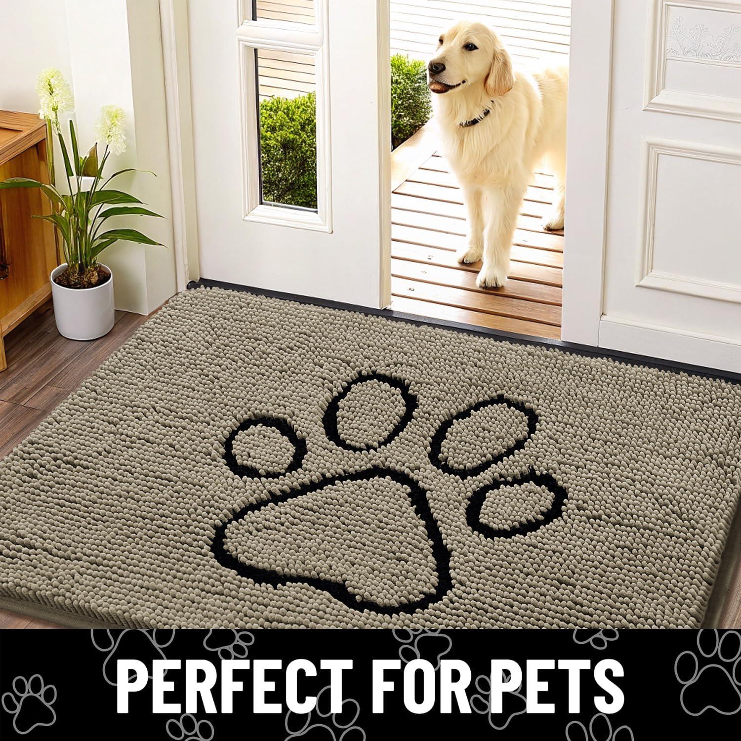 Smiry Dog Door Mat for Muddy Paws, Absorbent Dirt Trapper Non Slip Quick Dry Washable Chenille Mat for Mud Dogs, Entry Rug for Indoor and Outdoor (36×24 Inches, Coffee and Black)(Warm Taupe and Black)