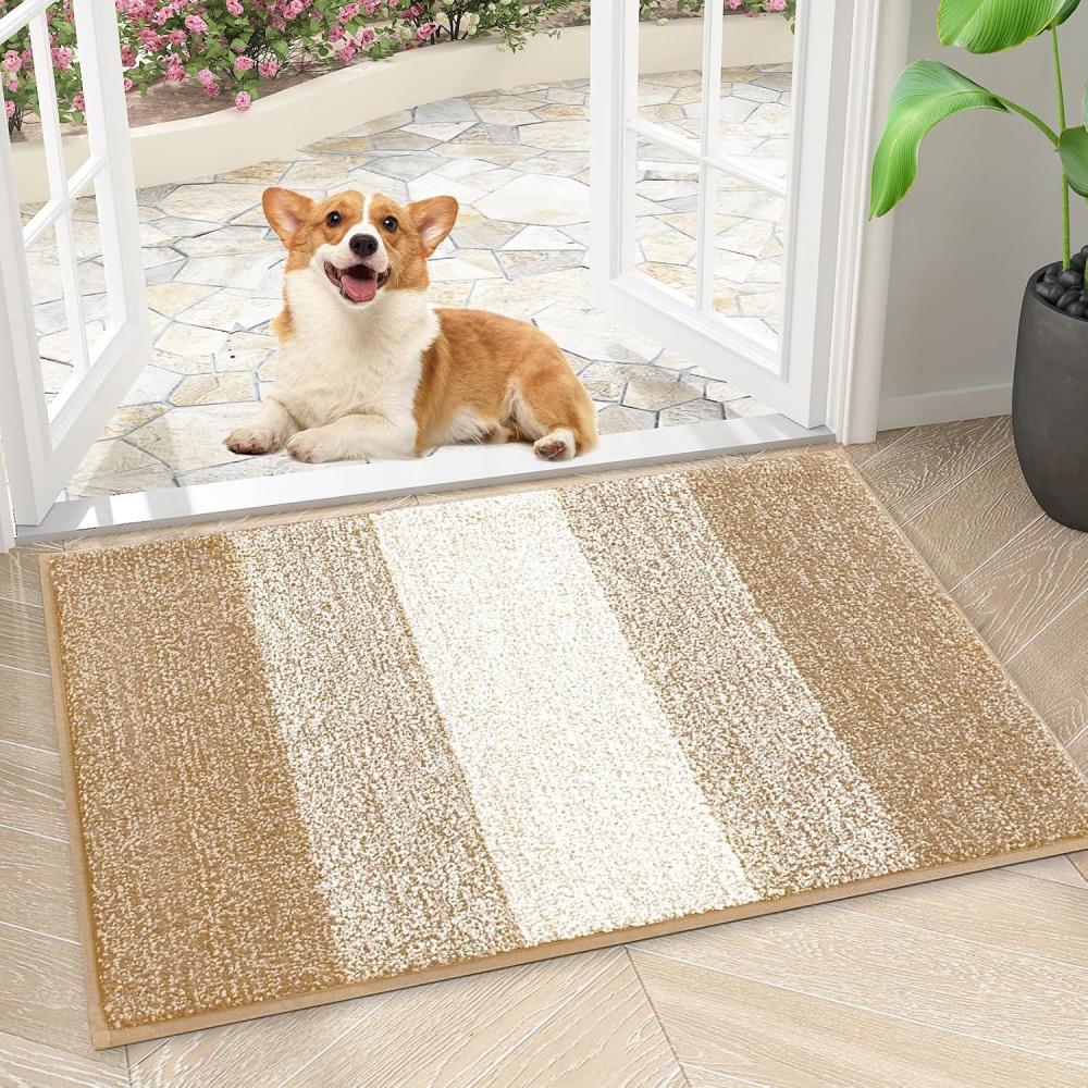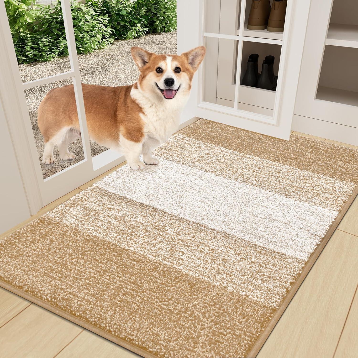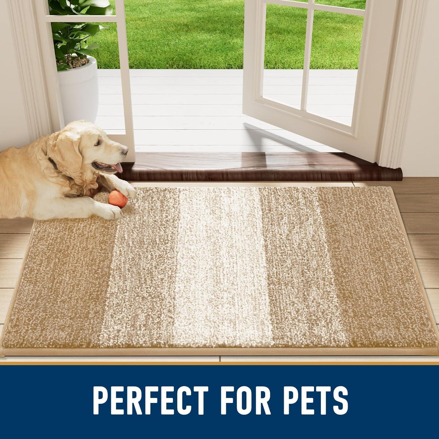Smiry Dog Door Mat for Muddy Paws, Absorbs Moisture and Dirt, Low-Profile Entryway Mat with Non-Slip Backing, Entry Indoor Outdoor Doormat for Inside Floor (30×20 Inches, Grey)(Beige)