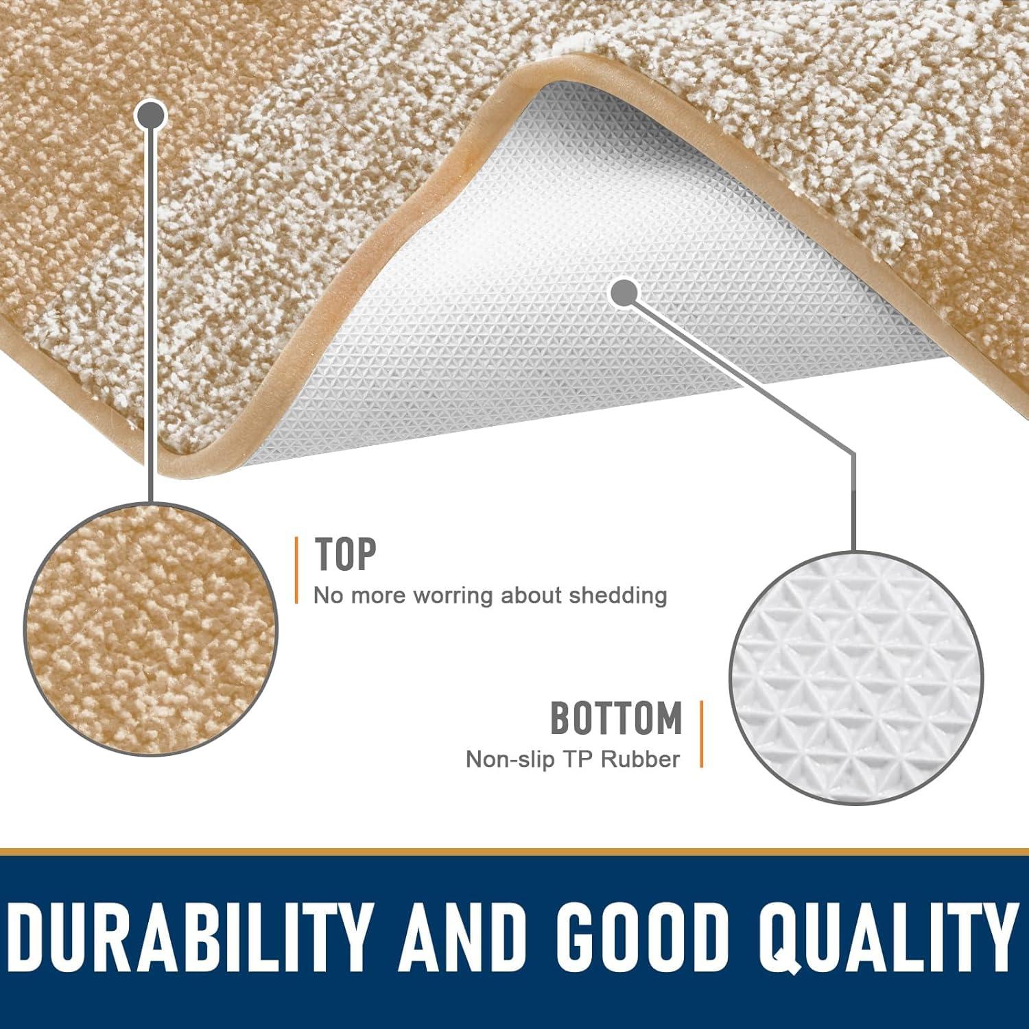 [DURABILITY & LOW-PROFILE DESIGN] The door mat built with a sleek low-profile design, guaranteeing it won't snag or curl up when you open or close the door. Additionally, crafted with a soft polyester surface and sturdy braided edges, this doormat easily withstands daily foot traffic while combining durability and comfort. It is a resilient solution for a warm and comfortable experience for you and your guests.